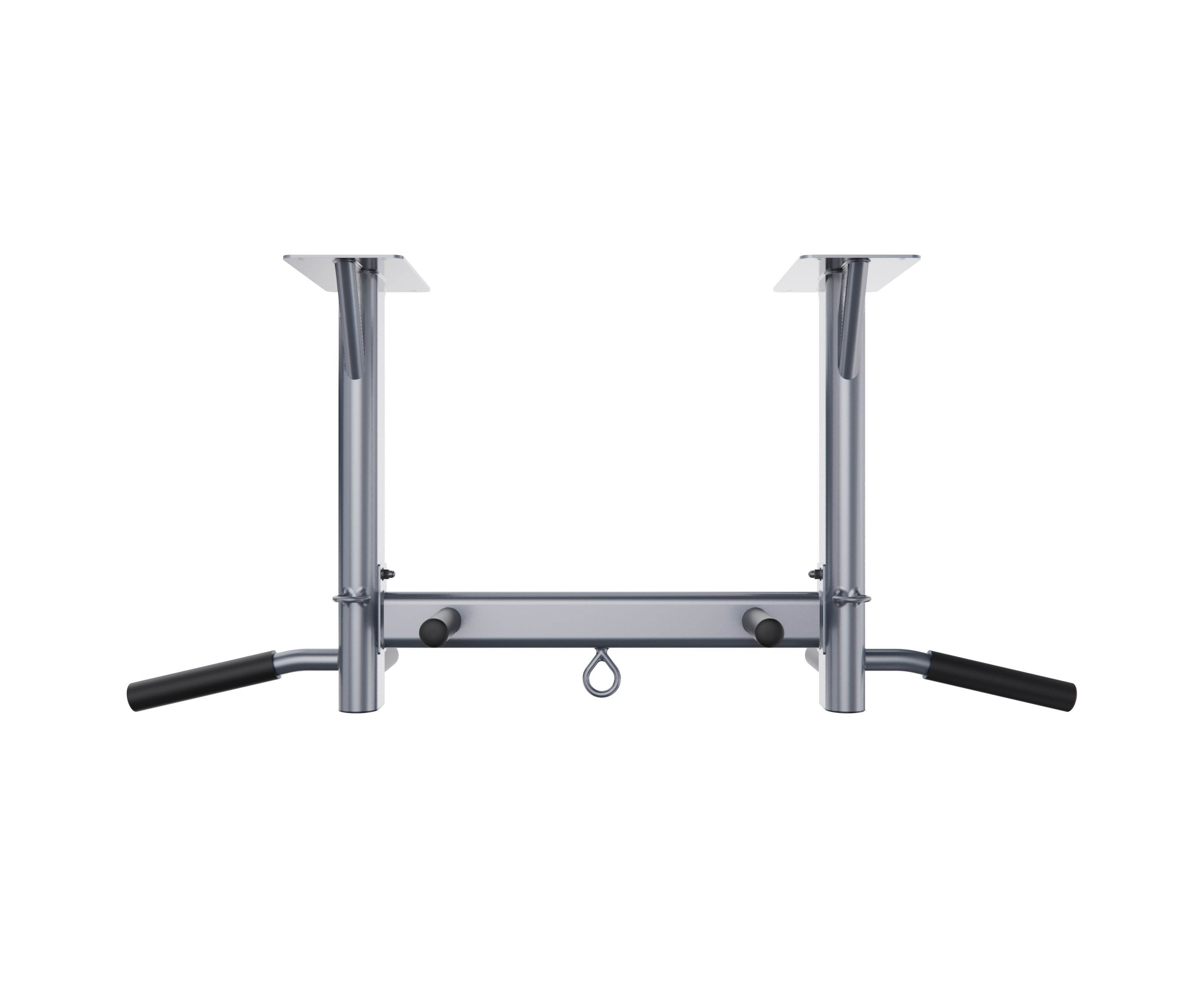 Благодаря трём встроенным люверсам, к турнику можно легко прикрепить дополнительное оборудование — боксерскую грушу, ремни, силовые канаты или петли для функциональных тренировок. Сверхширокие анкерные пластины, двойная крестовина и V-образные распорки повышают устойчивость и равномерно распределяют нагрузку, что делает занятия безопасными и комфортными.
