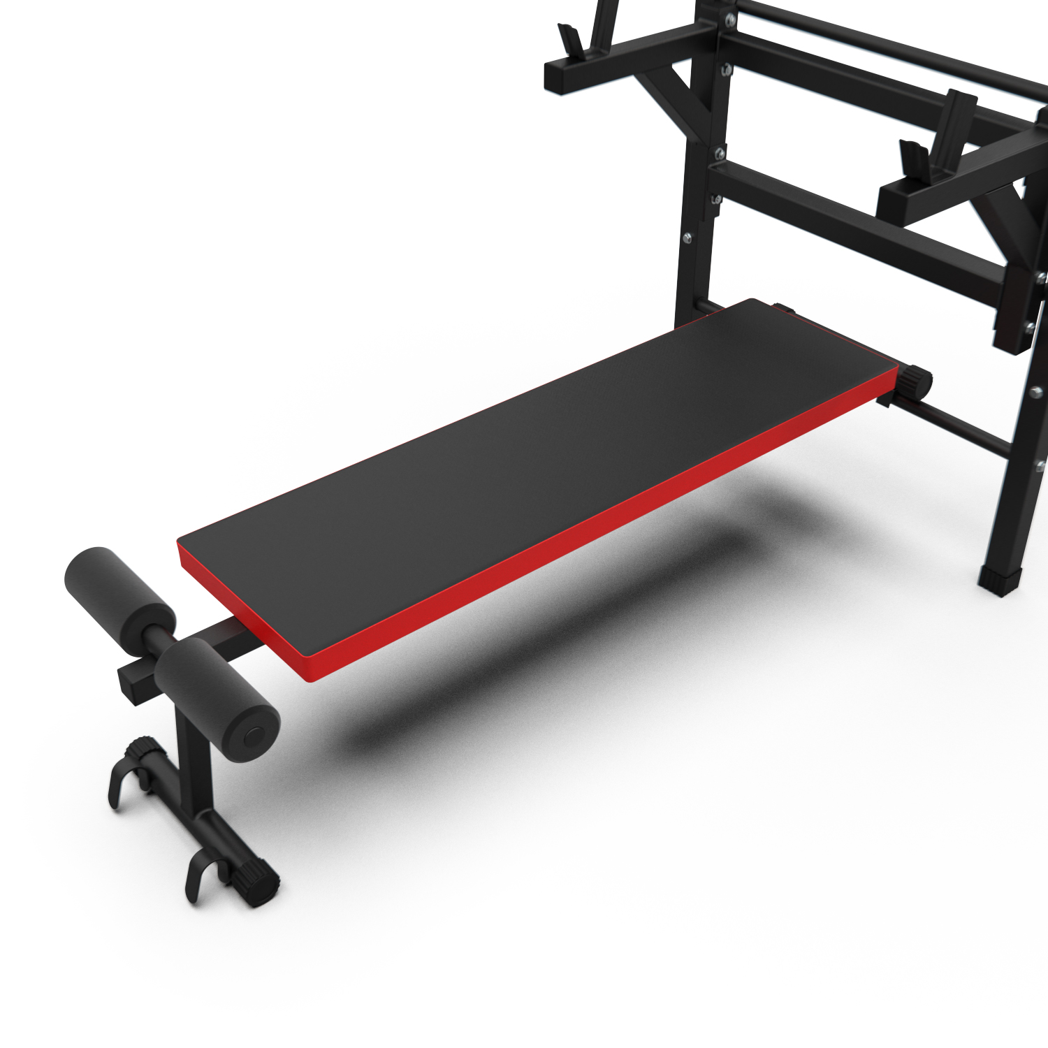 Скамья размерами 105 х 28,5 х 5 см выдерживает нагрузку до 150 кг и компактно складывается. Диаметр валиков составляет 70 мм, а длина – 15 см. Амортизатор для штанги с выносом 36,5 см и расстоянием между перекладинами 50,5 см предназначен для грифов диаметром 25 мм.
