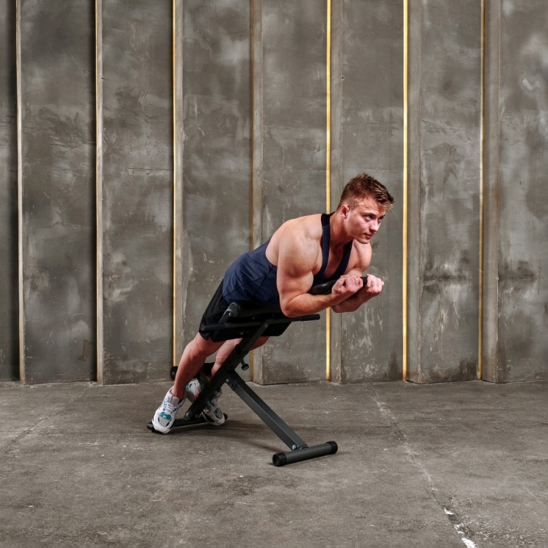 Гиперэкстензия позволяет комфортно и безопасно тренировать мышцы живота и нижней части спины, а так же внутренние и наружные мышцы бедра.