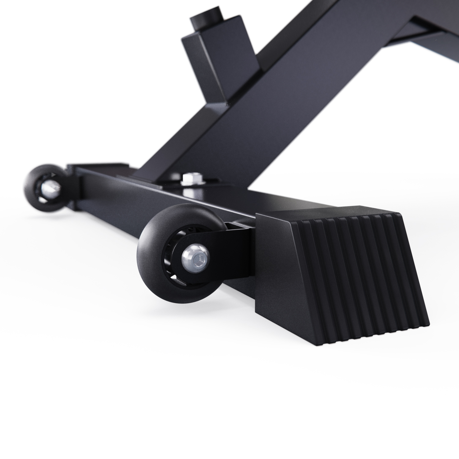Скамья оснащена встроенными колесами для легкого перемещения в помещении.