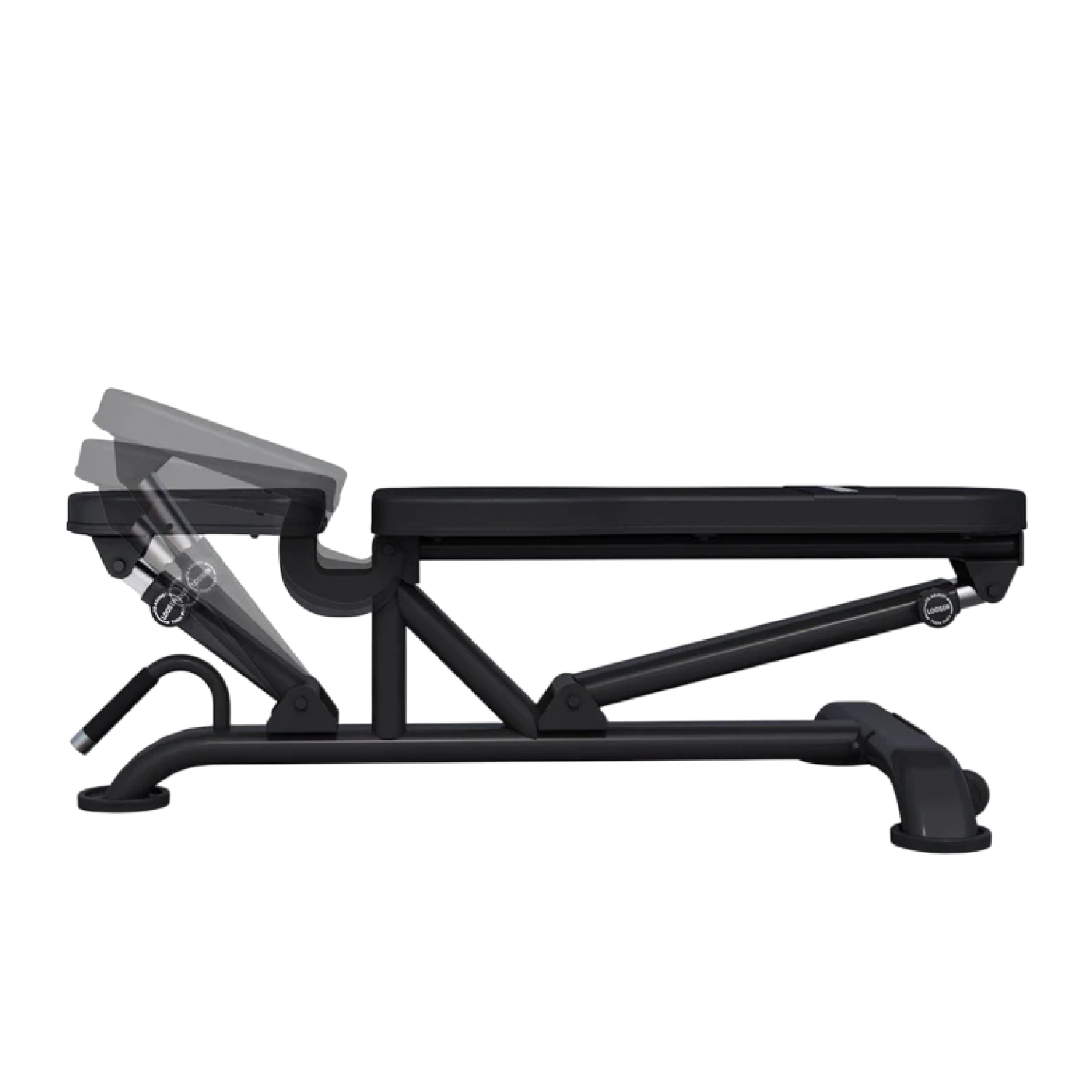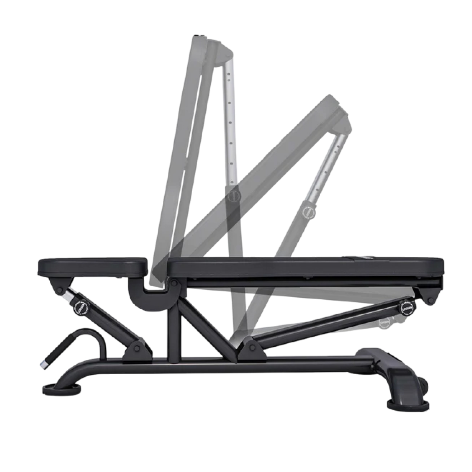 Большие прорезиненные ножки диаметром 16 см обеспечивают оптимальную устойчивость скамье для жима лежа и защищают пол от царапин. Транспортировочные ролики и удобная ручка служат для лёгкого перемещения скамьи в помещении.