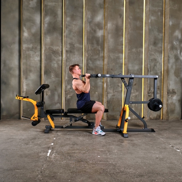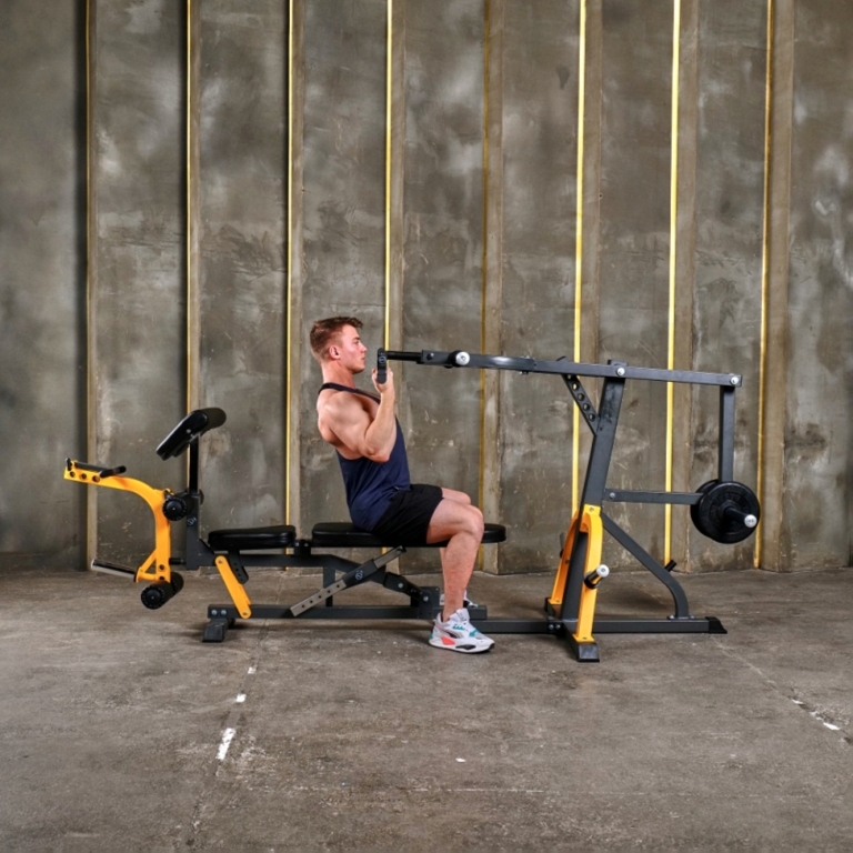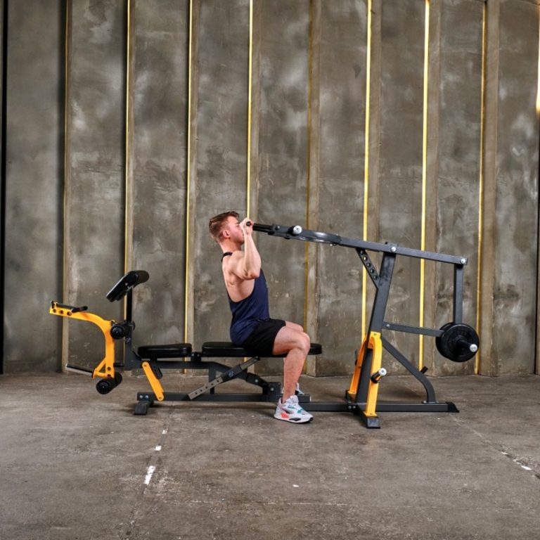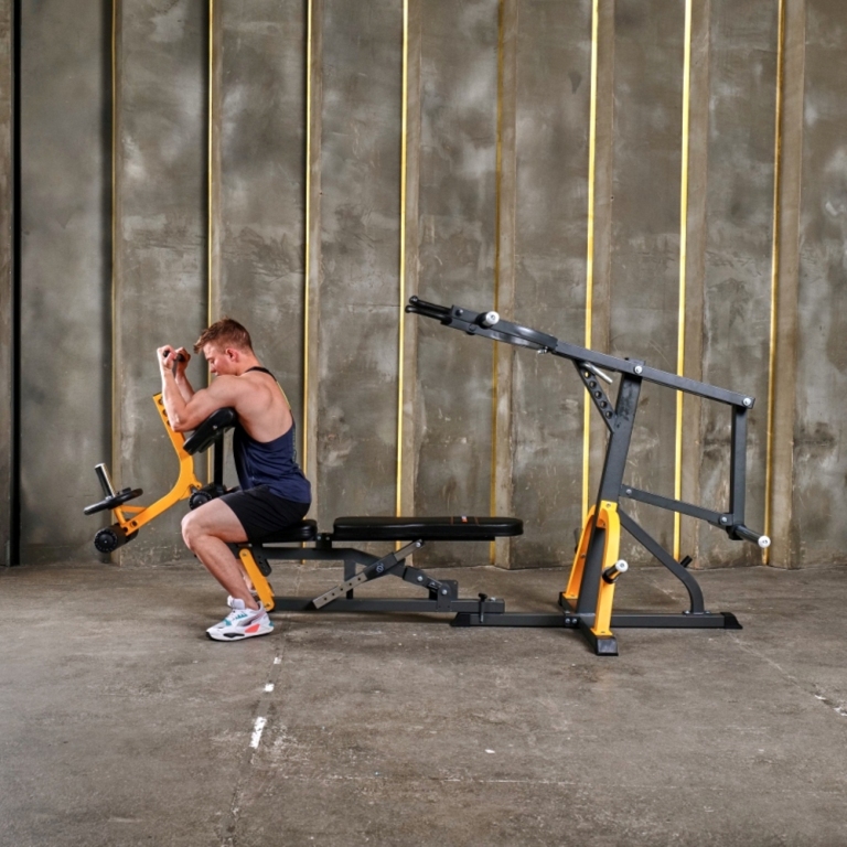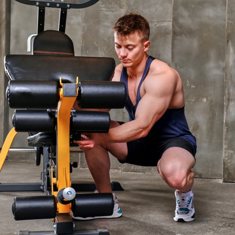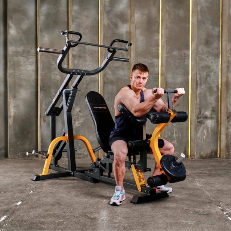 Сиденье регулируется на 4 уровня по углу наклона, спинка – на 8 уровней. Турник регулируется по высоте на 5 уровней. Парта для бицепса регулируется по высоте на 7 уровней.