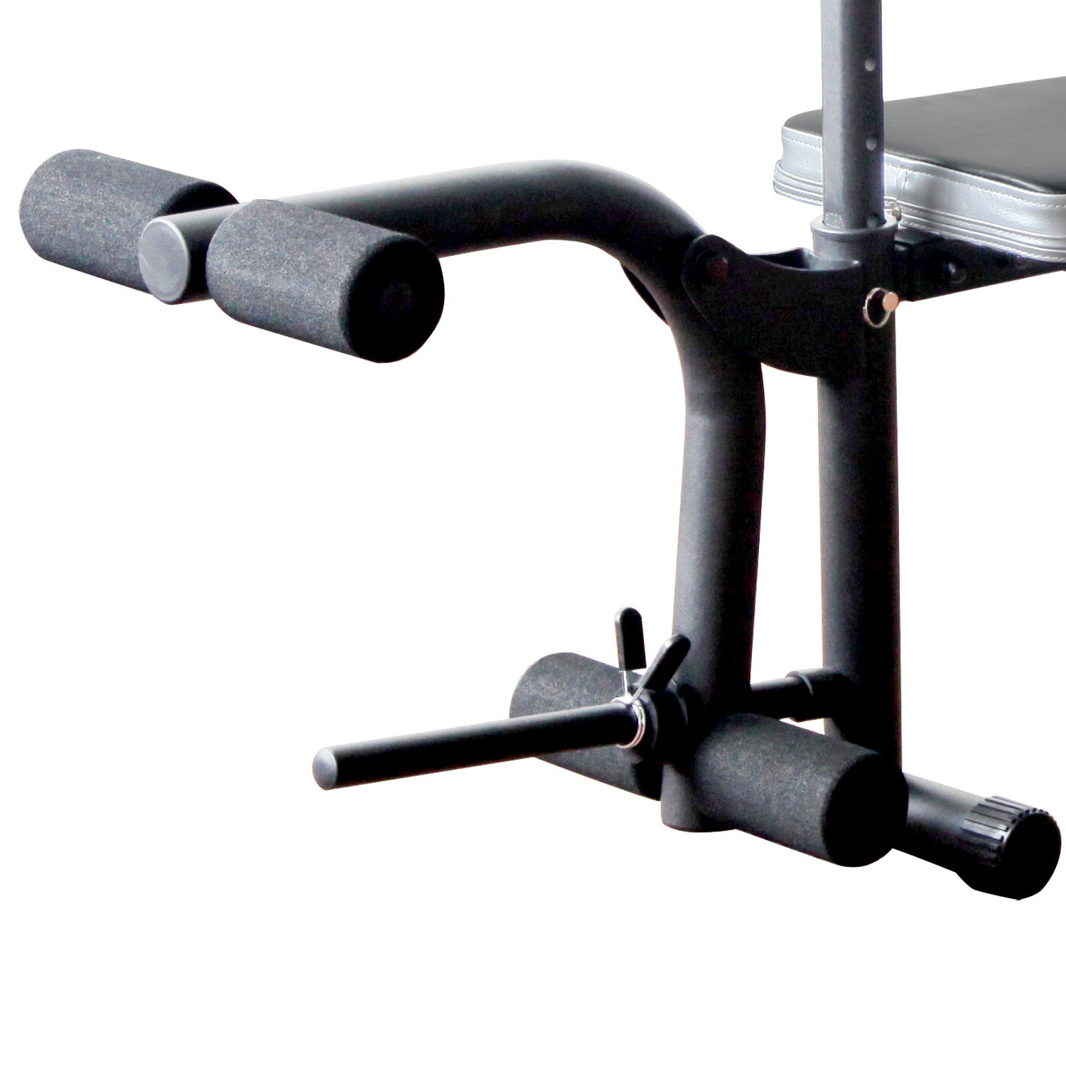 Позволяет выполнять следующие упражнения: жим лежа, сгибание и разгибание ног в коленном суставе, парта для бицепсов. Рычаги блока для ног снабжены мягкими валиками.
