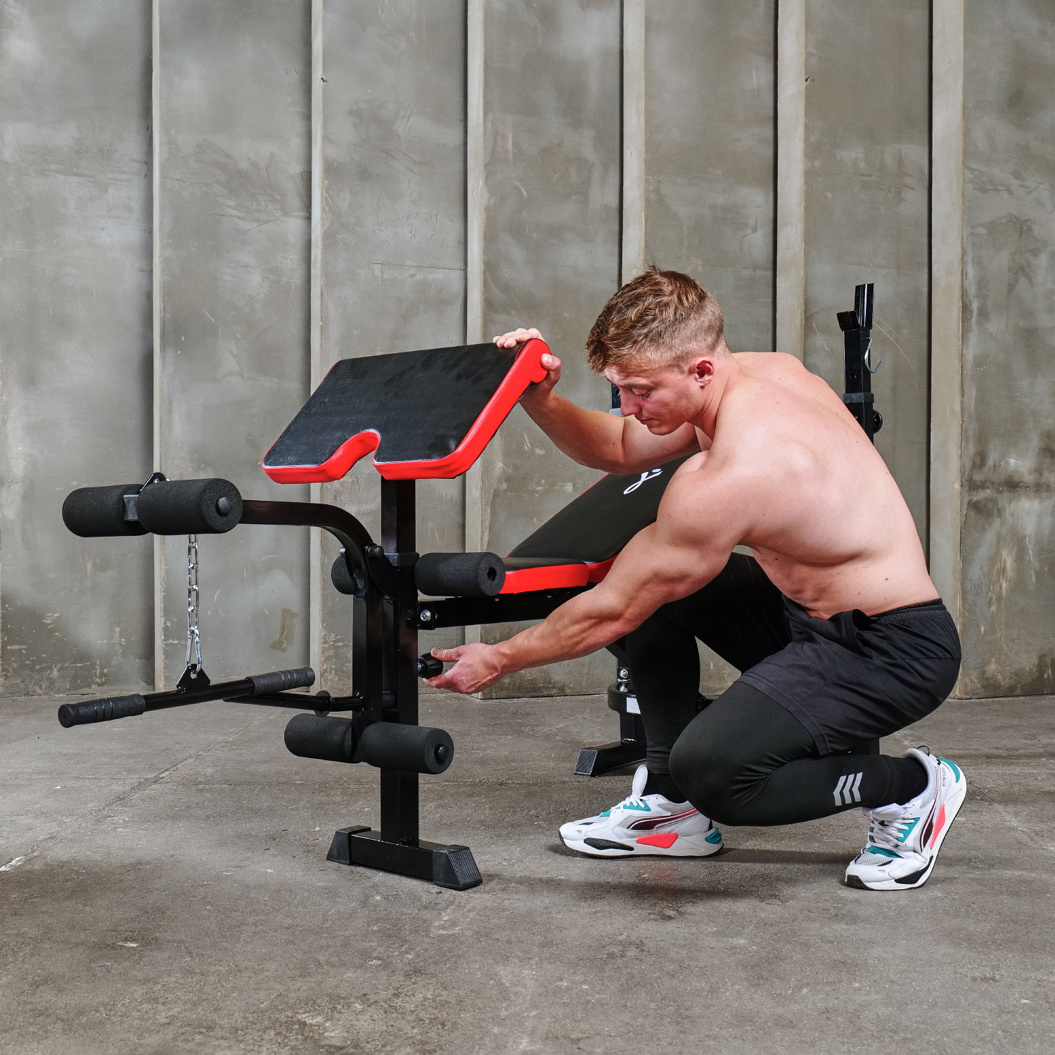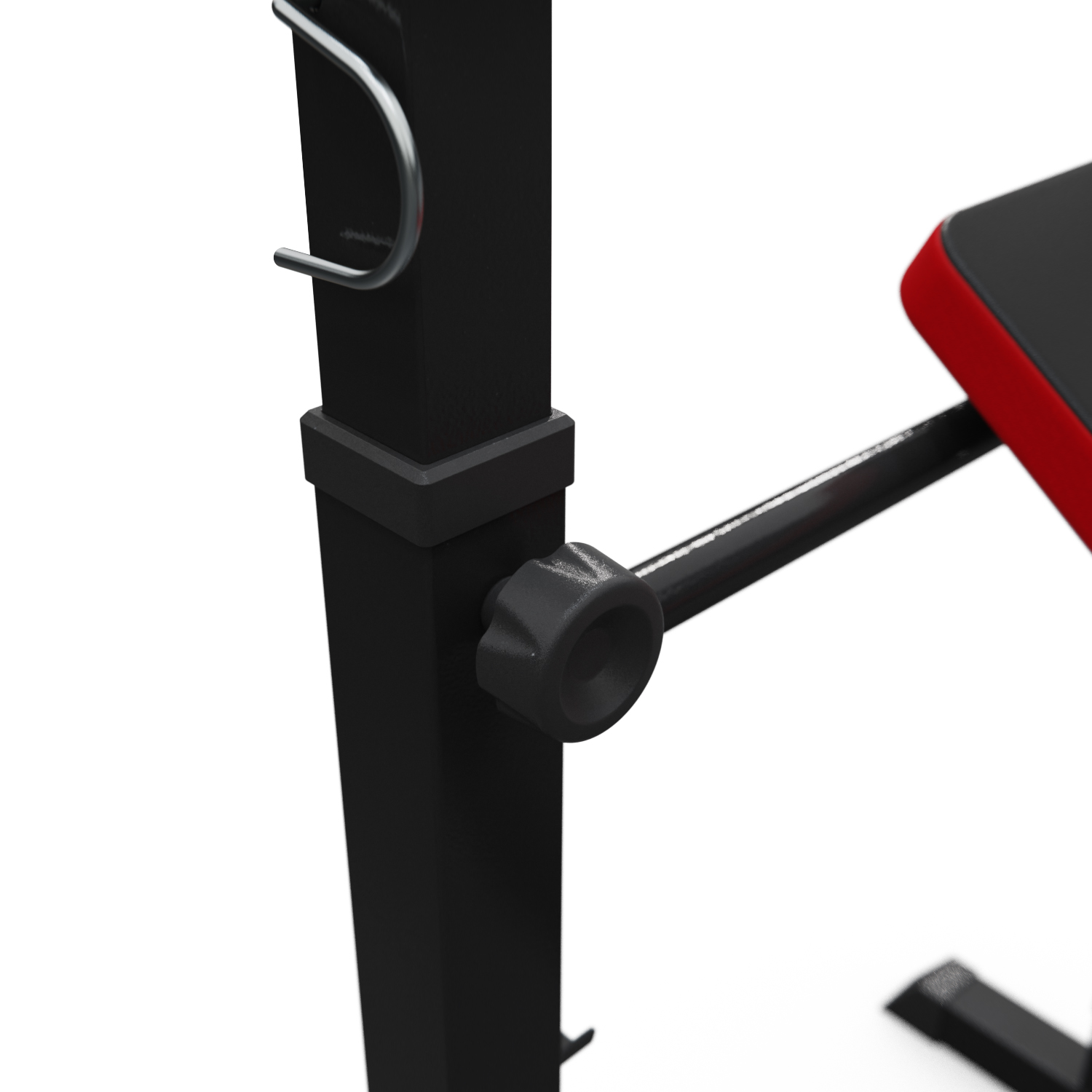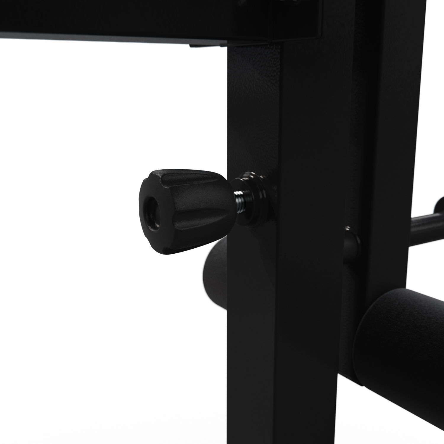 Скамья имеет регулировку угла наклона на 4 позиции, что позволяет адаптировать ее под различные типы упражнений и индивидуальные предпочтения пользователя. Стойки регулируются по высоте в диапазоне от 107 см до 132.5 см, что дает возможность использовать скамью людям различного роста и телосложения.