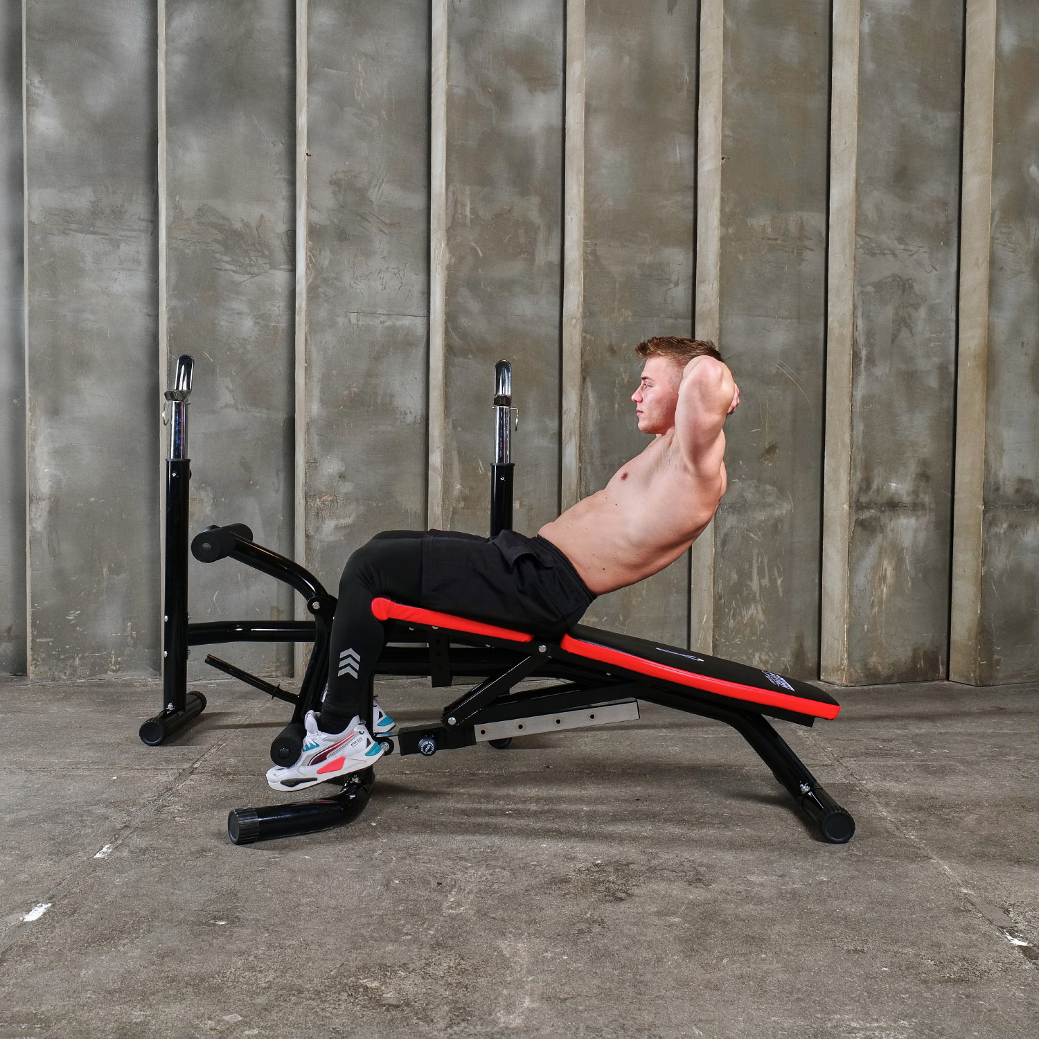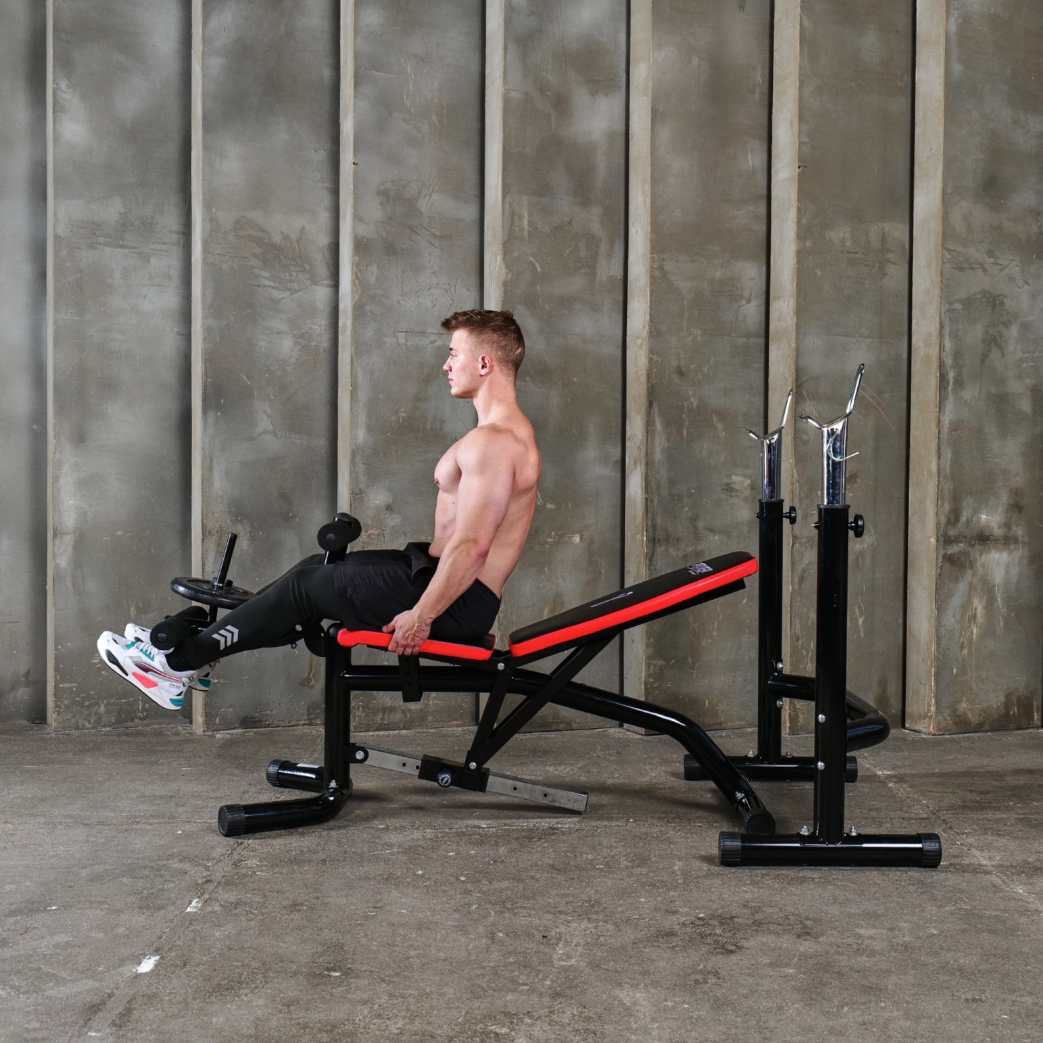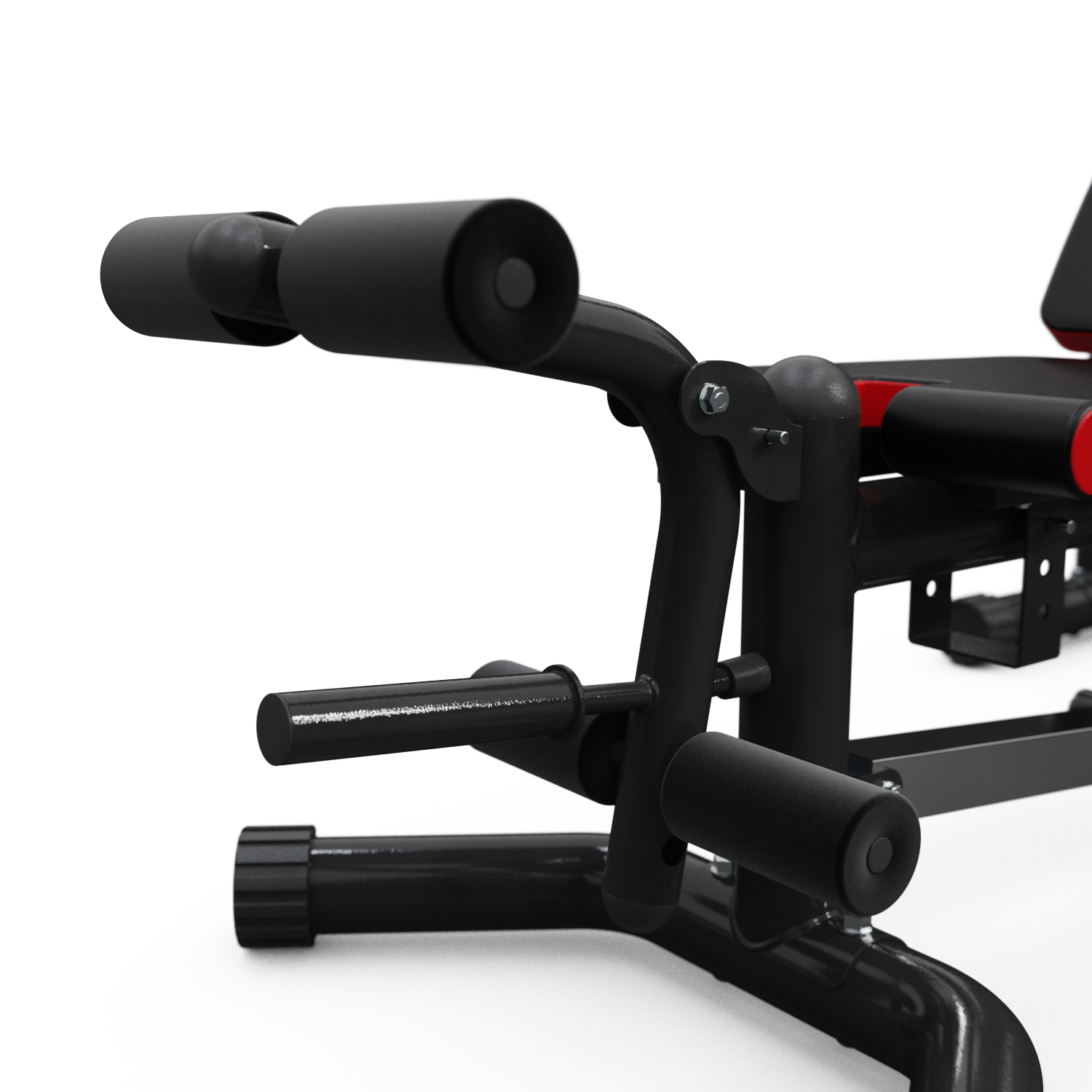 Рама скамьи изготовлена из высокопрочной стали с профилем 76x1.5 мм, что гарантирует ее долговечность и надежность. Валики для ног могут быть дополнительно утяжелены дисками для повышения эффективности тренировки. Благодаря специальной конструкции скамья обладает высокой устойчивостью и безопасностью использования.