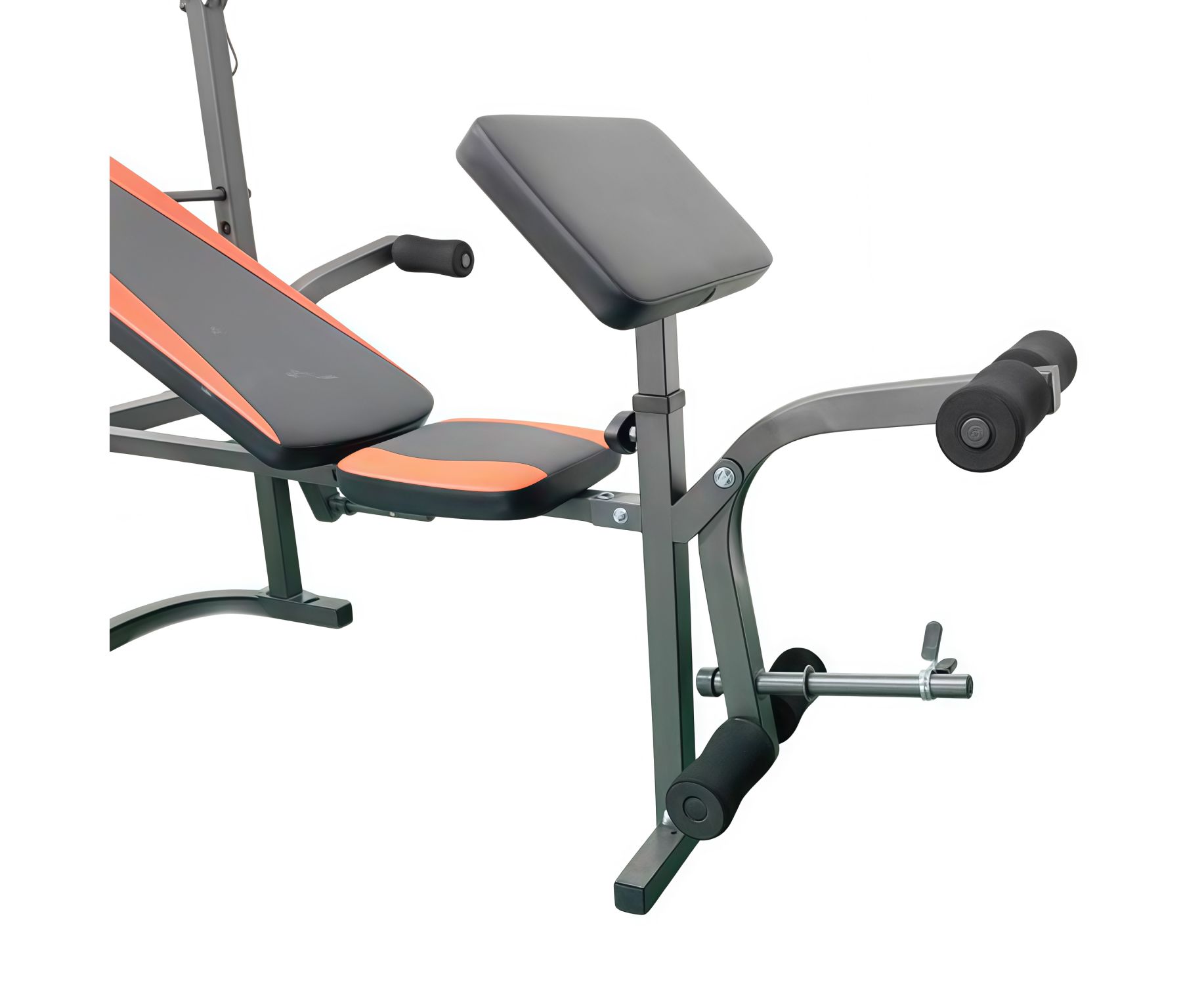 Скамья оснащена регулируемой спинкой с 4 уровнями наклона, что позволяет подобрать оптимальный угол под жим лёжа, разведение рук или упражнения на плечи в зависимости от уровня подготовки. Размер спинки — 85 х 27 х 4,5 см, сиденья — 26 х 26 х 4,5 см, высота от сиденья до пола — 50 см, обеспечивая стабильную и комфортную посадку для пользователей разных комплекций. Дополнительно предусмотрена партa для бицепса размером 35 х 23 х 4,5 см с 4 уровнями регулировки, которая расширяет функциональность скамьи и повышает удобство при тренировке рук. Мягкие верхние и нижние валики обеспечивают комфорт при выполнении упражнений на пресс и фиксацию ног, минимизируя нагрузку на суставы.