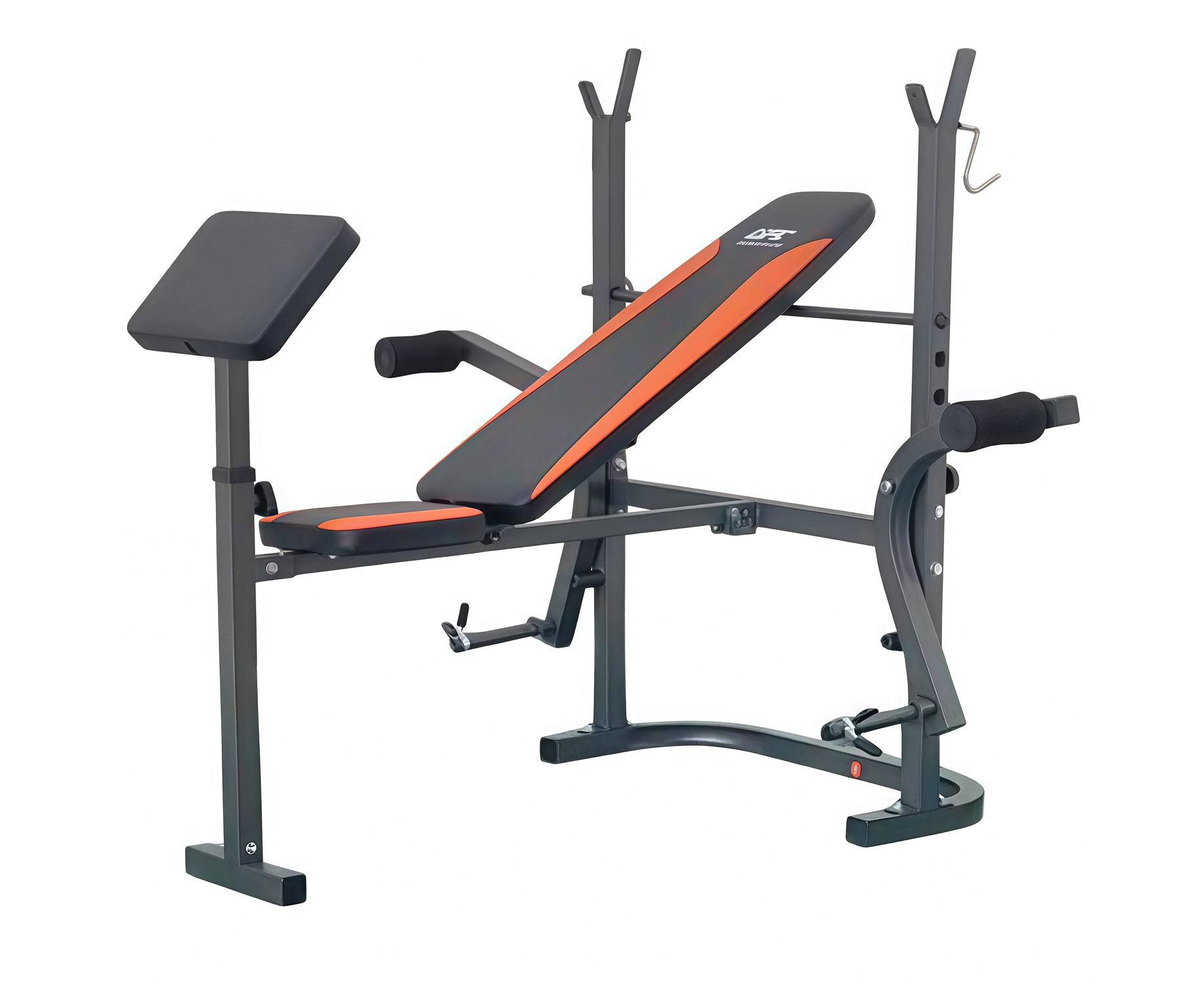 Скамья со стойками под штангу с опциями DFC D125 предназначена для домашнего использования и подходит для базовых силовых тренировок. Конструкция скамьи позволяет эффективно прорабатывать грудные мышцы, плечи, руки, мышцы ног, ягодицы, пресс, а также задействовать мышцы спины в качестве стабилизаторов.