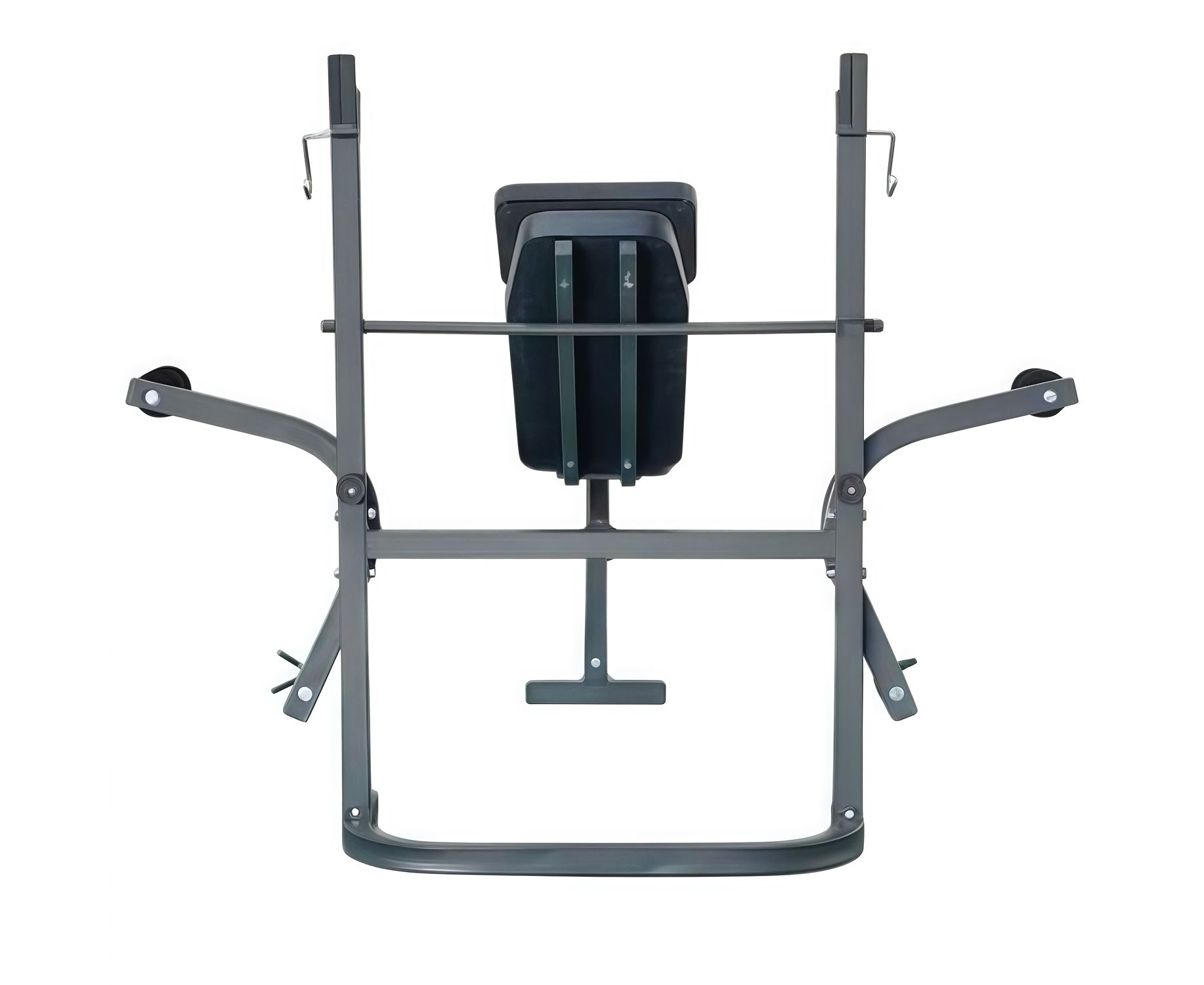Конструкция рассчитана на максимальный вес пользователя до 120 кг. Максимальная нагрузка на стойки составляет 100 кг, а нагрузка на каждую трубу для дисков — до 30 кг, что обеспечивает стабильность и безопасность во время тренировок. Прочная и устойчивая рама из стального профиля 40 х 40 х 1,3 мм обеспечивает долговечность и безопасное использование в домашних условиях.