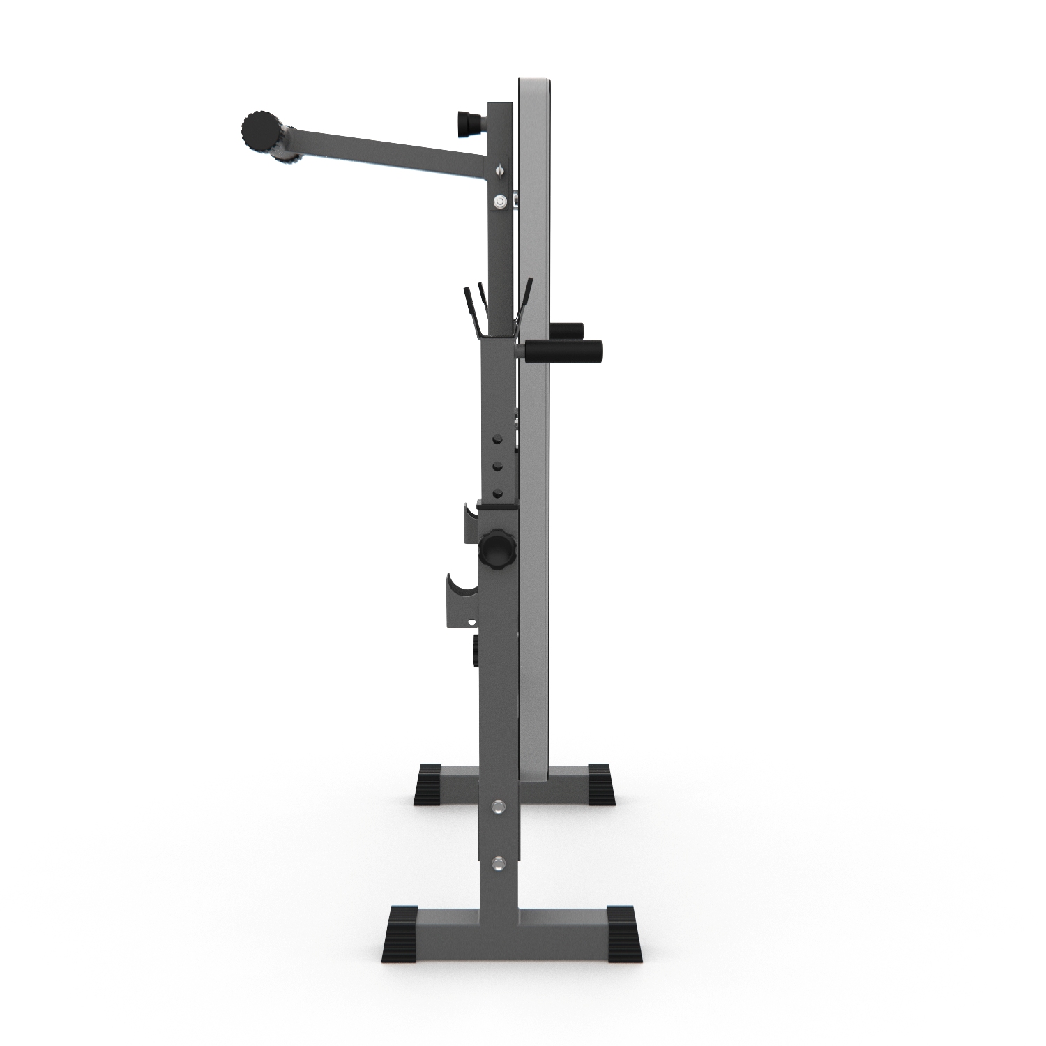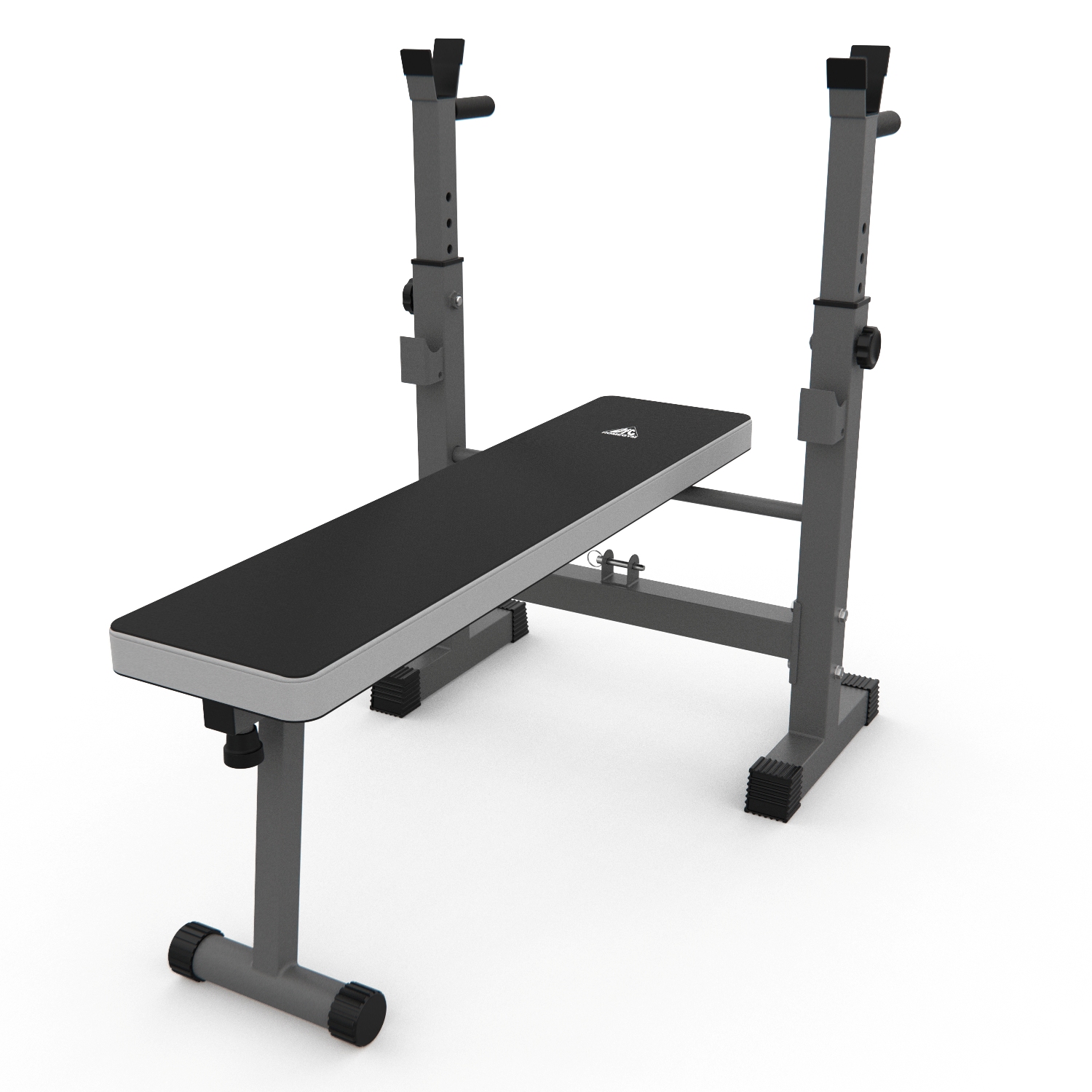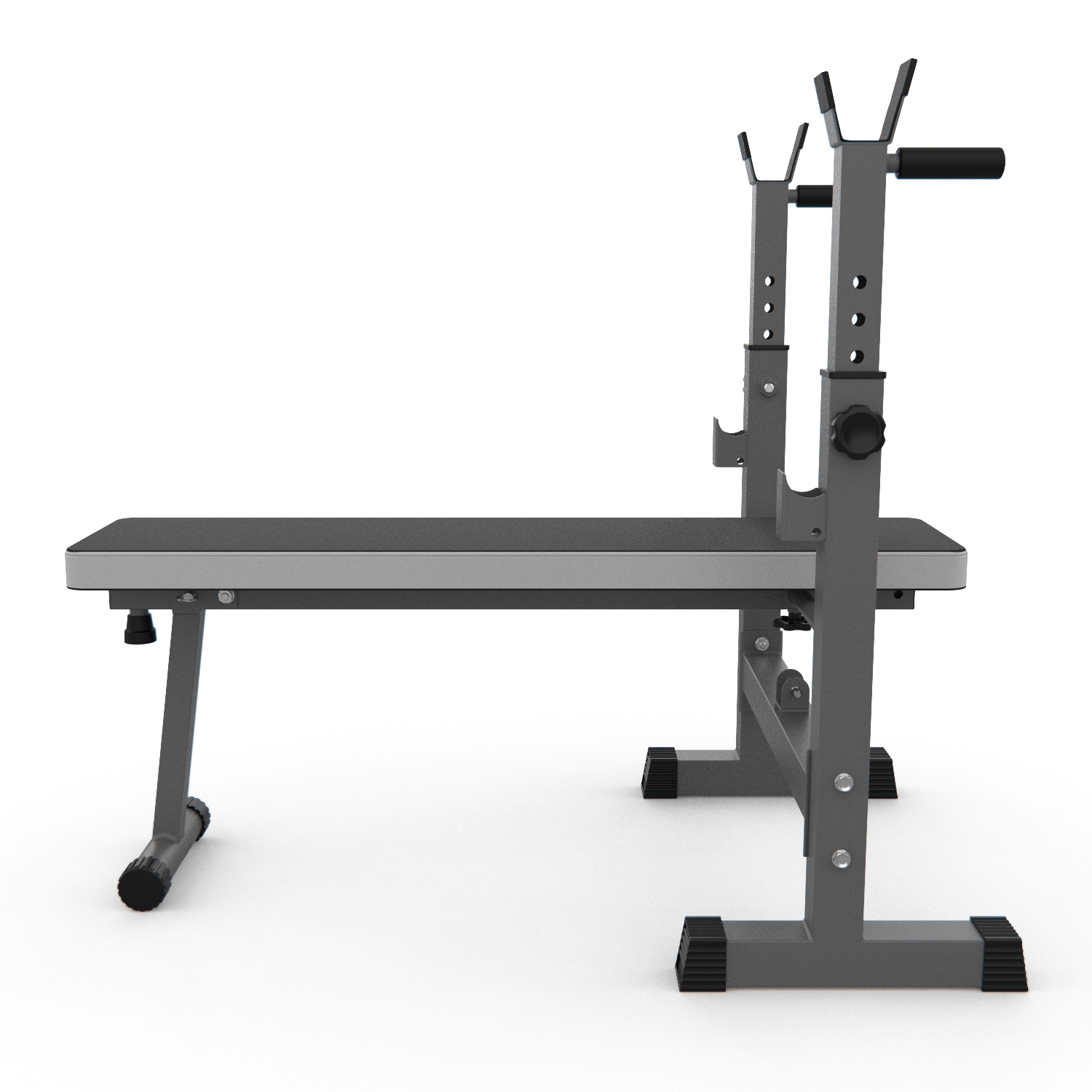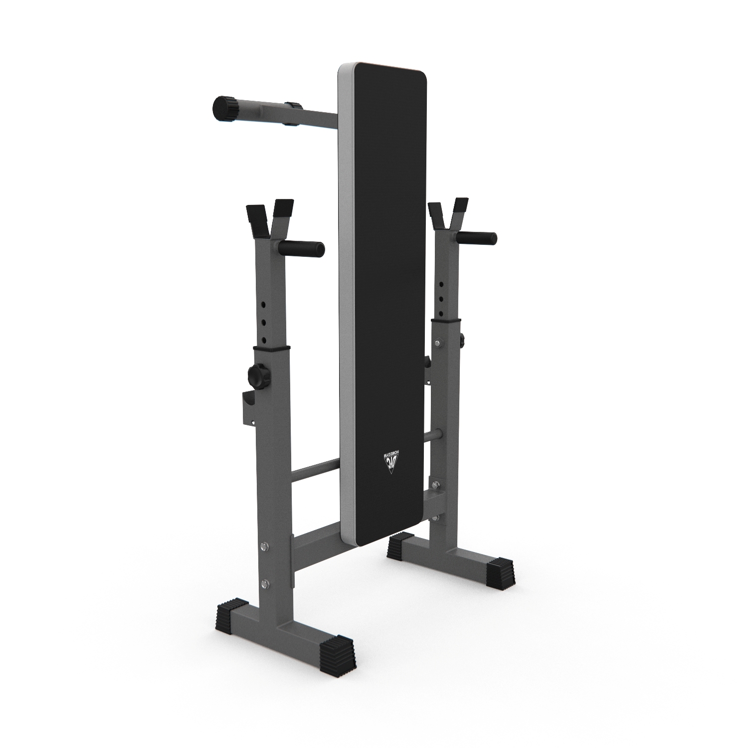 Стойки регулируются по высоте на 6 уровней от 79,5 до 97 см, что позволяет использовать скамью для людей разного роста. Высота от пола до скамьи составляет 44 см, длина опорных ножек стойки - 34,5 см, расстояние от задних до передних ножек стойки – 105 см.