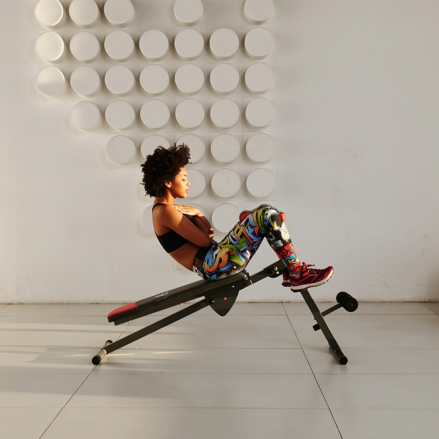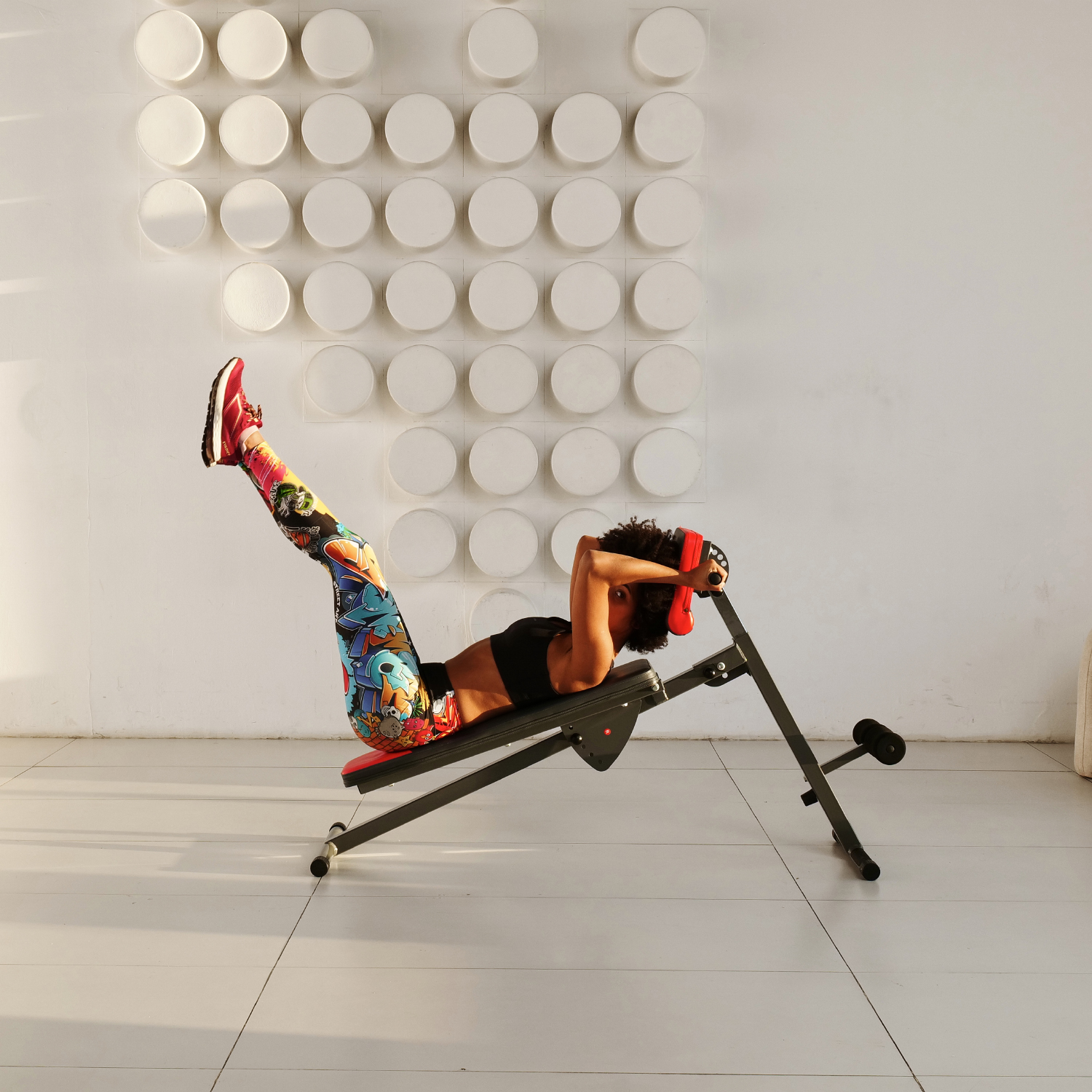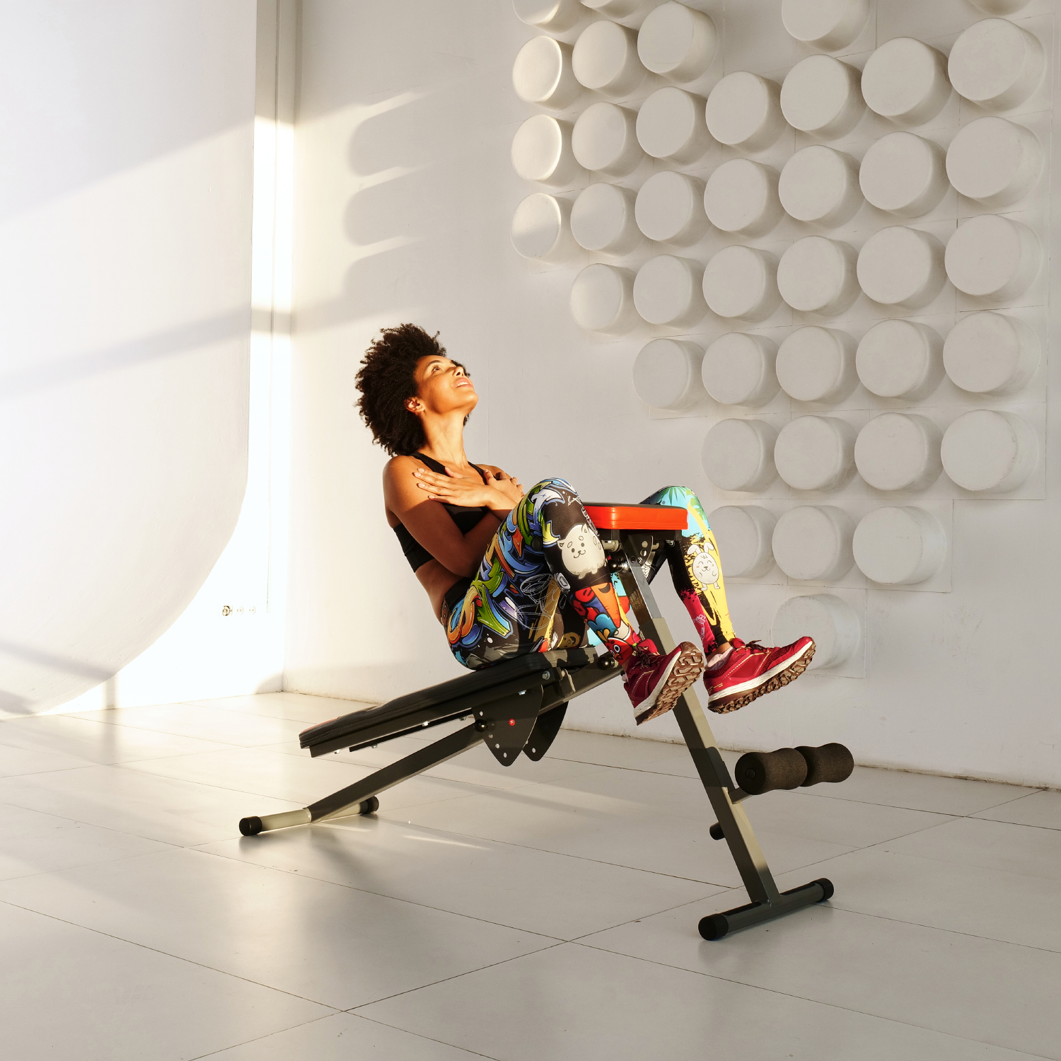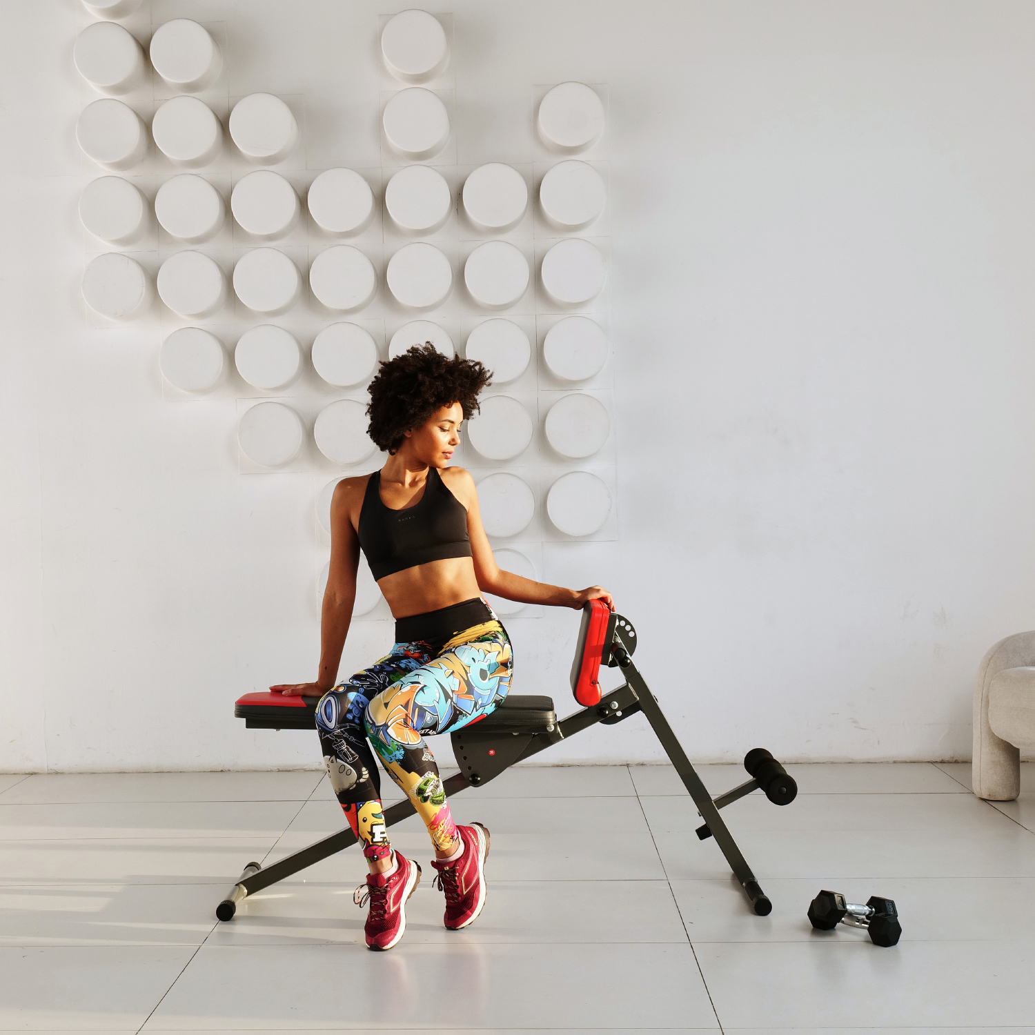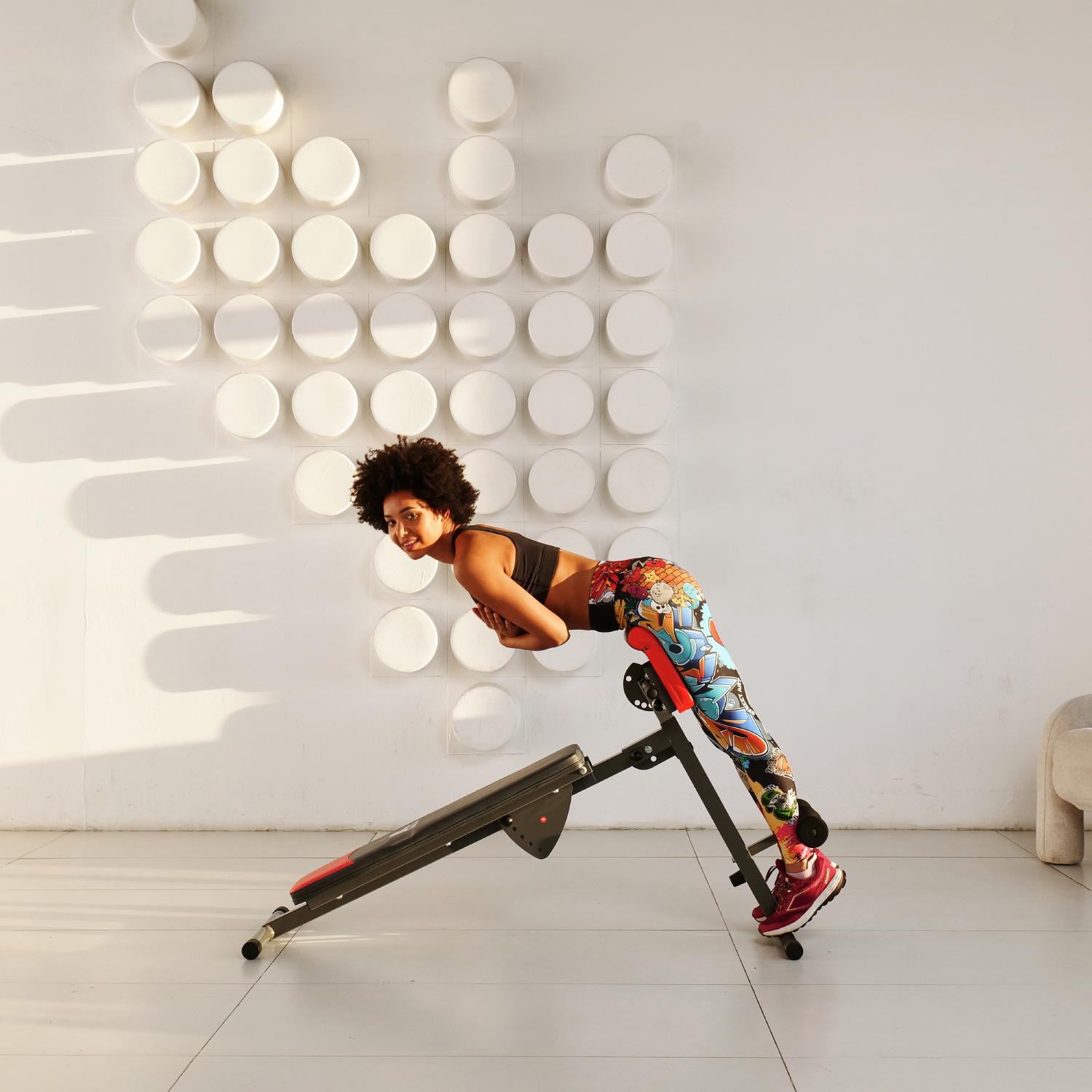 Складная конструкция скамьи позволяет сэкономить место при хранении и транспортировке. Общую нагрузку на скамью можно установить до 120 кг, что делает ее безопасной для использования.