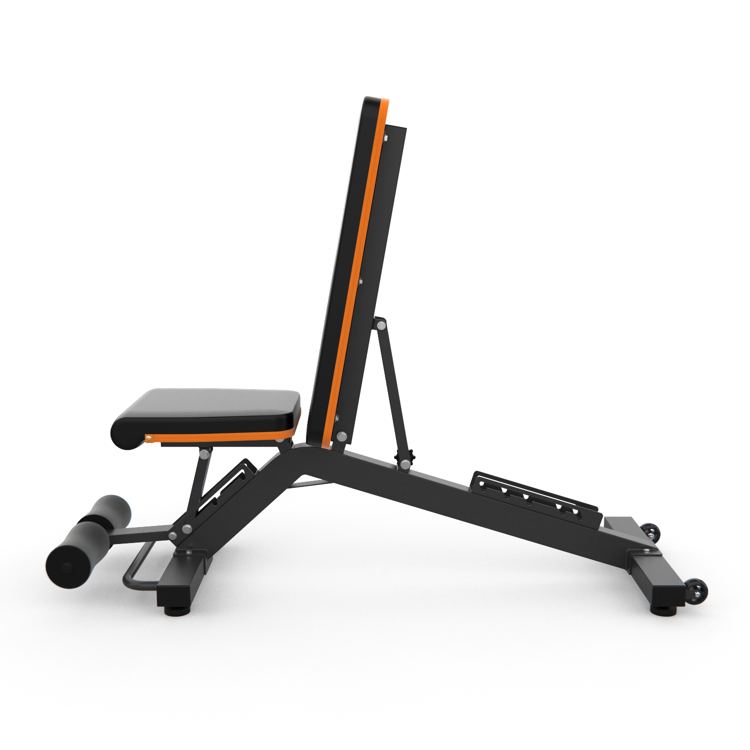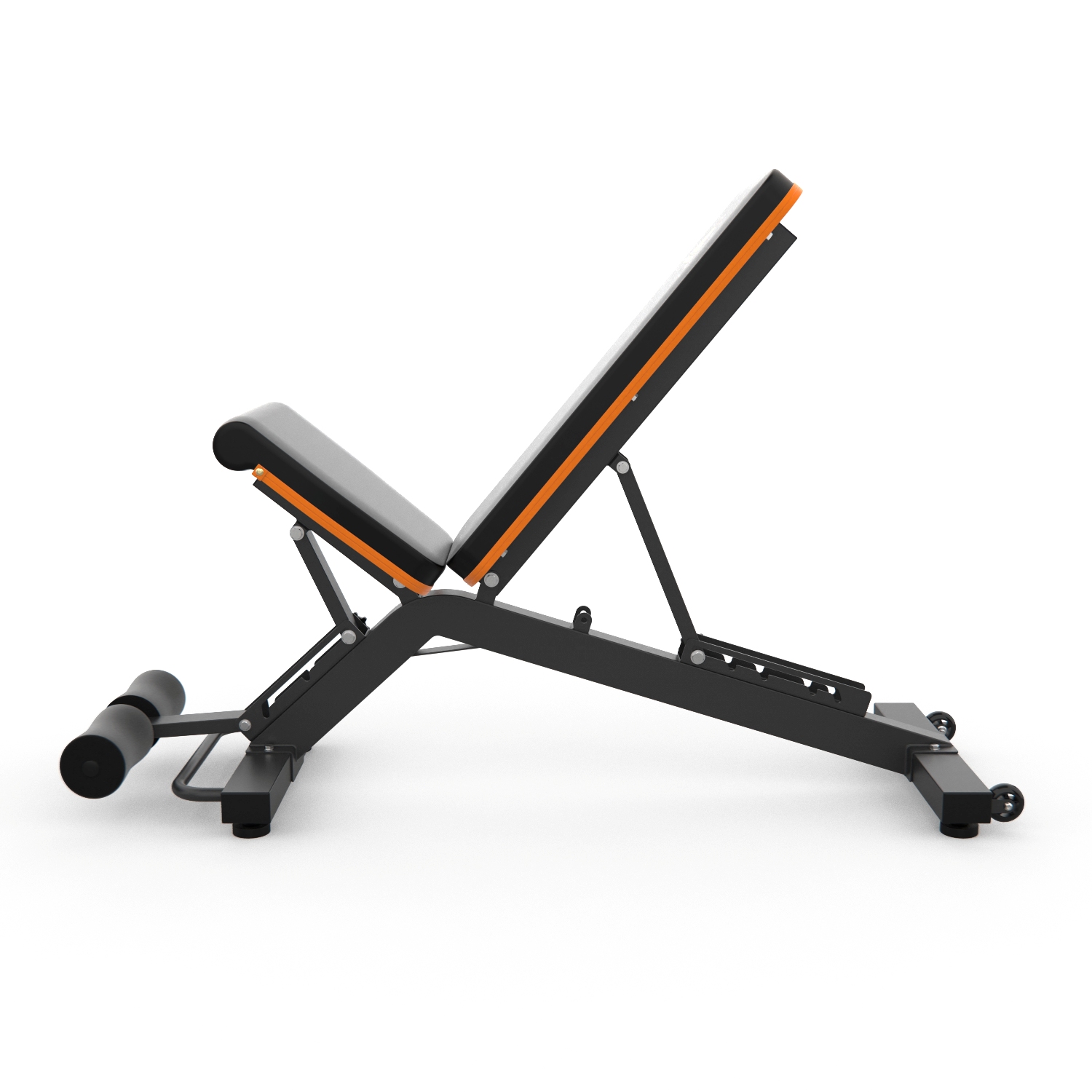 Сиденье и спинка скамьи регулируются по углу наклона в широком диапазоне. Фиксация в нужном положении с помощью упора с обратной стороны скамьи.