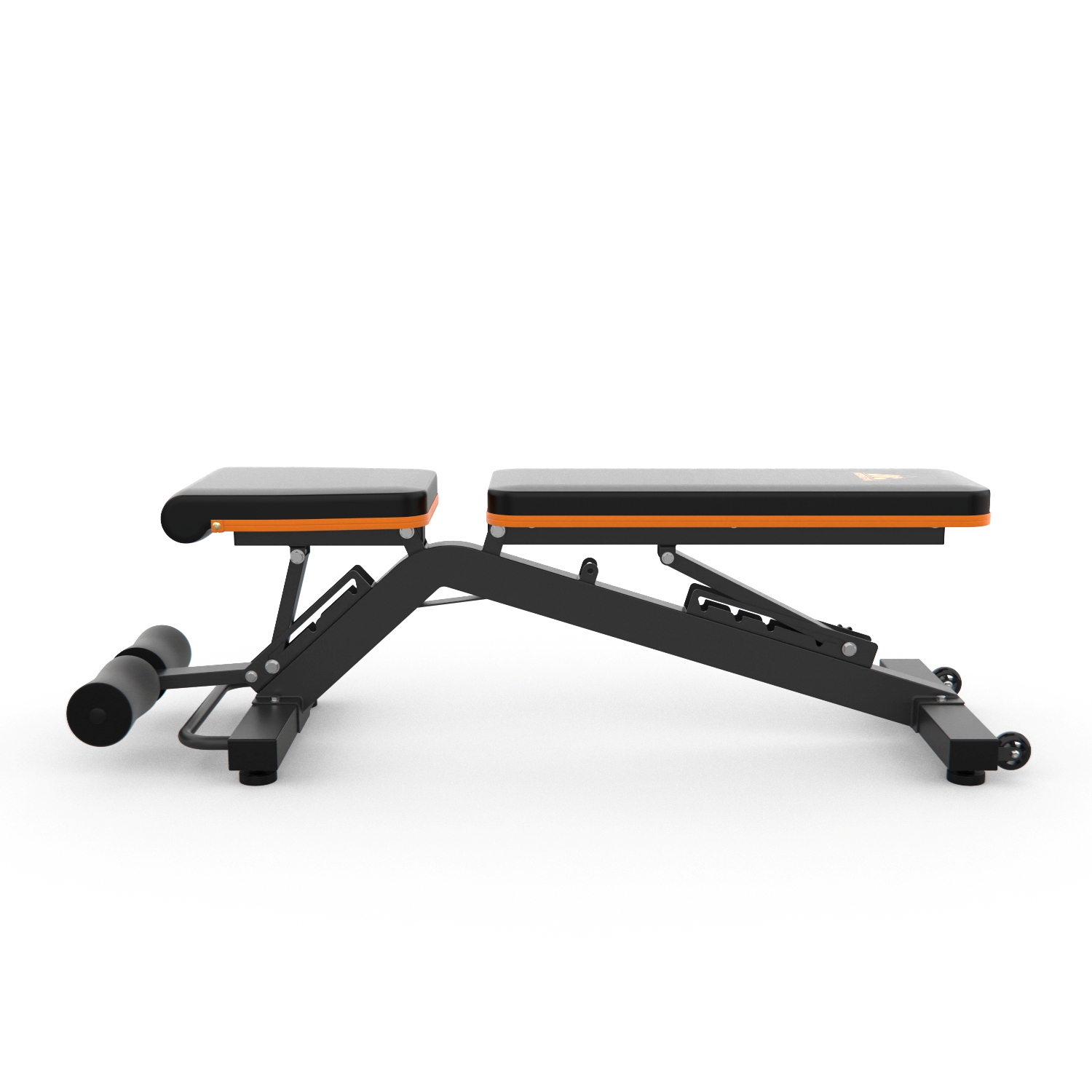 Сиденье имеет 3 положения регулировки. Спинка регулируется в 6 положениях: для установки положения спинки под 90° необходимо зафиксировать упор в отдельное положение. Если убрать фиксацию упора на раме, возможно заниматься с отрицательным углом наклона скамьи.
