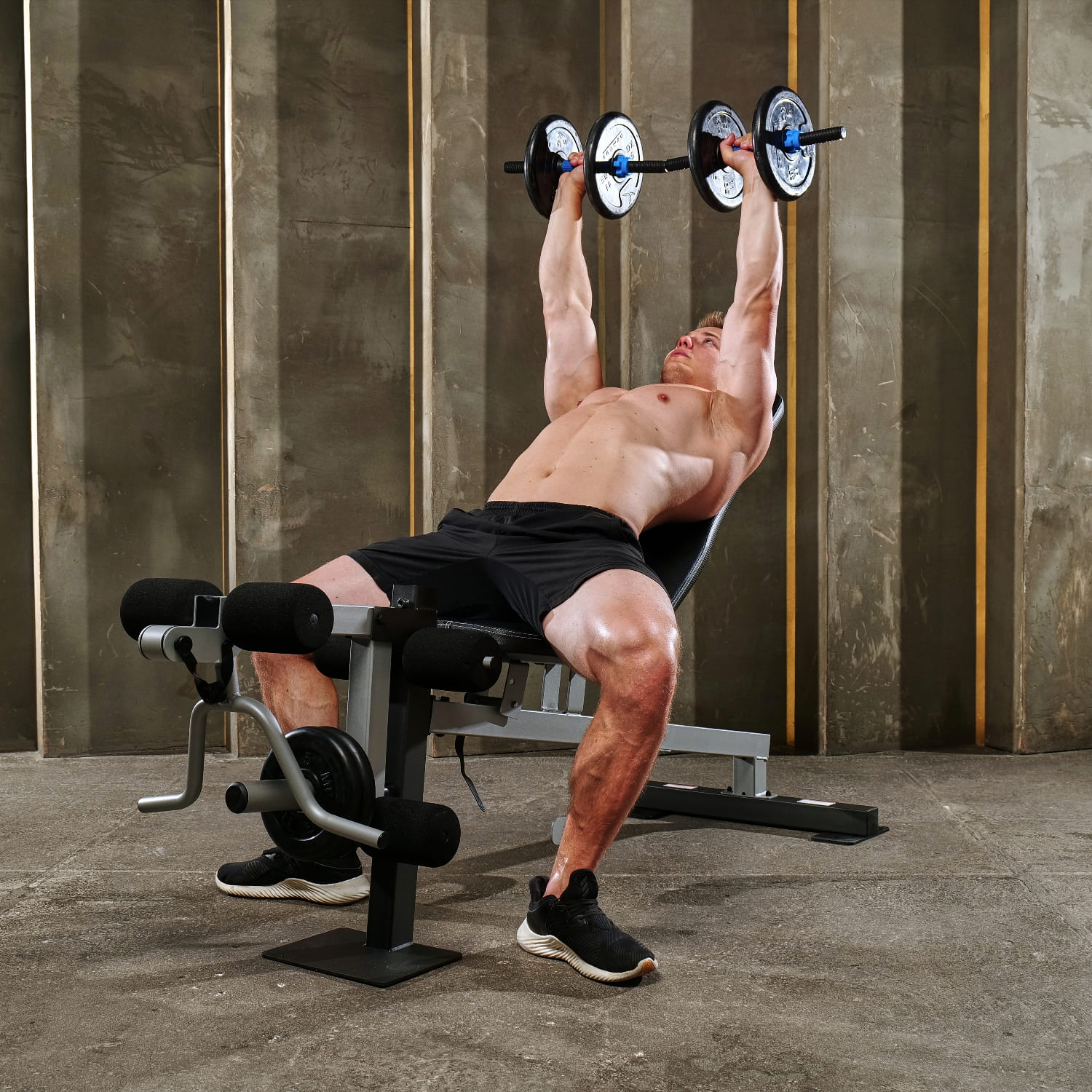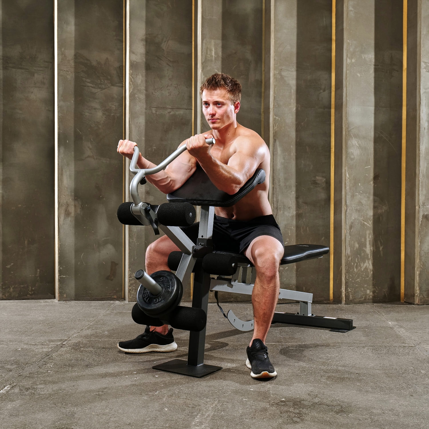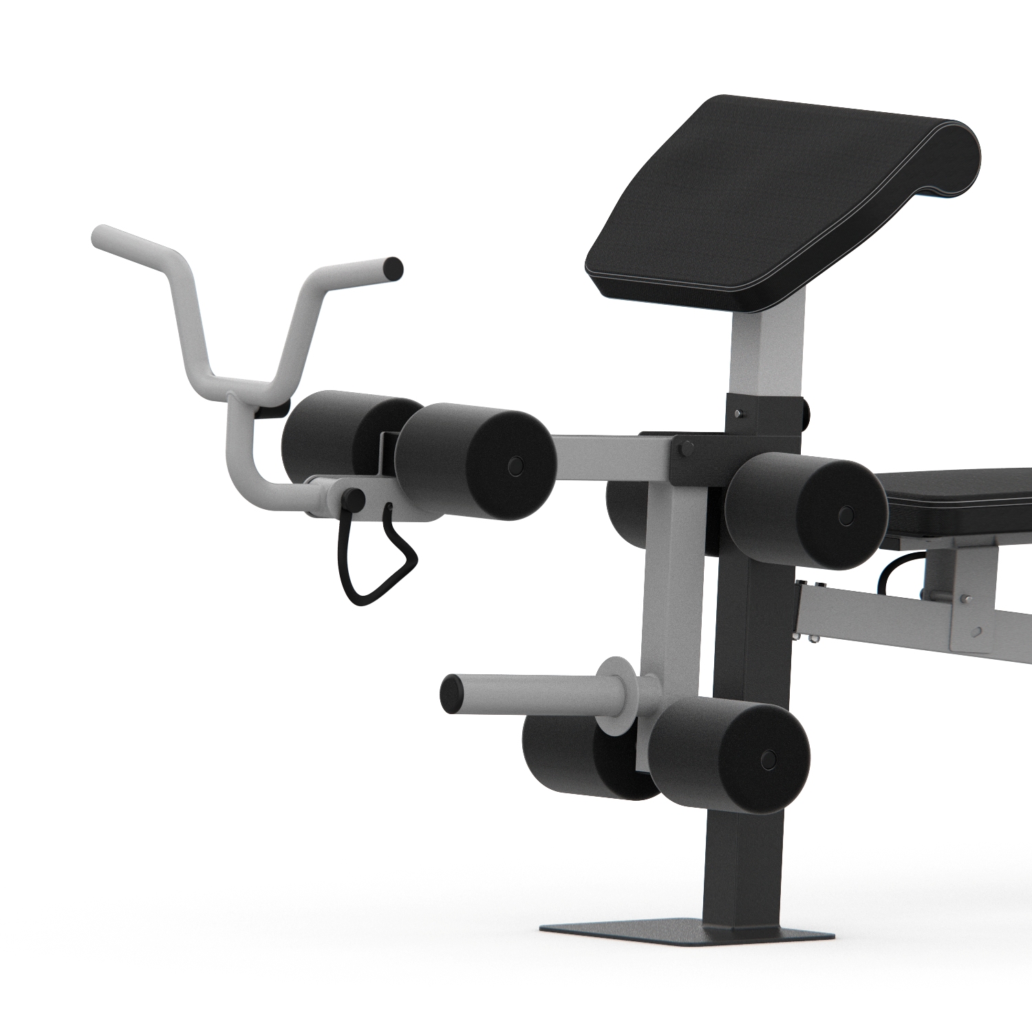 Скамья легко подстраивается под пользователя: доступны 7 уровней наклона спинки, 3 уровня высоты парты для бицепса и два угла наклона сидения. Рычаг для тренировки рук диаметром 25 мм легко устанавливается и снимается без помощи дополнительных инструментов.