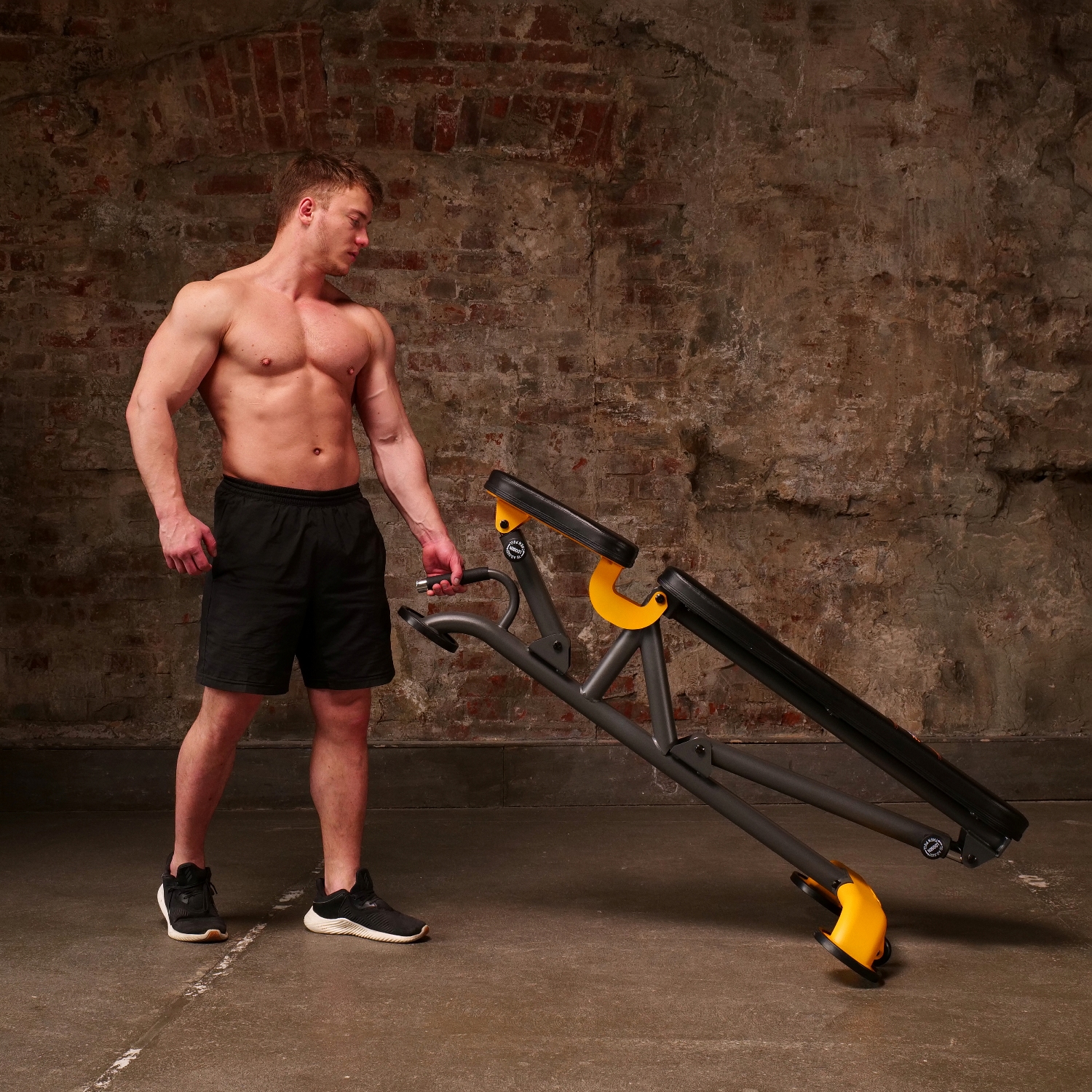 Транспортировочные ролики и удобная ручка служат для лёгкого перемещения скамьи в помещении.