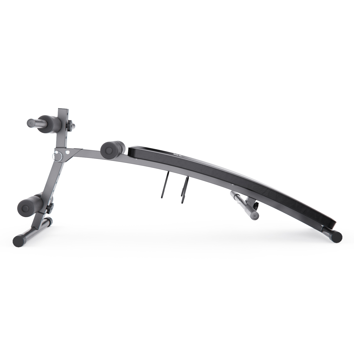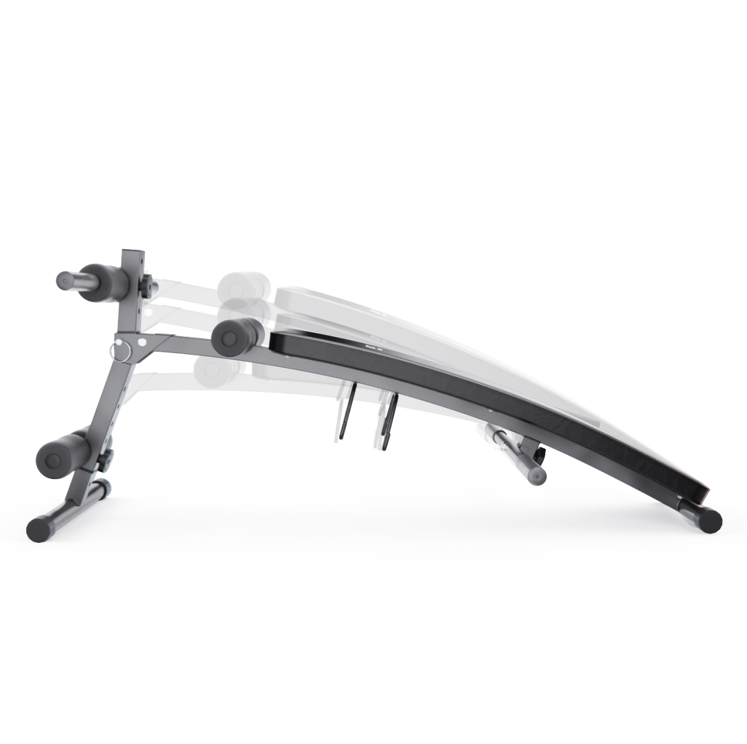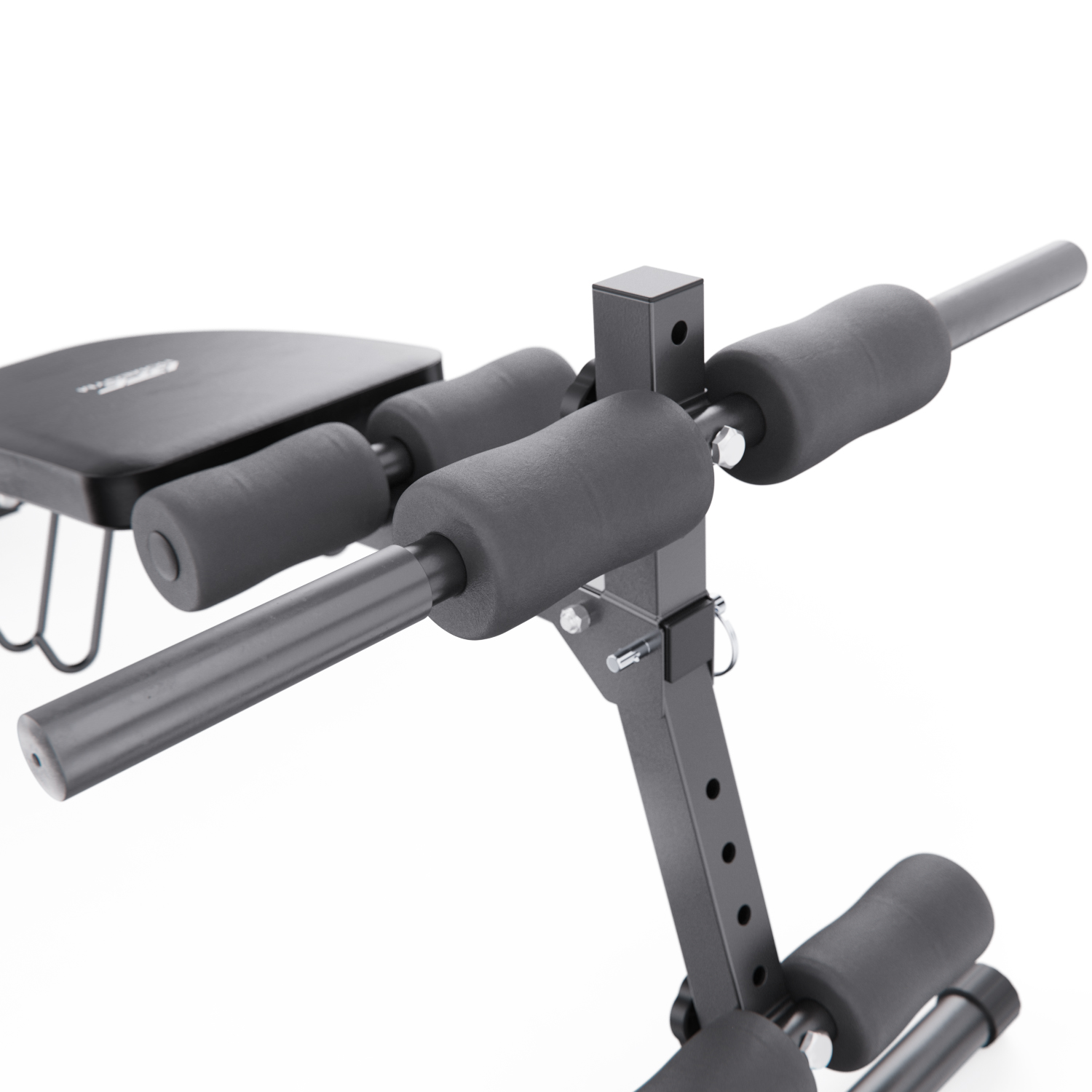 Мягкое сиденье с размерами 94 х 28 х 4,5 см обито водонепроницаемой экокожей, что упрощает уход и делает тренировки более гигиеничными. После занятий достаточно протереть поверхность влажной салфеткой — и скамья снова готова к использованию. Угол наклона скамьи регулируется на 4 уровня за счёт изменения длины ножки. Скамья имеет 3 уровня регулировки верхних валиков и 4 уровня нижних, что позволяет точно настроить оборудование под рост и потребности пользователя. Это особенно важно для правильного распределения нагрузки и комфортного выполнения упражнений.