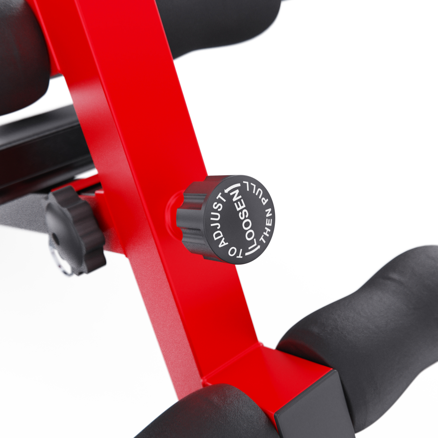 Максимальный вес пользователя составляет 110 кг, что делает скамью подходящей для большинства пользователей. 2 уровня регулировки угла наклона скамьи для жима позволяют менять нагрузку и эффективно прорабатывать разные группы мышц. Вы можете выполнять подъемы корпуса для прокачки пресса, подъемы ног для нижнего отдела живота, а также использовать скамью для упражнений с гантелями. Эргономичные регулируемые валики из вспененного материала обеспечивают комфорт во время тренировки, а нижние валики позволяют надежно фиксировать стопы.