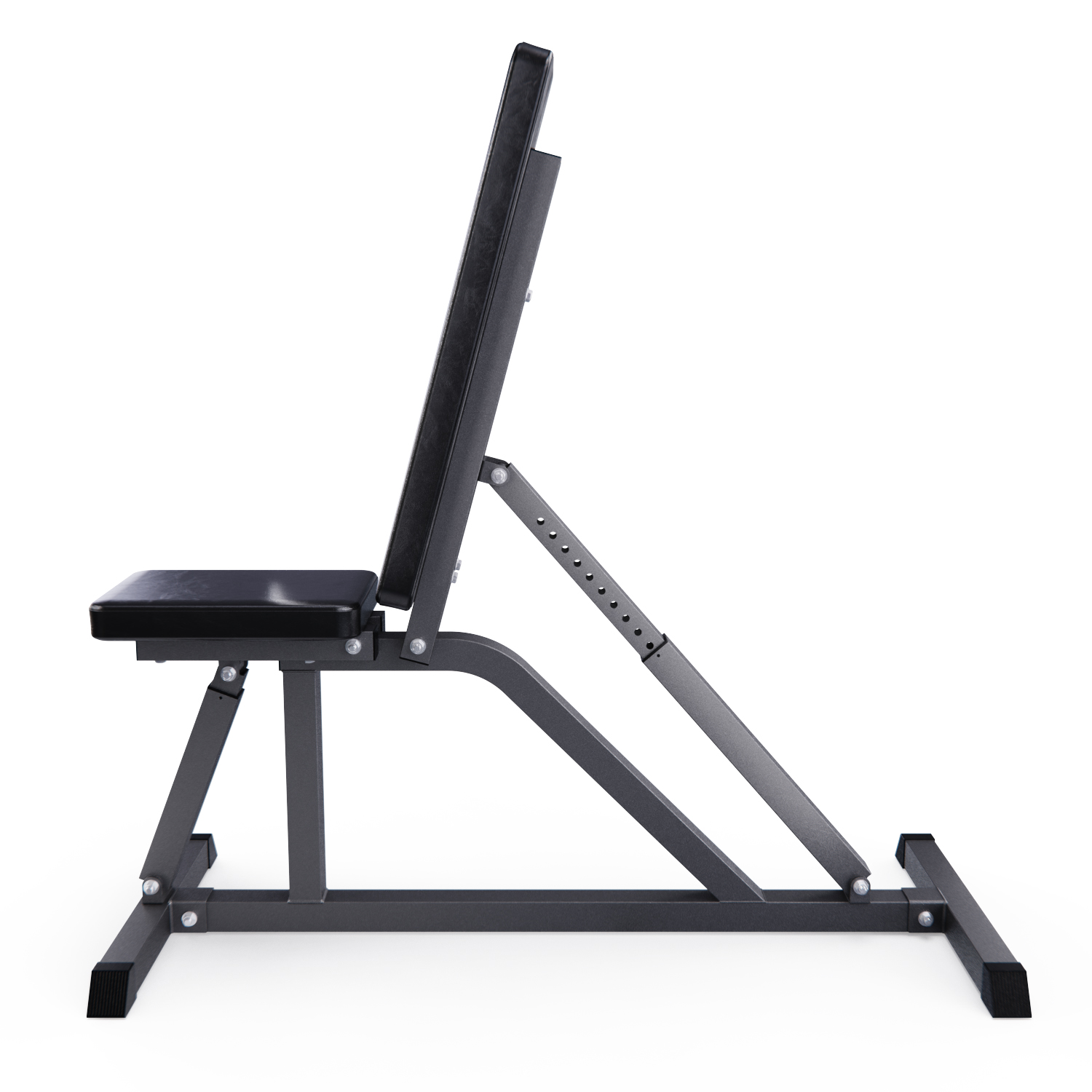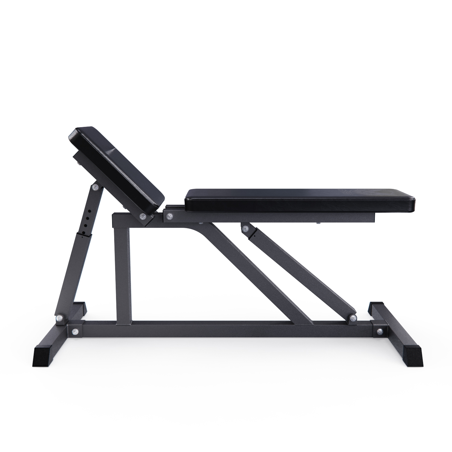 Нескользящие ножки скамьи для фитнеса обеспечивают прочное и устойчивое сцепление. Они оснащены черными резиновыми торцевыми заглушками. Помимо надежной подставки, они также защищают пол и предотвращают повреждения.
