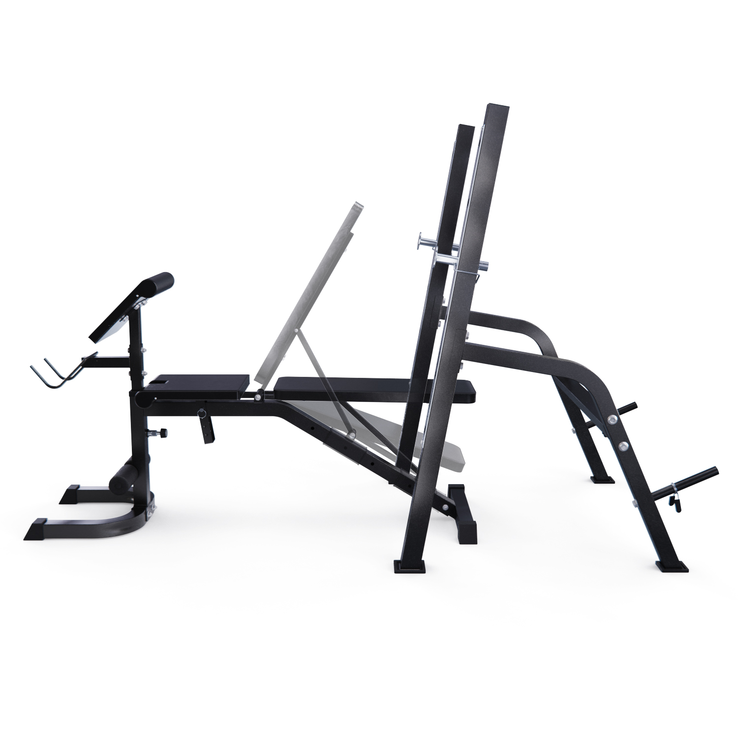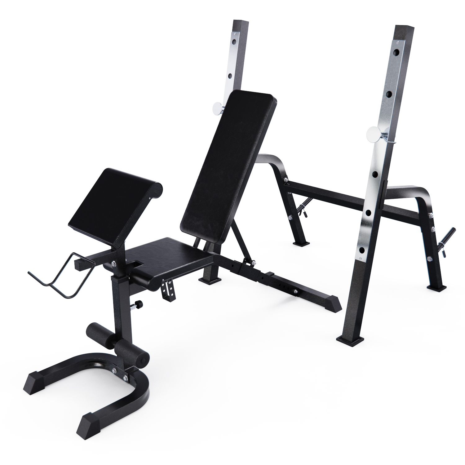 Скамья со стойками под штангу DFC GORILLA черная, с партой для бицепса