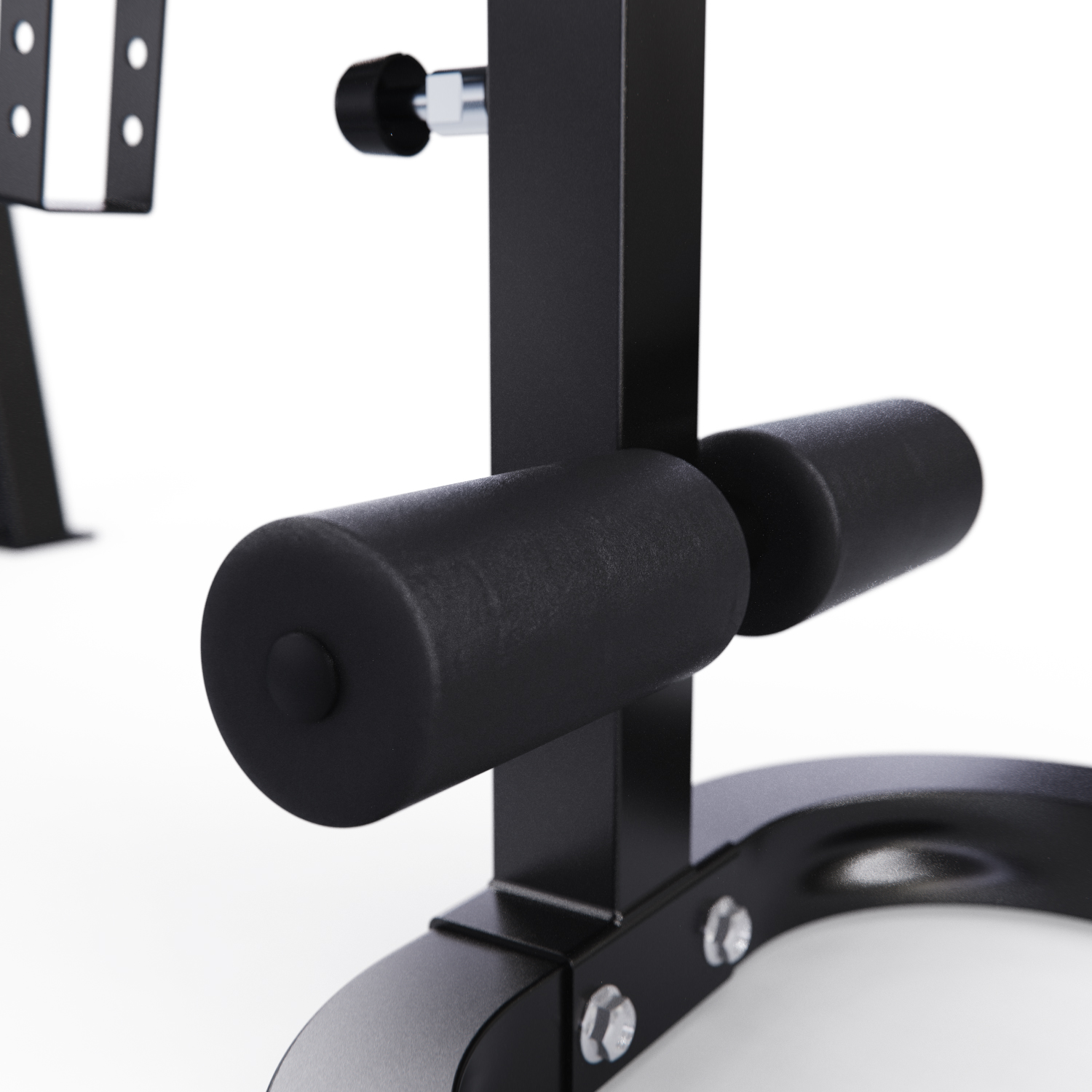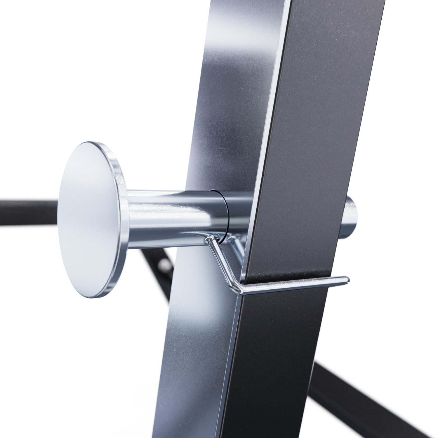 Высота держателей под штангу регулируется на 6 уровней от 46,5 до 138,5 см, что обеспечивает комфорт во время выполнения упражнений и позволяет настроить тренажер под себя.