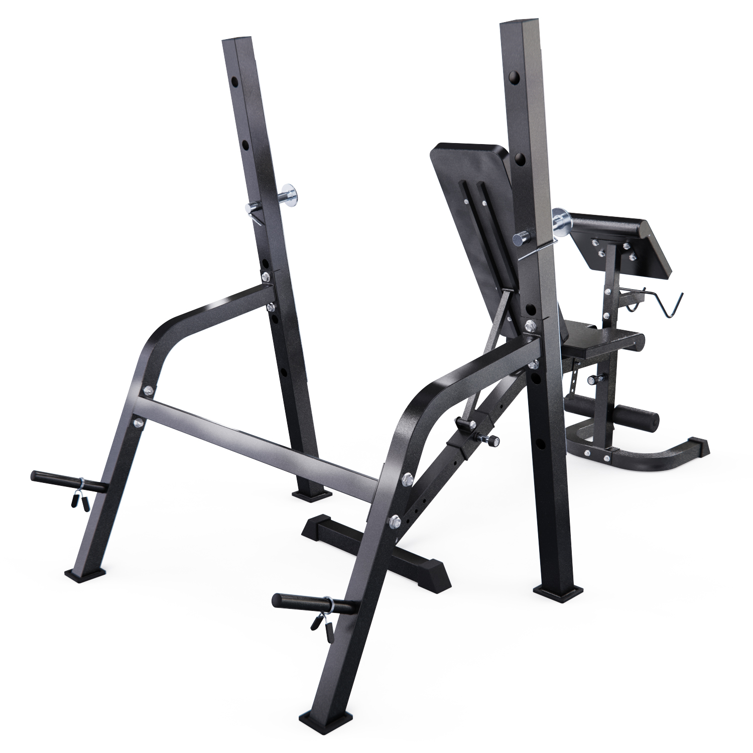Максимально допустимая нагрузка на спортивную скамью составляет 250 кг. Нагрузка на парту может достигать 100 кг, а нагрузка на держатели под штангу составляет 100 кг.