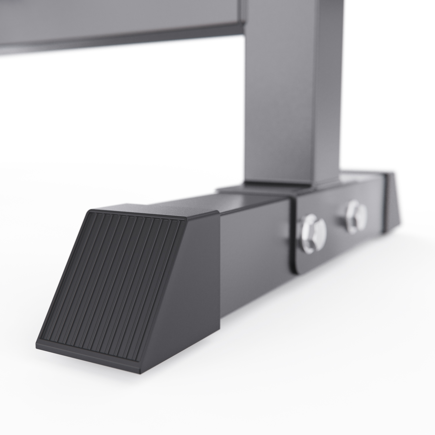 Размер тренажёра в рабочем виде — 193 х 134 х 103–123 см. Прочная стальная рама и нескользящие ножки обеспечивают отличную устойчивость и безопасность даже при интенсивной работе с весом.