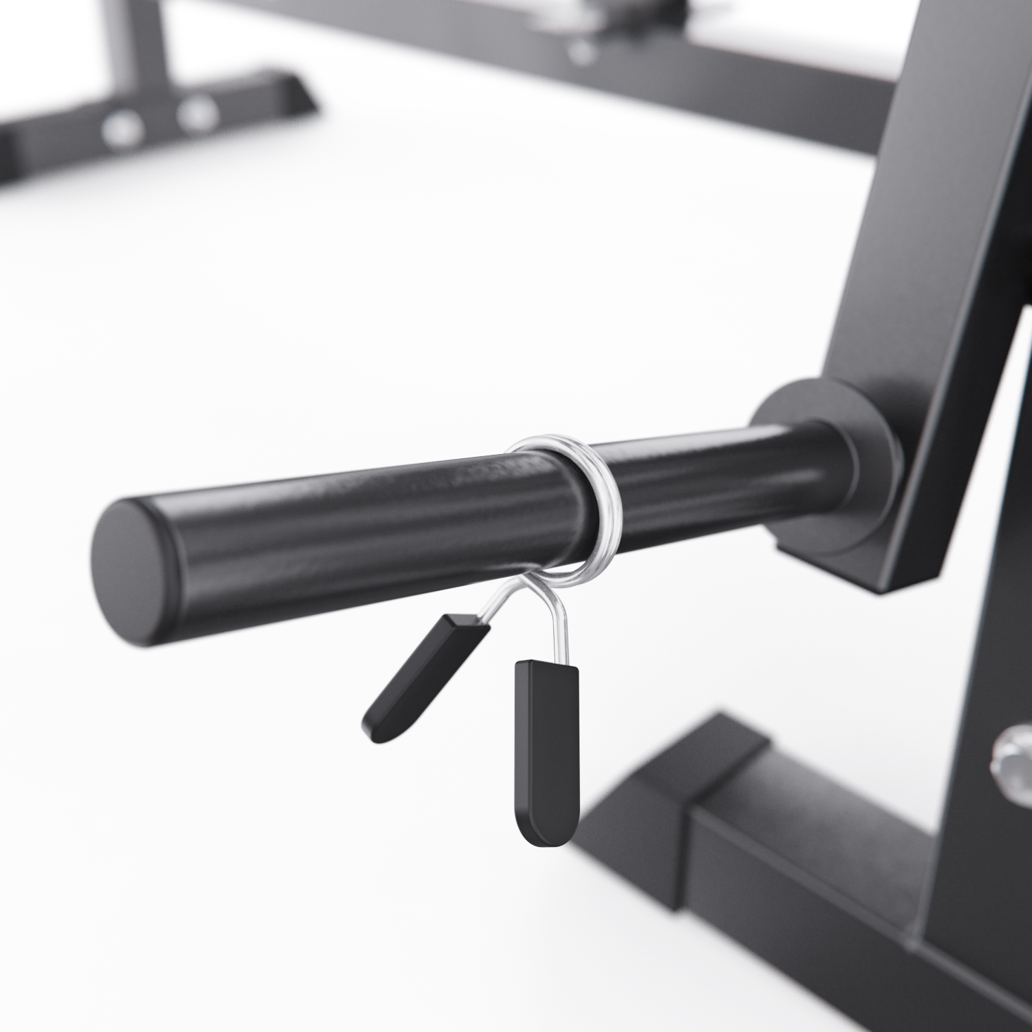 Максимальная нагрузка на скамью составляет 280 кг, включая 180 кг на сиденье, 60 кг на валики и до 40 кг на каждый рычаг для рук-бабочек. Это позволяет безопасно тренироваться с большими весами. Посадочный диаметр для дисков — 25 мм, длина посадочного места — 18 см. В комплект входят 2 пружинных фиксатора.