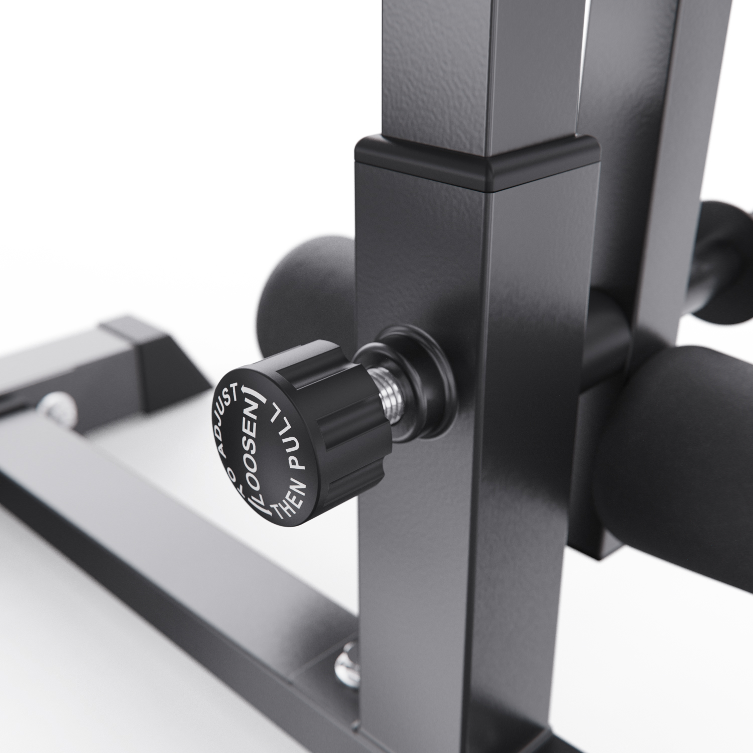 Скамья оснащена 7-позиционной регулируемой спинкой (от 0° до 90°), что позволяет выполнять широкий спектр упражнений: от горизонтального и наклонного жима штанги до жима сидя. Размер спинки — 68 х 24 см, сиденья — 36 х 30 см. Высококачественная обивка из износостойкого кожзаменителя обеспечивает мягкость и стабильность даже при высоких нагрузках.