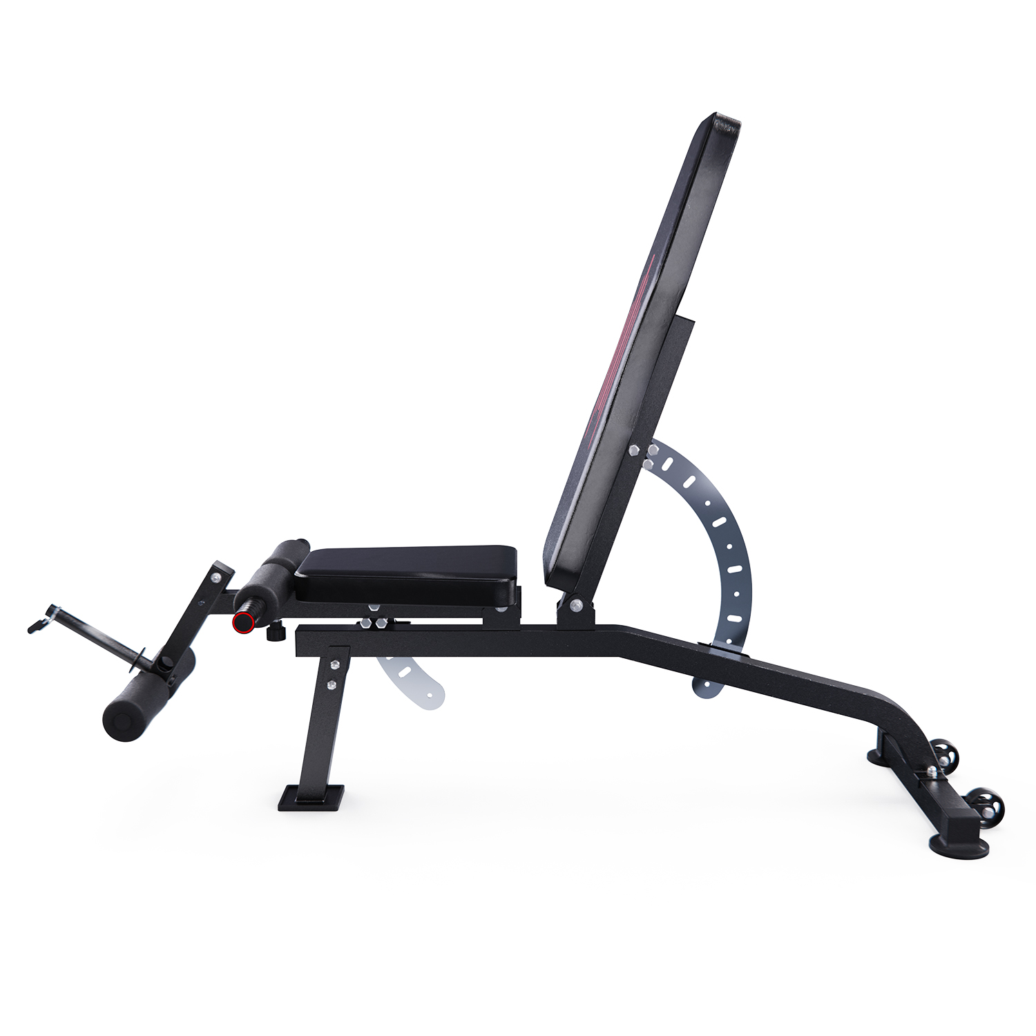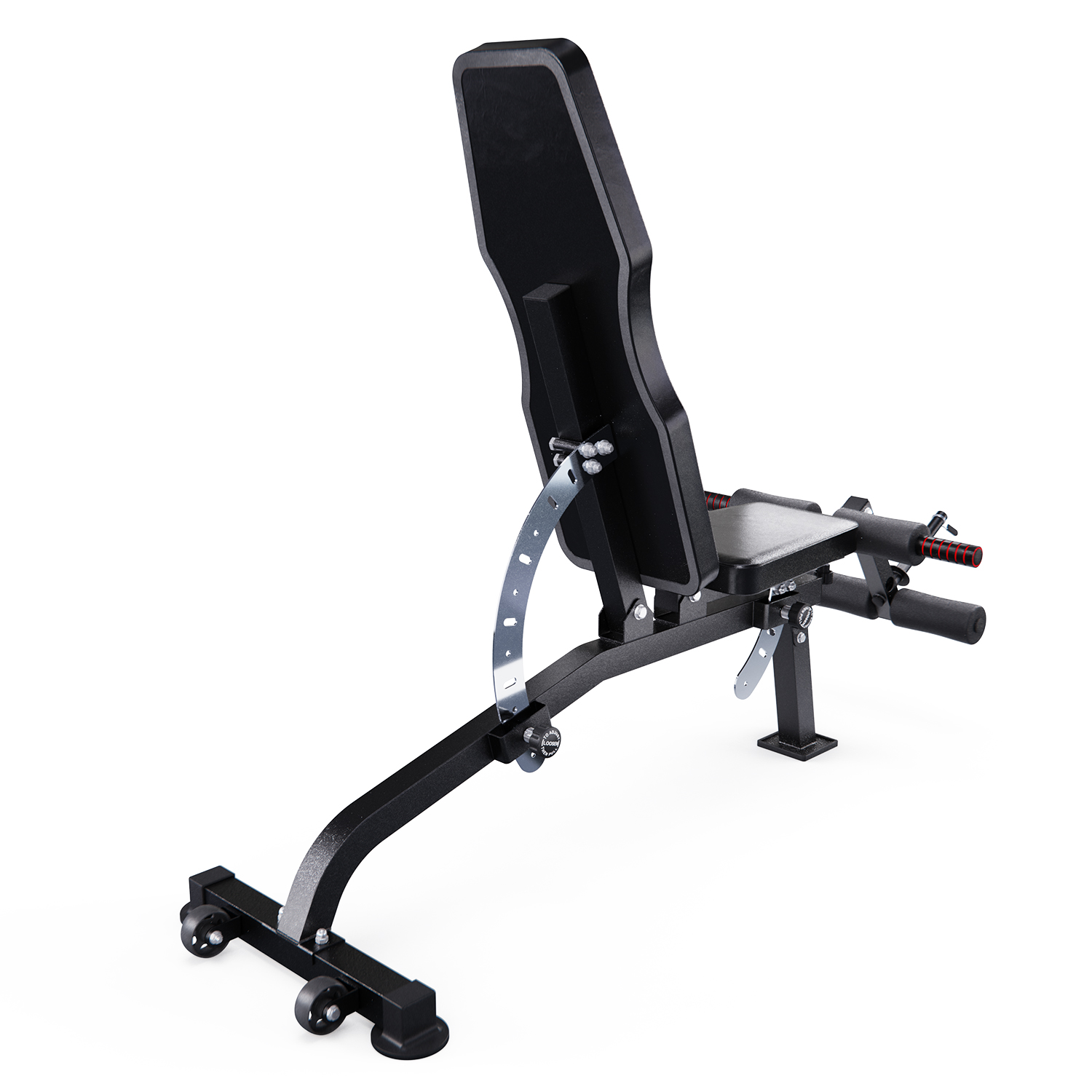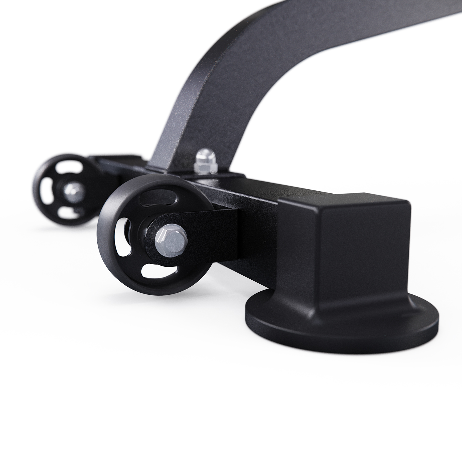 Скамья для пресса оснащена транспортировочными роликами, что облегчает ее перемещение по комнате, а нескользящие прорезиненные ножки способствуют лучшему сцеплению во время использования скамьи.