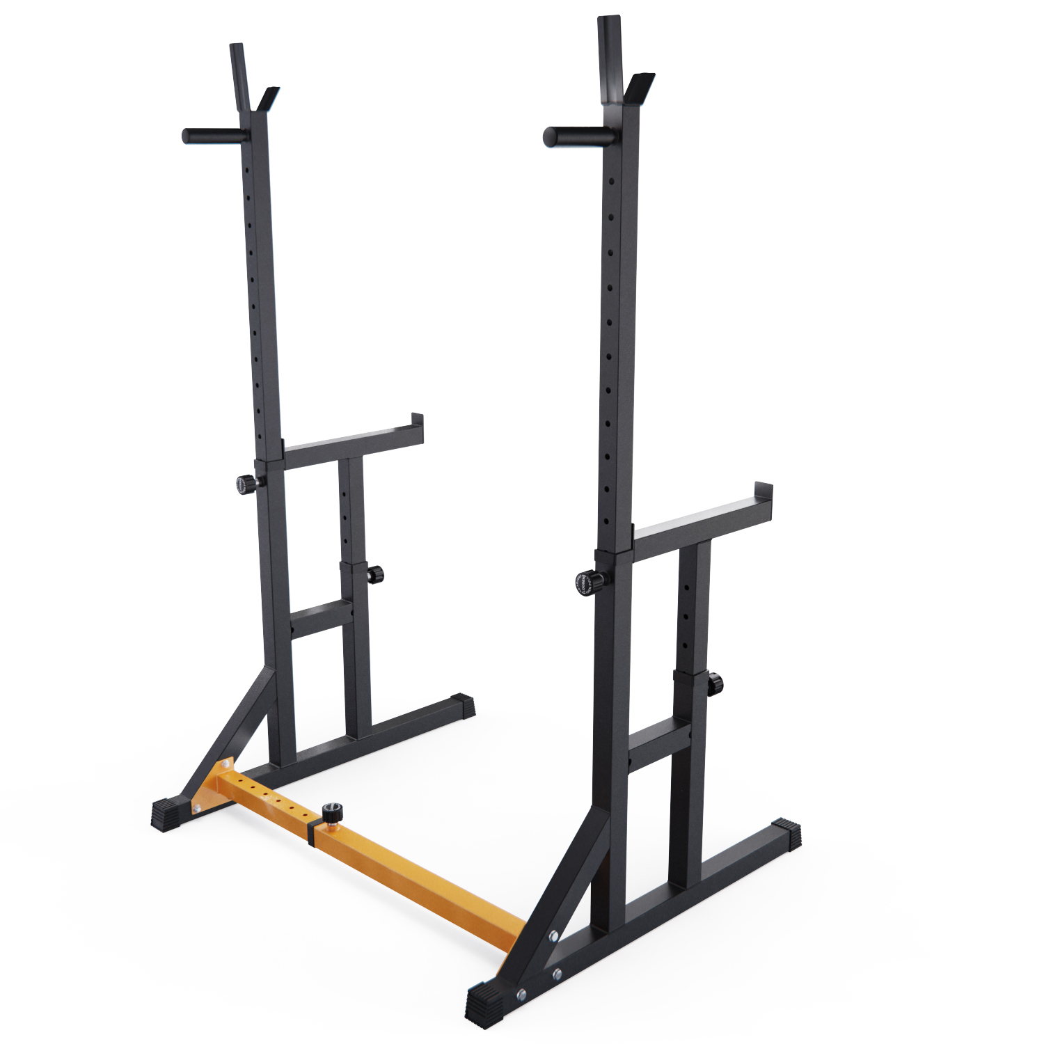 Устойчивое основание стойки для приседаний из высокопрочной профильной трубы 50 х 45 х 1,5 мм выдерживает динамическую нагрузку до 200 кг (динамическая нагрузка – нагрузка на элементы конструкции в движении). Подходит для выполнения полного спектра упражнений со штангой: от приседаний и становой тяги до жима лежа. Нескользящие упоры для отжиманий помогут разнообразить ваши тренировки.