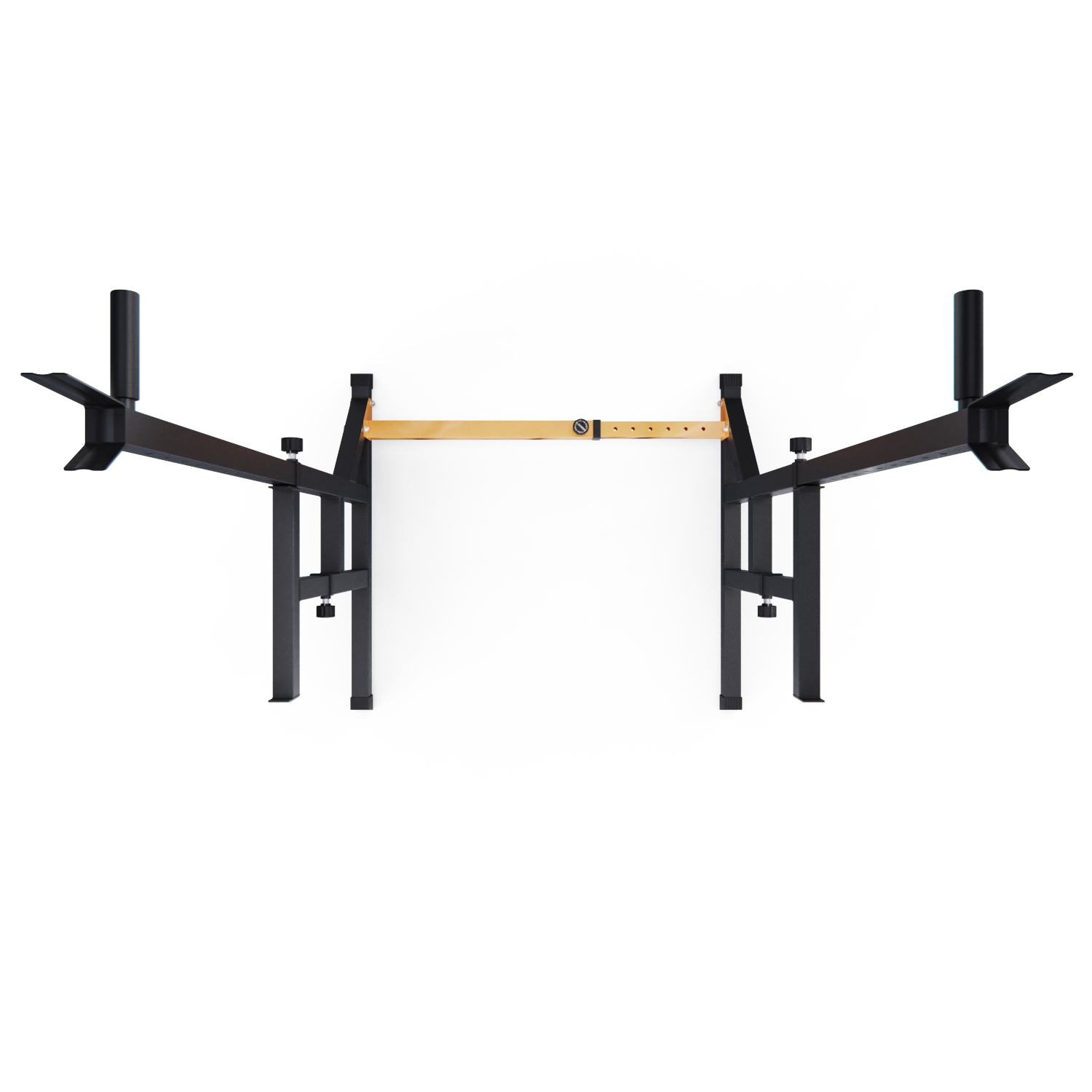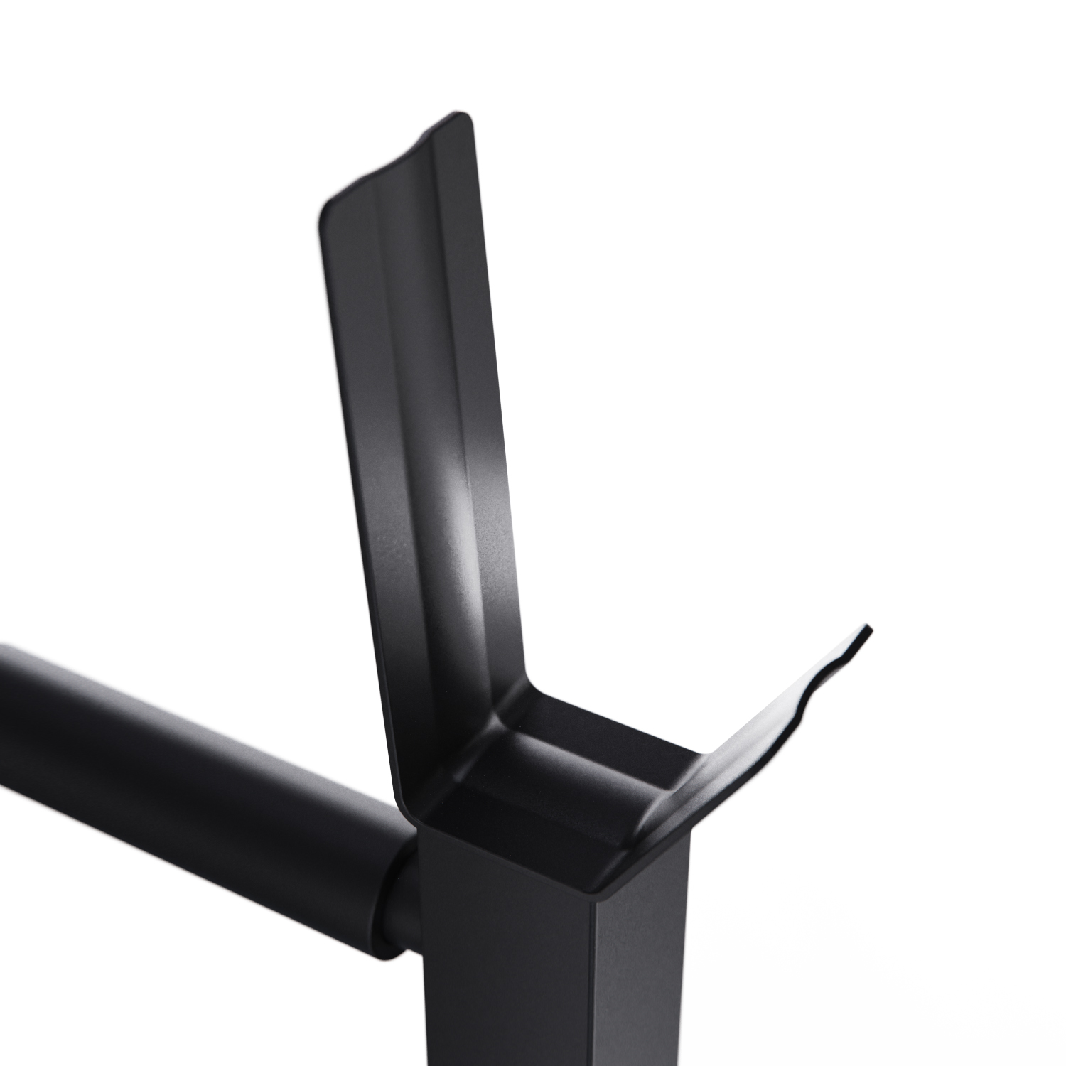 Ширину стойки для жима можно индивидуально настроить от 80 до 113,5 см. Нескользящие ножки надежно устанавливаются на полу и не царапают поверхность.