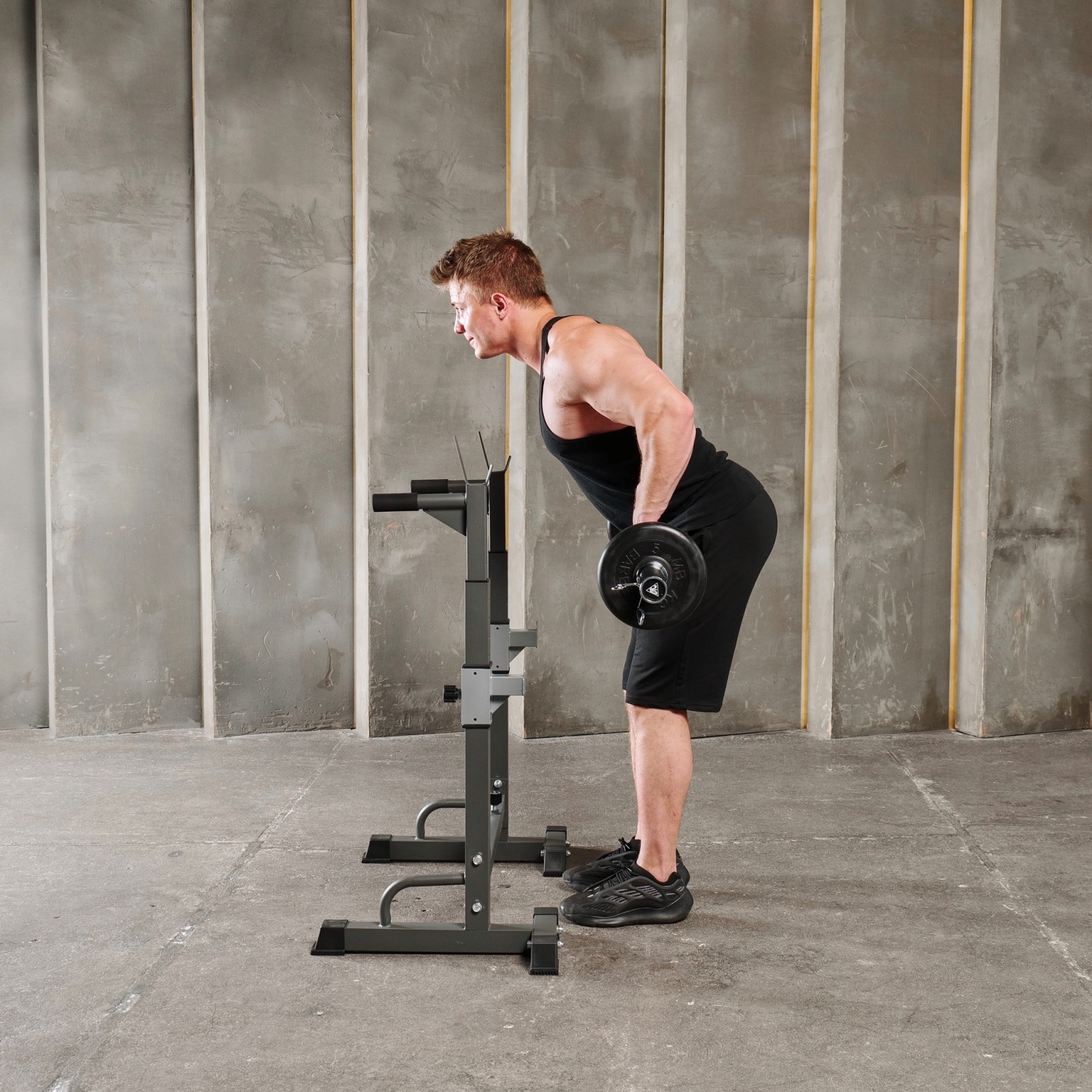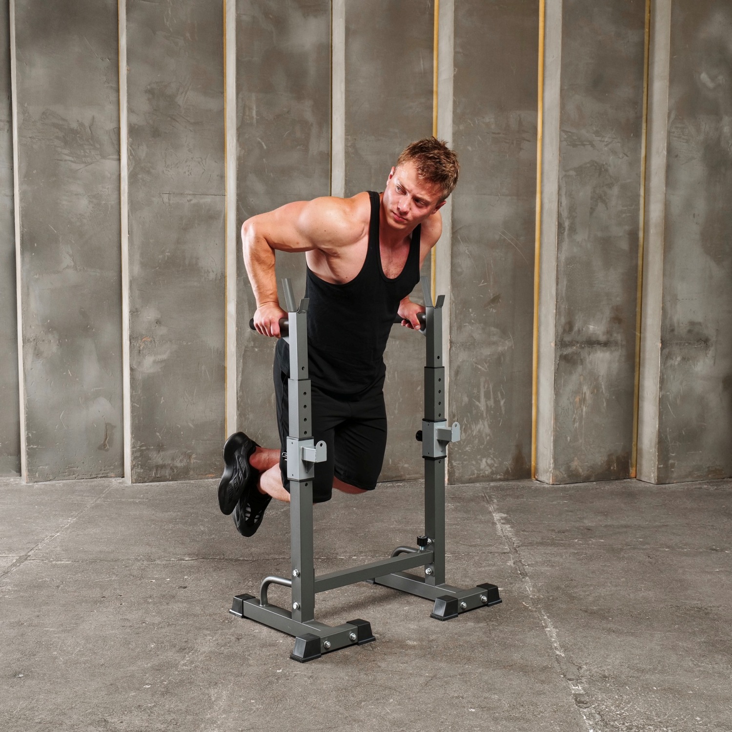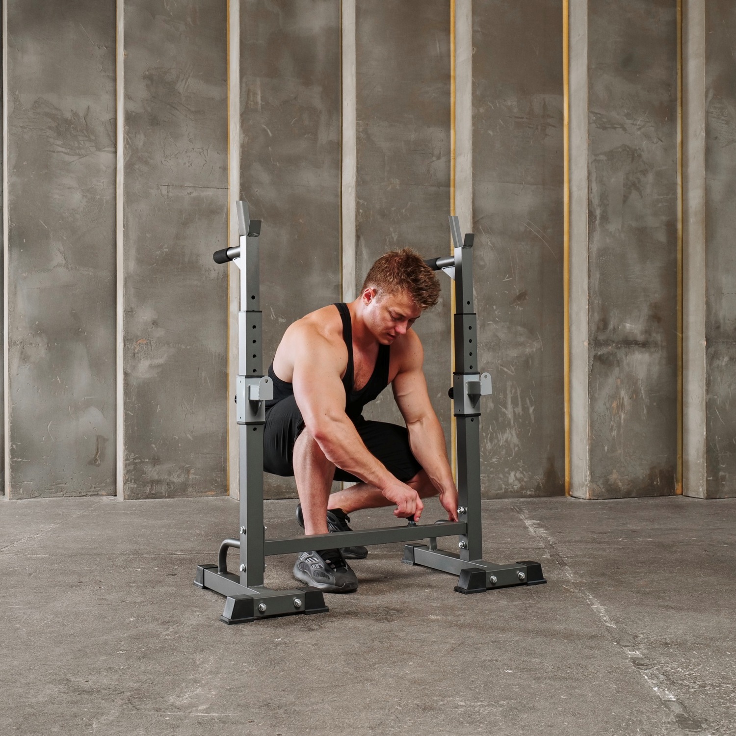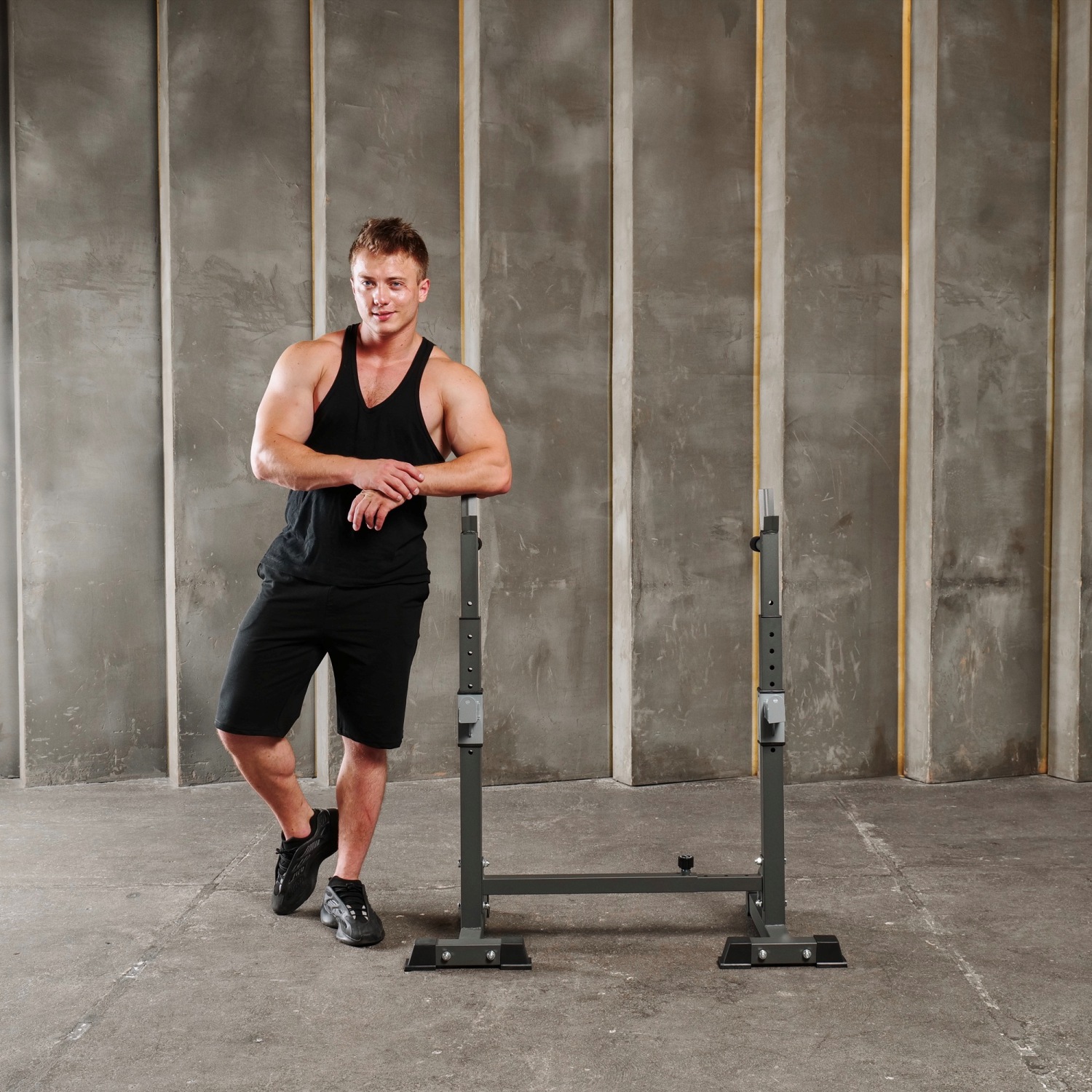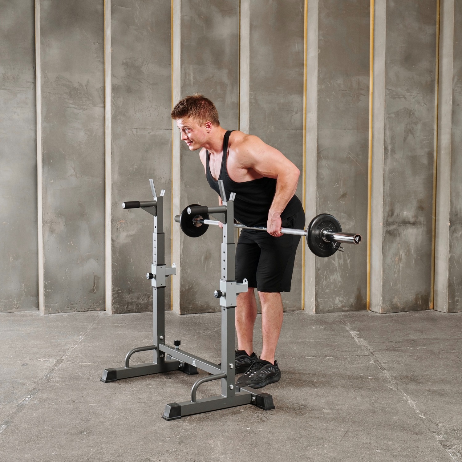 Многофункциональная стойка для домашнего спортзала. Подходит для выполнения полного спектра упражнений со штангой: от приседания и становой тяги до жима лежа. Приятное дополнение – стойки для отжиманий от пола.
