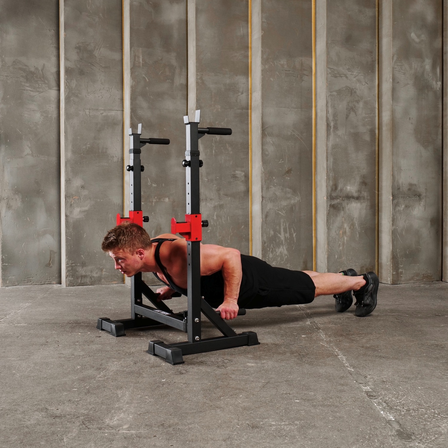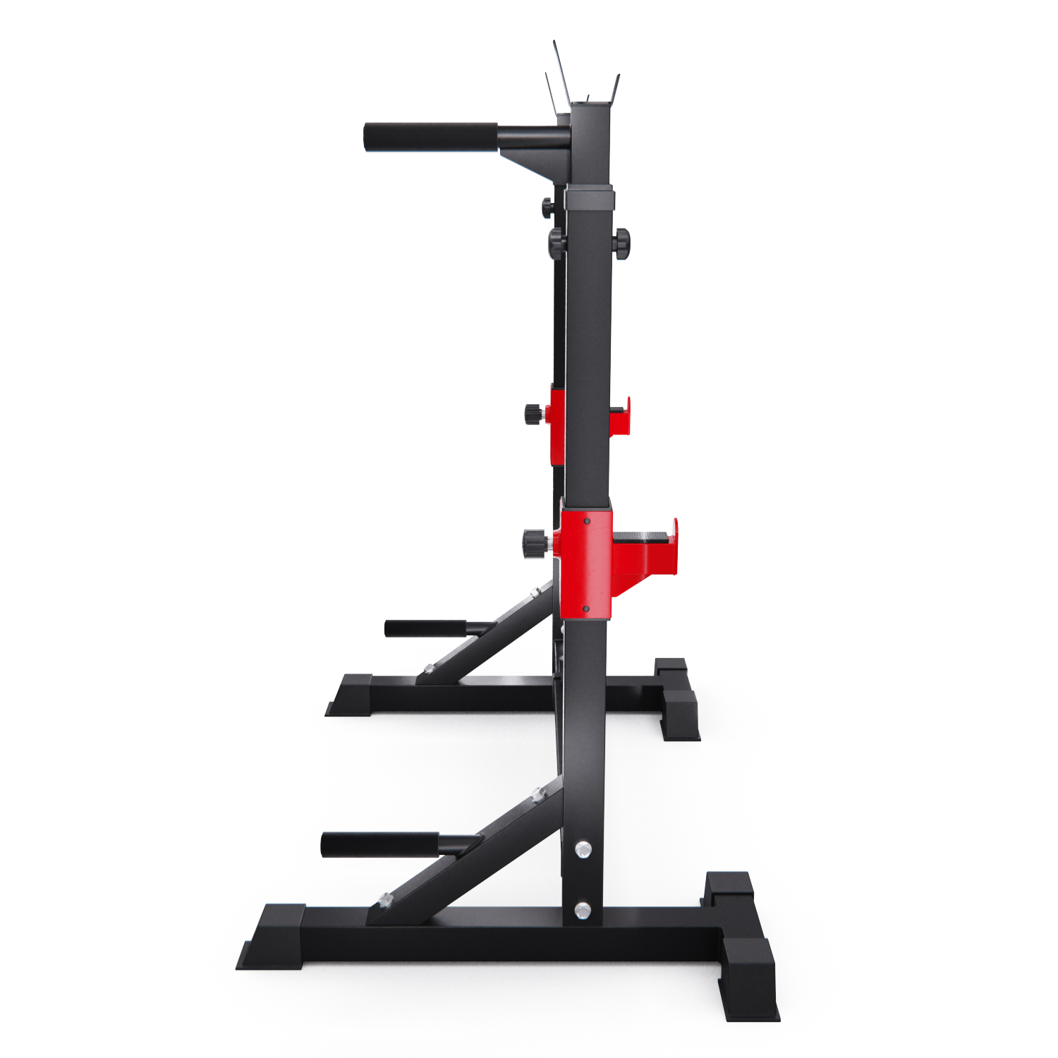 Многофункциональная стойка для штанги 3-в-1: позволяет легко выполнять различные упражнения, включая жим лежа, жим от плеч, приседания, подъемы над головой, упражнения со штангой, отжимания на брусьях, подтягивания, отжимания. Высота регулируется от 109,7 до 181,9 см, 15 уровней; а ширина от 71,8 до 122,2 см, 4 уровня.
