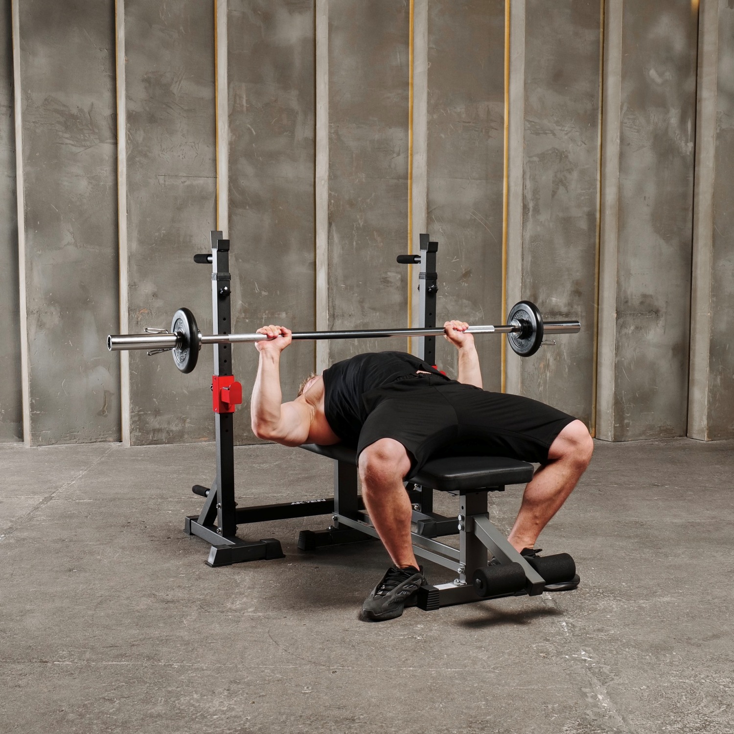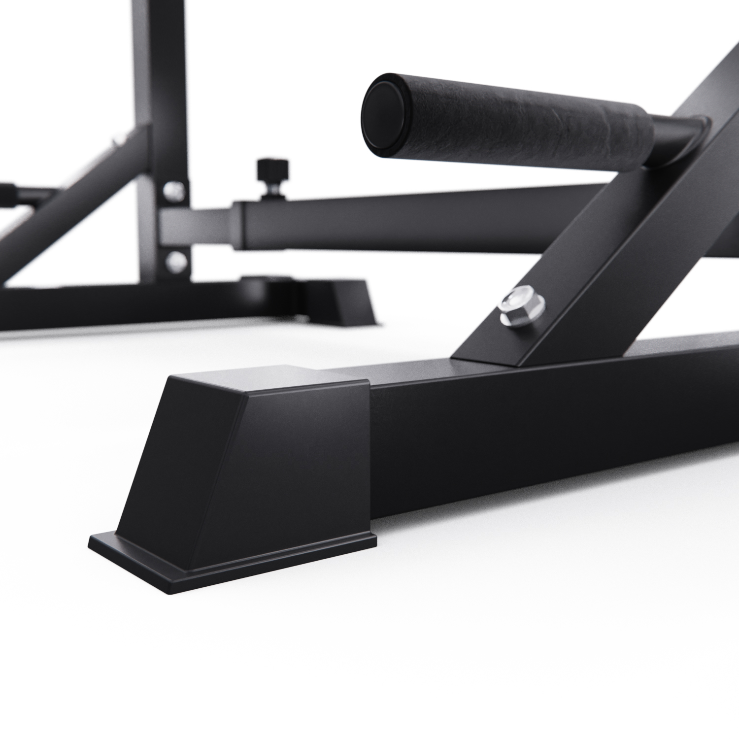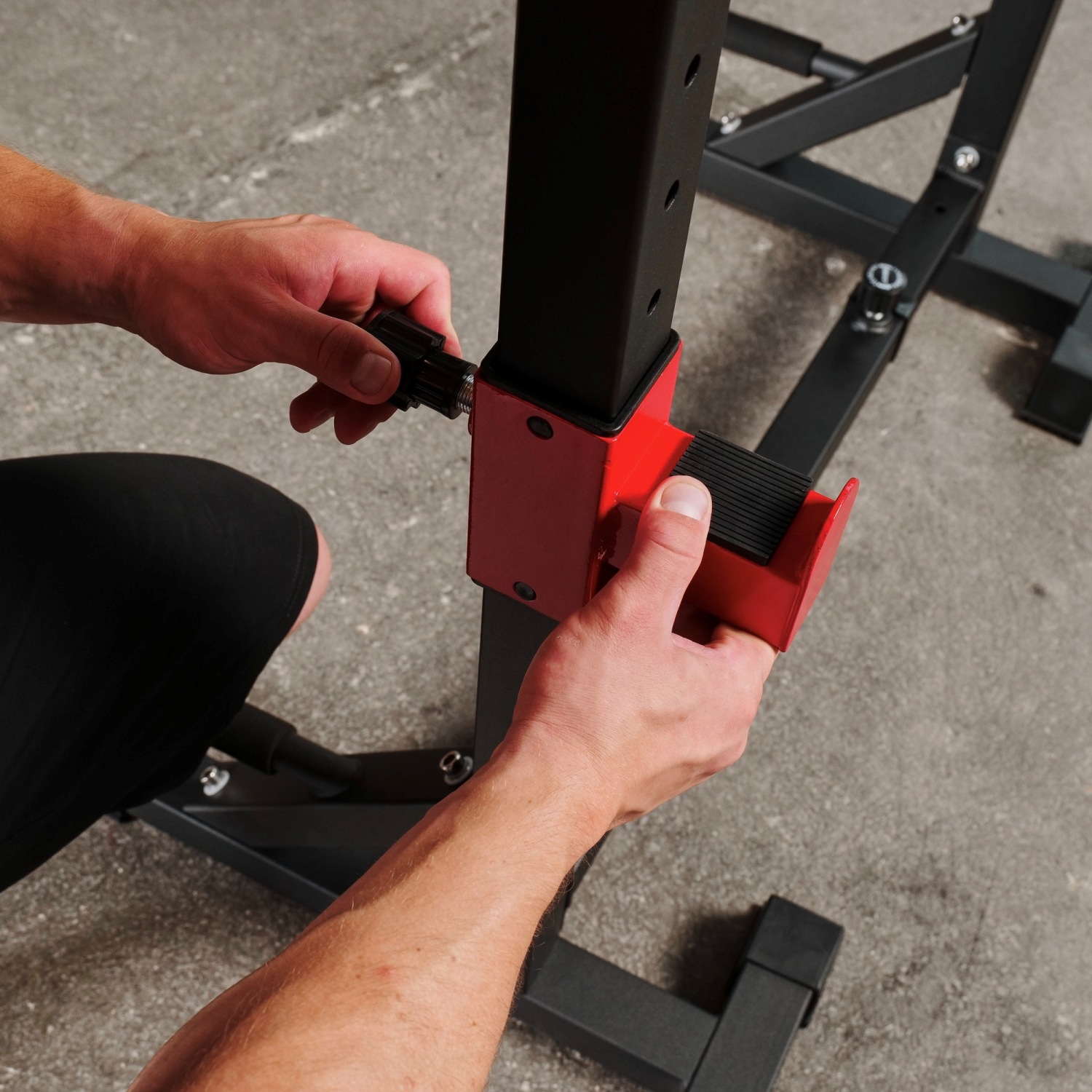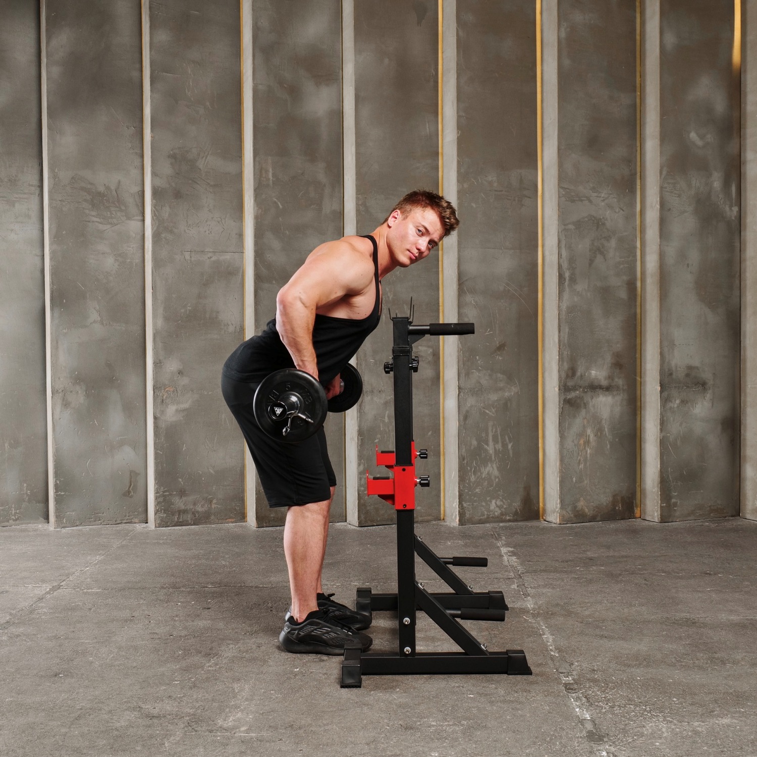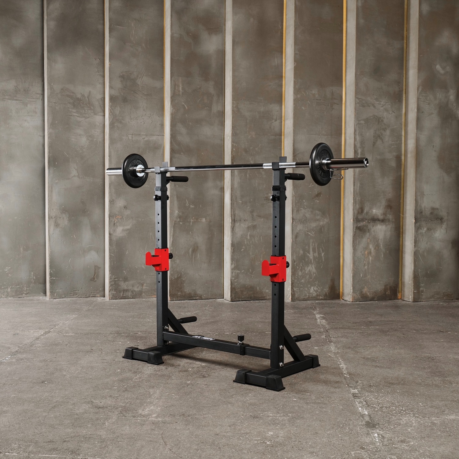 Прочная и надежная: подставка для штанги очень устойчива и прочна, имеет Т-образную форму и треугольный дизайн , а резиновые колпачки на ножках защищают пол.