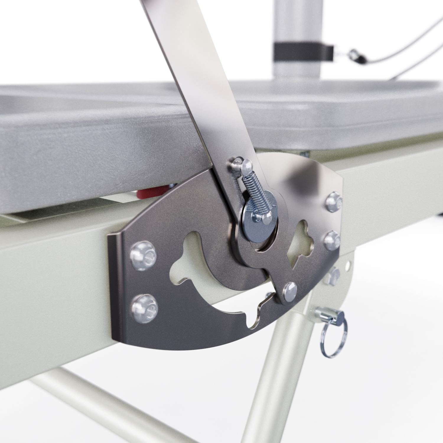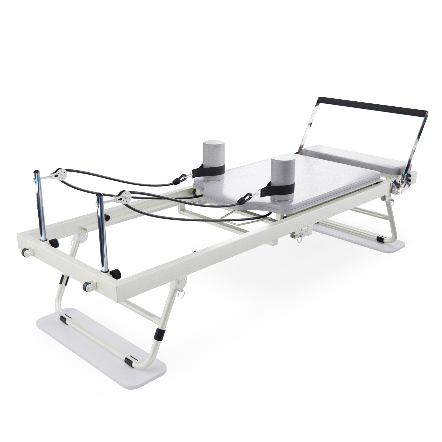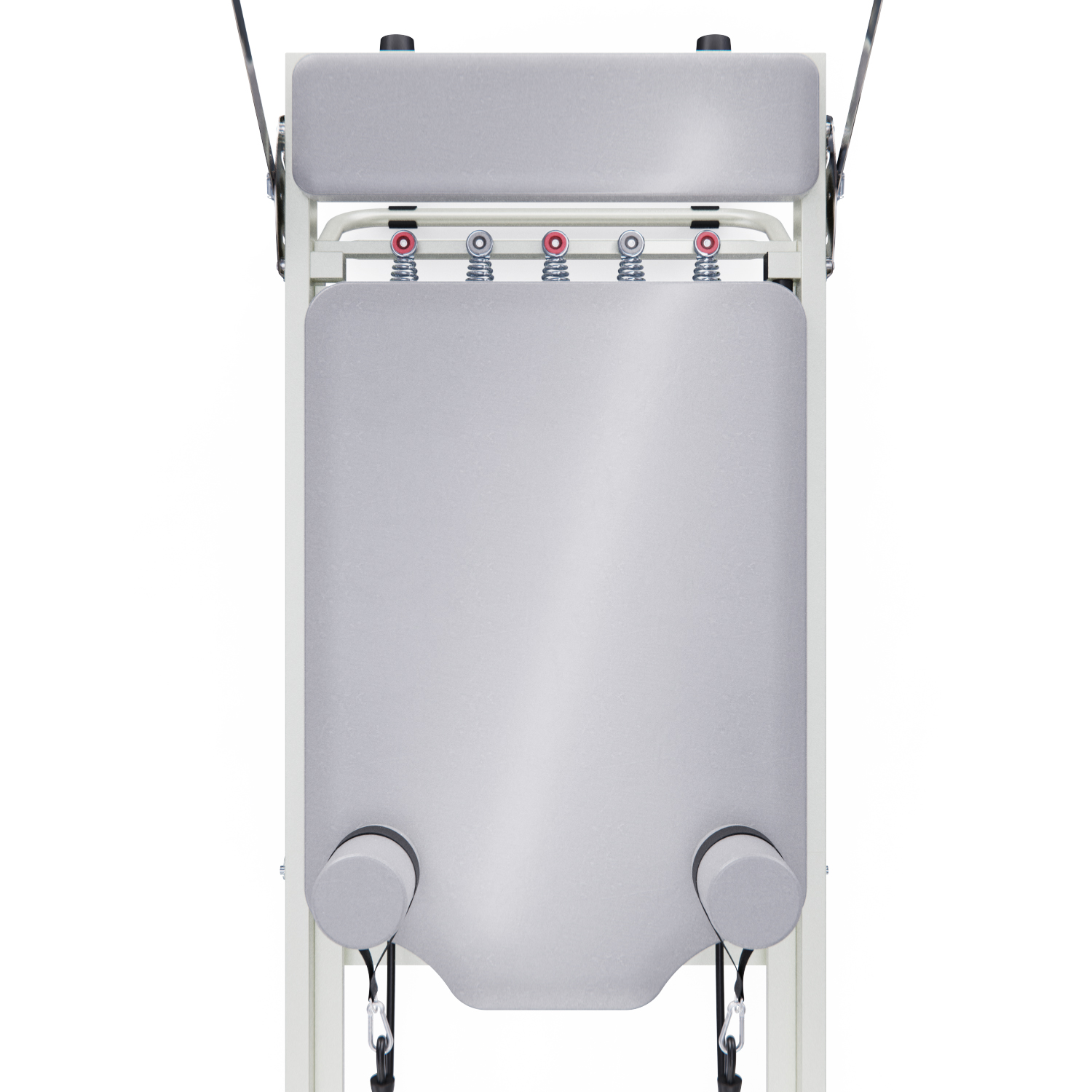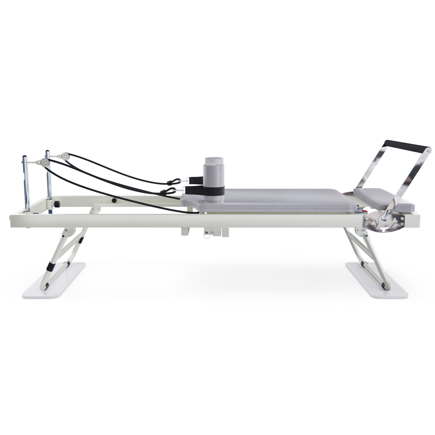 Реформер выполнен из высококачественных материалов и рассчитан на рост пользователя до 175 см и максимальный вес 120 кг. Размер подвижного сиденья 84,5 х 49 х 5 см обеспечивает комфорт при выполнении различных упражнений, а его особая форма помогает сохранить правильное положение головы и шеи. Расстояние от сиденья до пола — 44 см, что делает посадку максимально удобной.