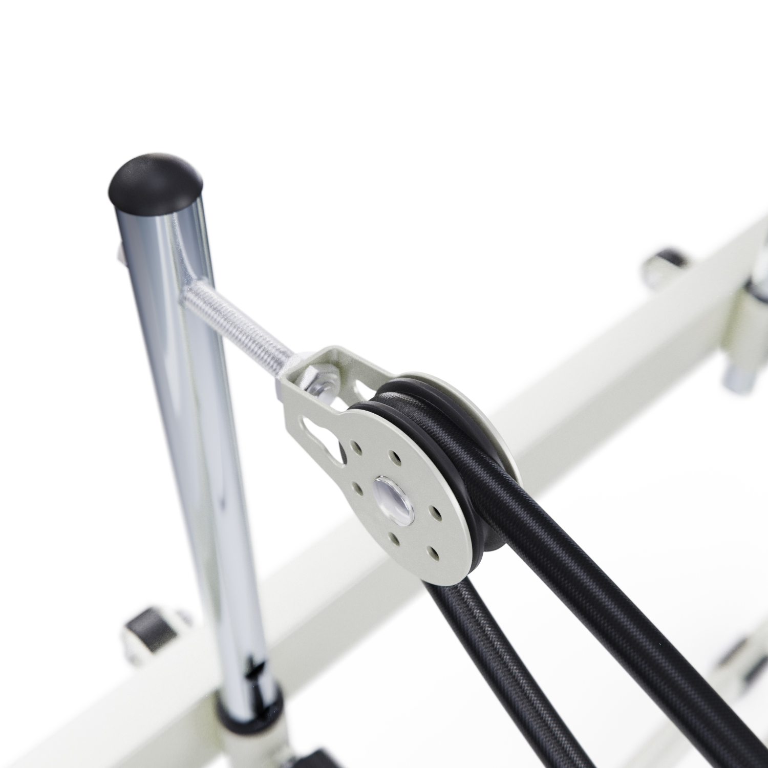 Реформер оснащён 5-ю пружинами для настройки уровня сопротивления и регулировкой поручня в 3-х положениях. Эспандеры расширяют диапазон упражнений, позволяя проработать все группы мышц. Размер подставки под ноги — 48 х 15 х 5,5 см — обеспечивает устойчивость и комфорт во время занятий. 2 защитные подкладки под ножки тренажера предотвращают скольжение и появление царапин на поверхности пола.