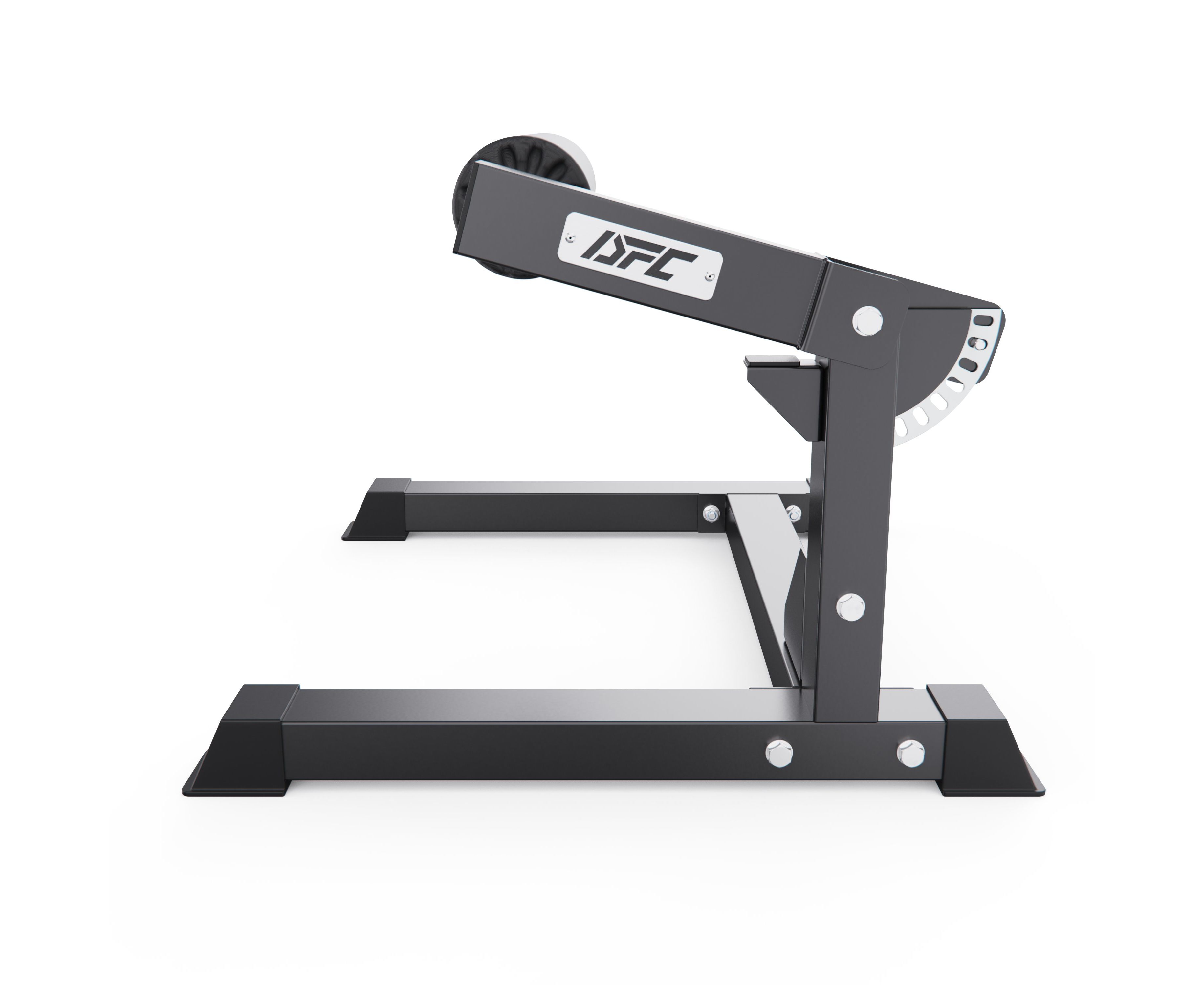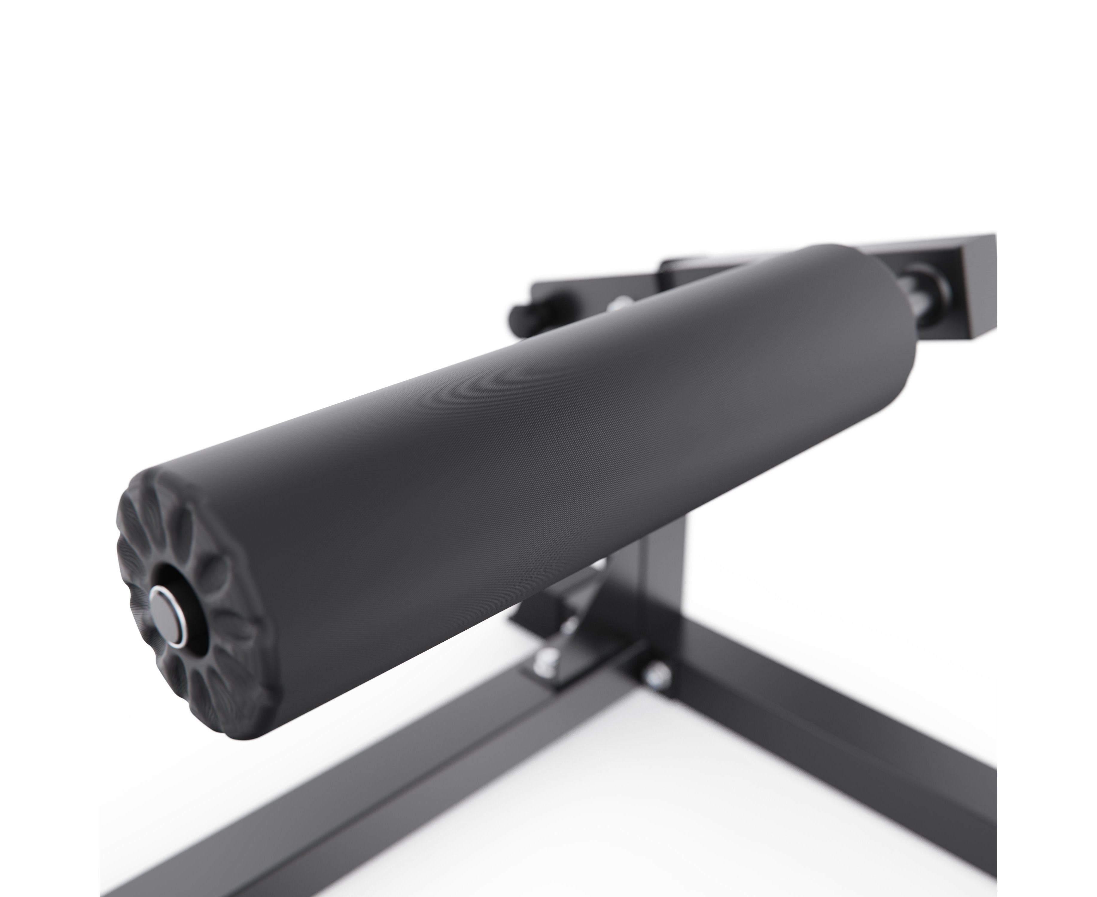 Размер тренажера в собранном виде составляет 75 х 66 х 40–69 см, а вес конструкции – 16 кг. Каркас выполнен из стали с профилем 70 х 50 мм и толщиной стенки 1,5–3 мм, что обеспечивает надежность и устойчивость конструкции при эксплуатации. Валики изготовлены из плотной пены с полиуретановым покрытием, благодаря чему они сохраняют форму и обеспечивают комфортное положение ног во время упражнений. Размер валиков – 45 х 10 см.