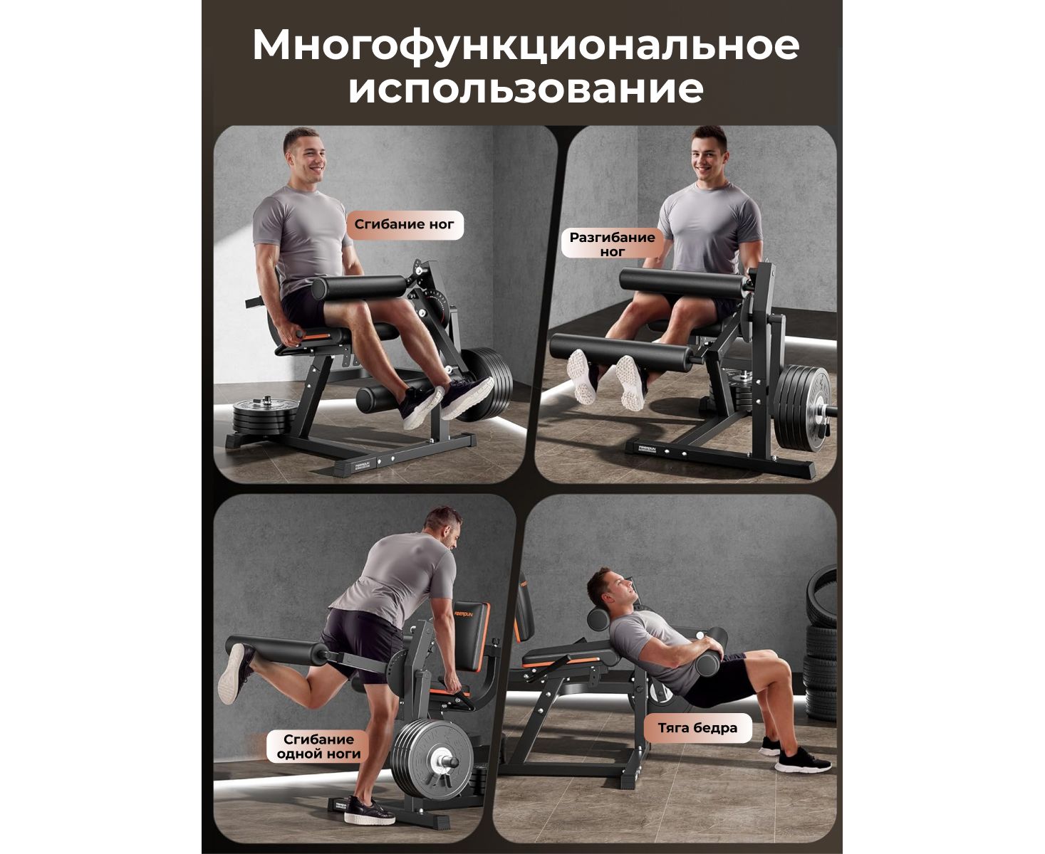 Тренажер для сгибания-разгибания ног DFC D030 — компактное и удобное решение для домашнего использования, позволяющее эффективно прорабатывать мышцы бедер и ягодиц. Поддерживает основные упражнения: сгибание ног, сгибание одной ногой, ягодичный мост и разгибание ног. Максимальная нагрузка до 257 кг