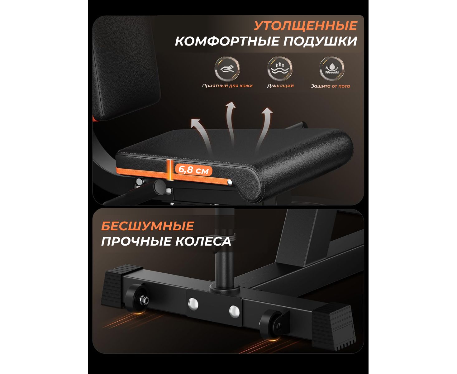 Тренажёр оснащён прочной рамой и качественной обивкой, что гарантирует долговечность и комфорт даже при регулярных занятиях. Эргономичный дизайн обеспечивает правильное положение тела во время упражнений, снижая нагрузку на суставы и спину, а плавная регулировка всех элементов позволяет адаптировать тренажёр под индивидуальные потребности каждого пользователя.