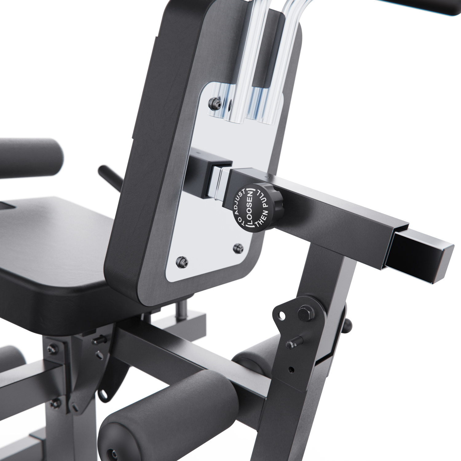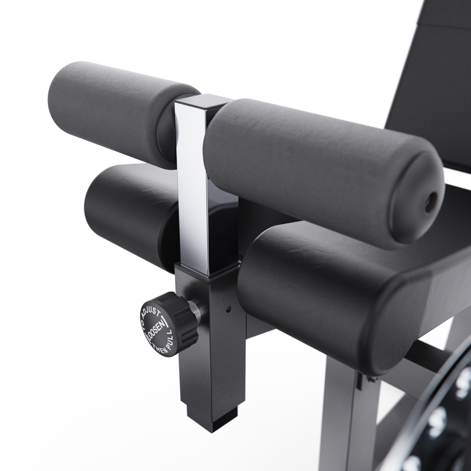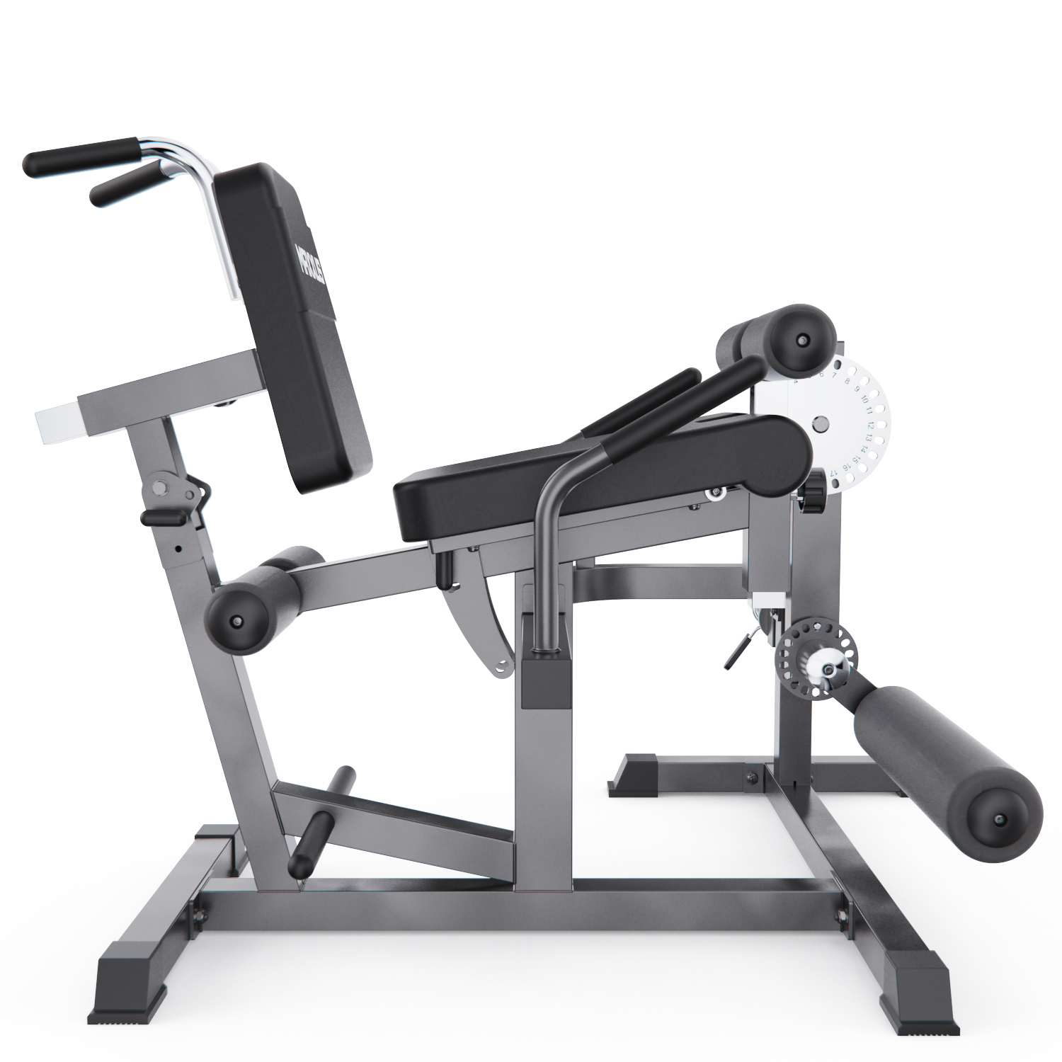 Индивидуальная настройка тренажера обеспечивает максимальный комфорт и эффективность. Большой диск для регулировки угла наклона руки и ноги имеет 24 уровня, а меньший диск для регулировки голеностопного ролика - 18 уровней. Регулируемые валики (6 уровней), спинка с регулировкой по длине и углу наклона, настраиваемое сиденье позволяют адаптировать тренажер под любые параметры пользователя. Это особенно важно для безопасного выполнения упражнений в домашних условиях.