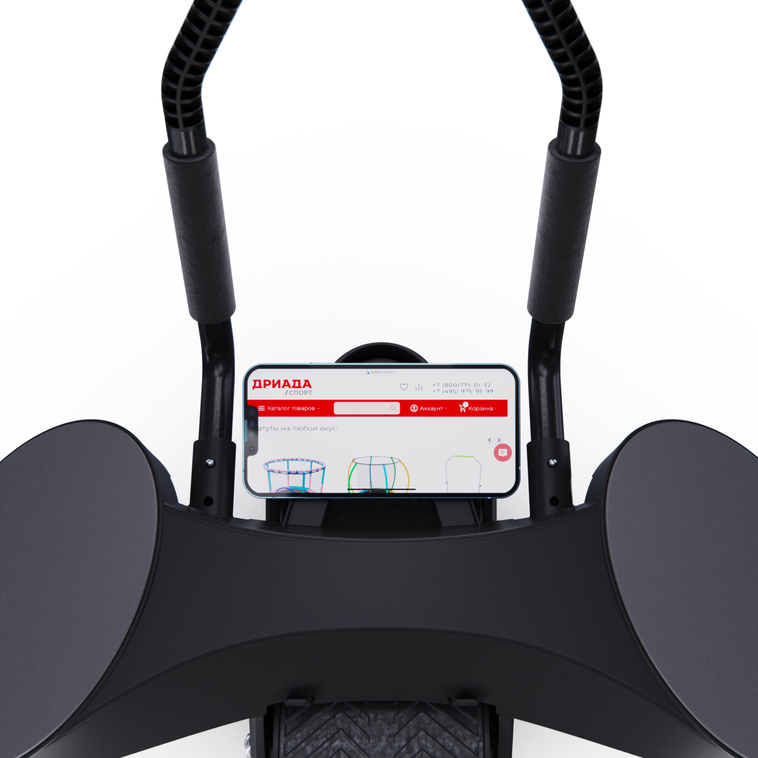 Монохромный LCD-дисплей диаметром 6,5 см отображает время тренировки. Дисплей работает от батарейки LR1130, не входит в комплект. Между подлокотниками располагается подставка под смартфон: разнообразьте свои тренировки просмотром фильма или подкаста.