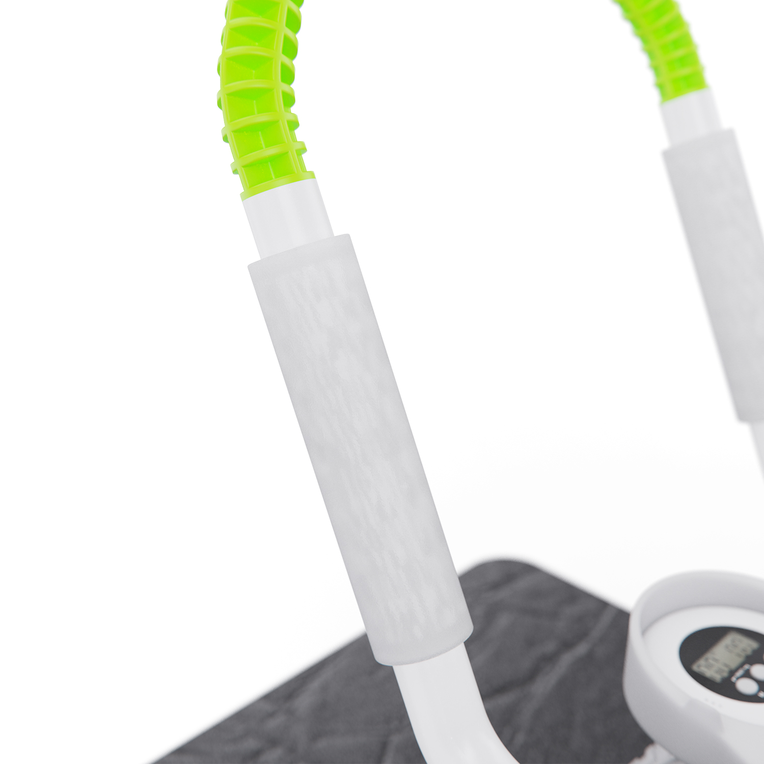 Монохромный LCD-дисплей диаметром 6,5 см отображает время тренировки. Дисплей работает от батарейки LR44, которая входит в комплект. Между подлокотниками располагается подставка под смартфон: разнообразьте свои тренировки просмотром фильма или подкаста.