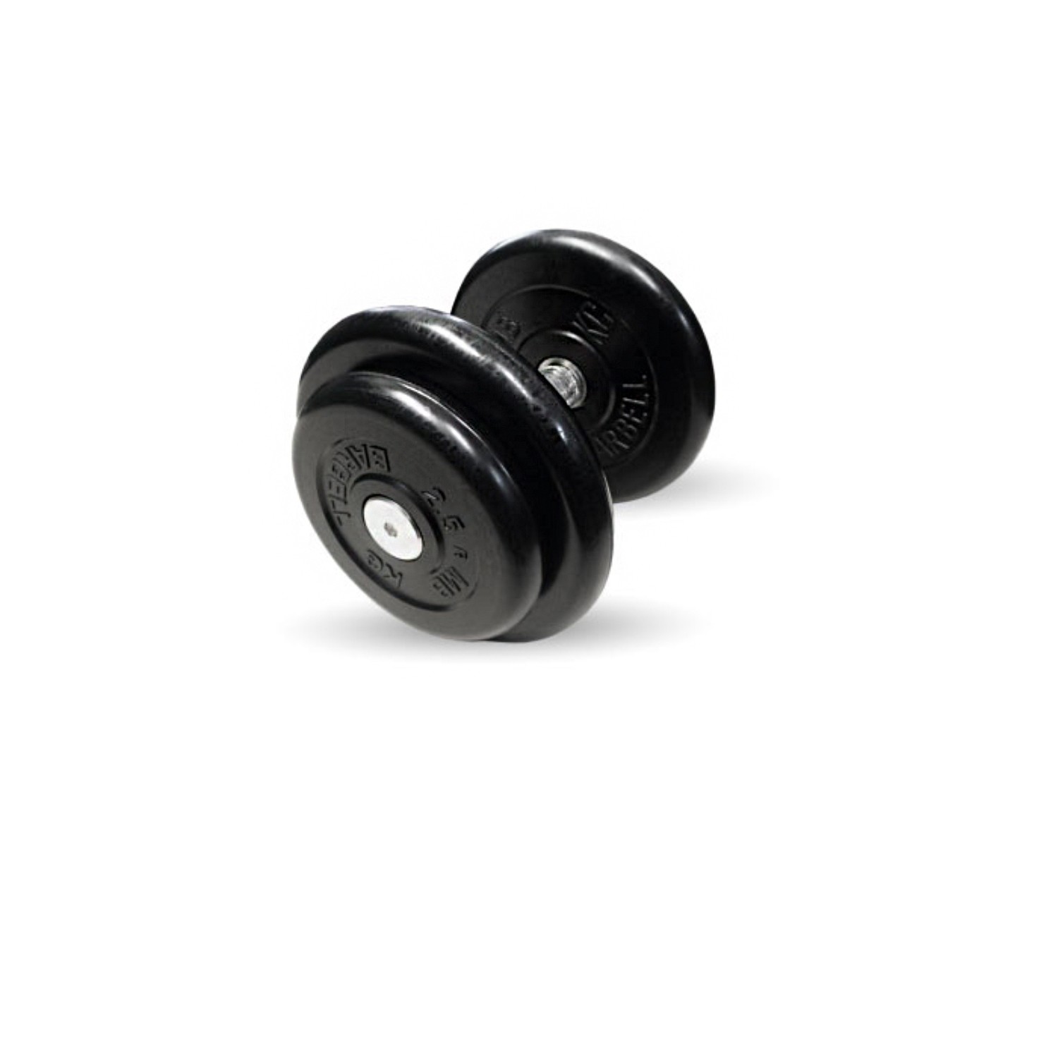 Гантель черная неразборная обрезиненная с вращающейся хромированной ручкой.