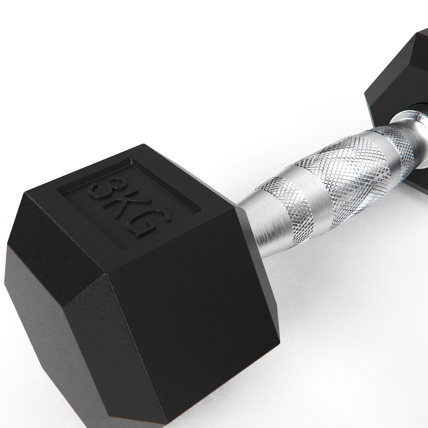 Гантель обрезиненная с хромированной ручкой. Вес гантели 3 кг, в комплекте 2 штуки (пара).