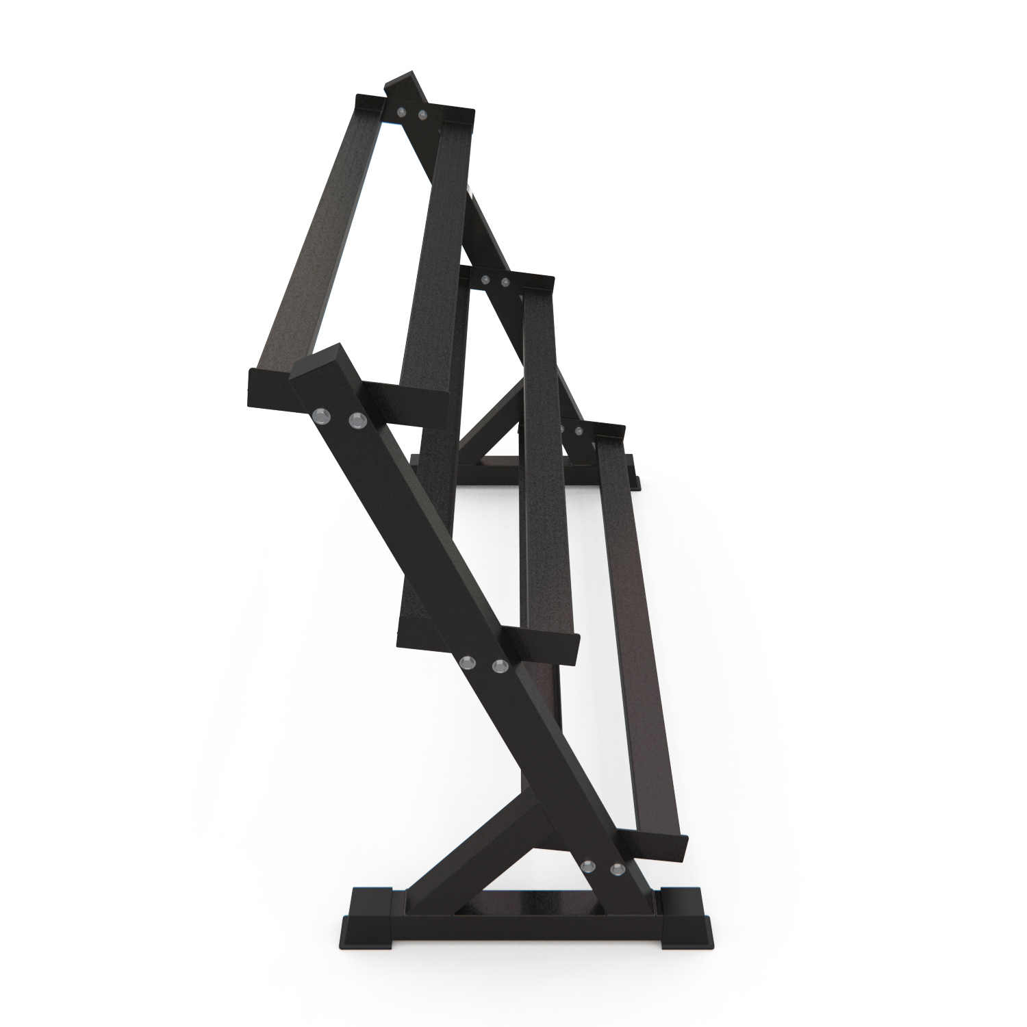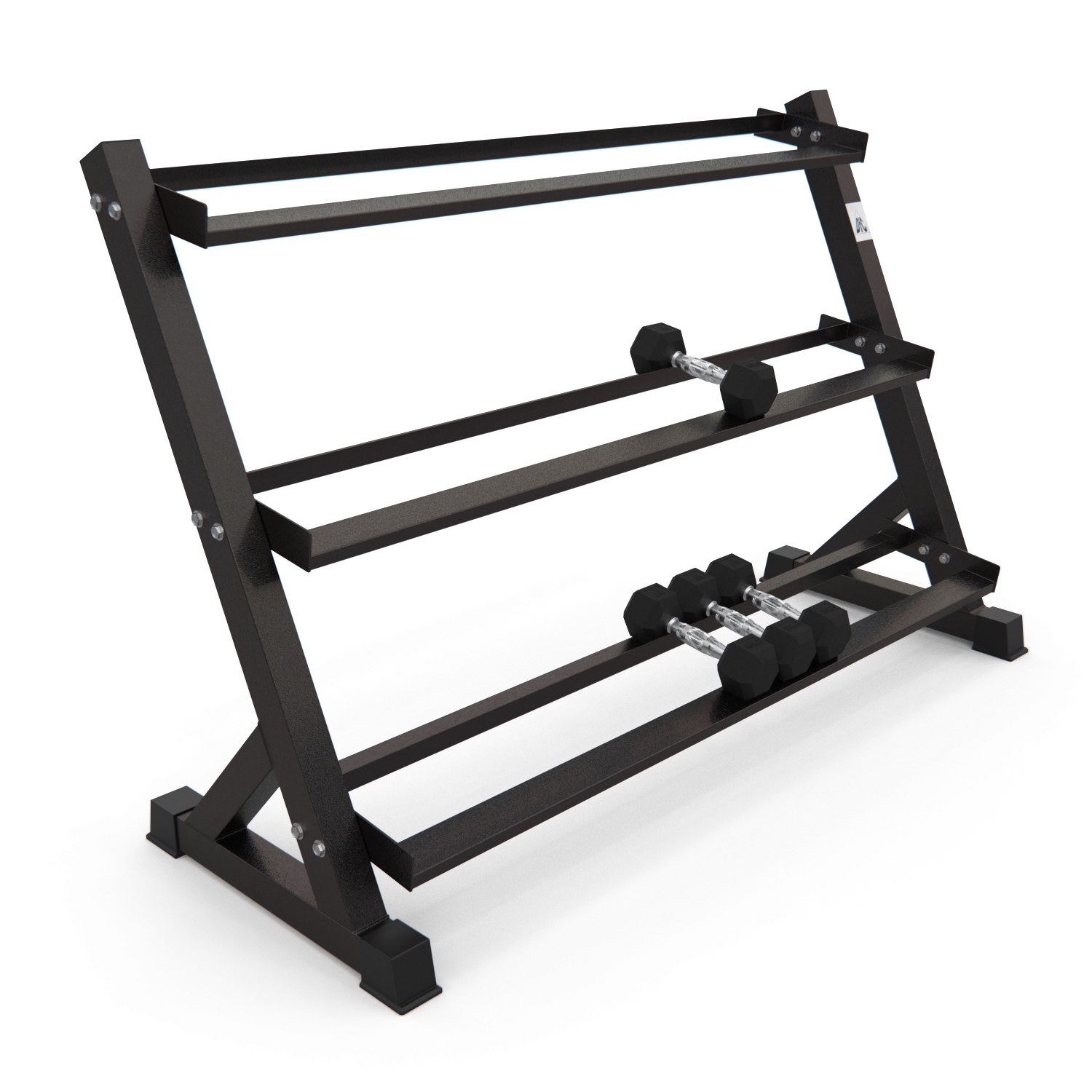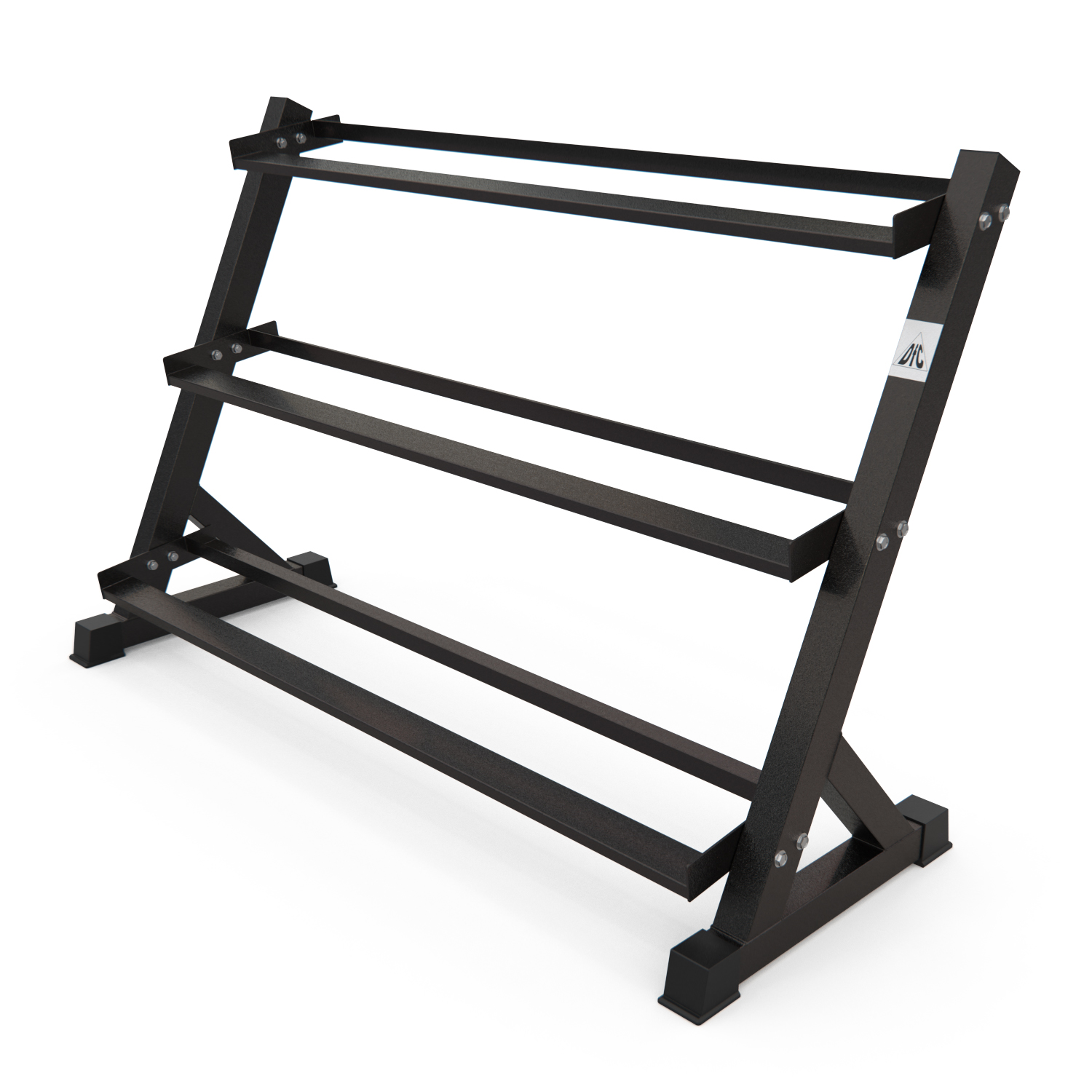 Стойка для хранения гантелей DFC D872. Профиль рамы 50х70х2 мм. Расстояние между стойками составляет 132,5 см, а высота между ними - 99,8 см. Максимальная нагрузка на конструкцию до 250 кг.