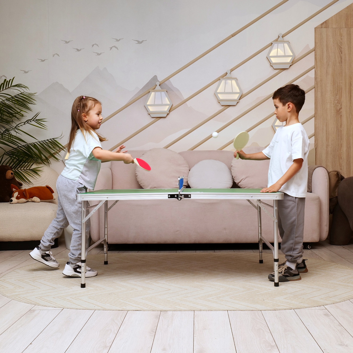 В комплект входят: сетка, 2 ракетки и 2 белых мячика диаметром 40 мм.