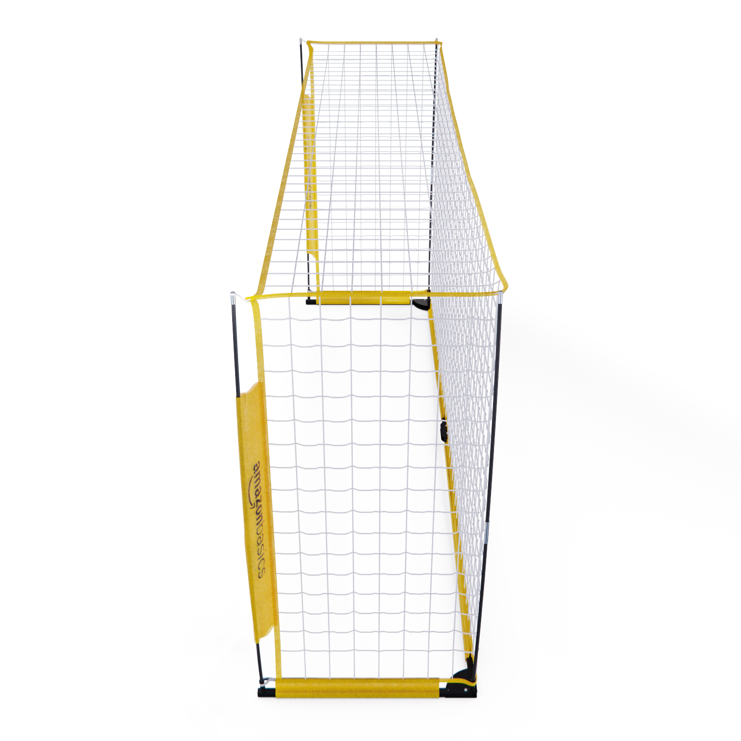Прочная рама и сетка изготовлены из высококачественных материалов, таких как стекловолокно и сталь, обеспечивая надёжность и долговечность конструкции. Традиционная прямоугольная форма отверстий и гибкие стойки гарантируют стабильность и упругость ворот. Двухслойная сетка обладает высокой прочностью, выдерживая сильные удары.