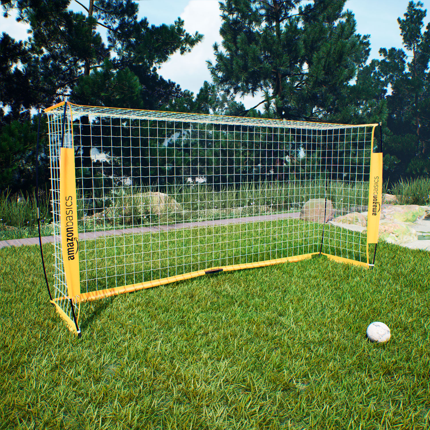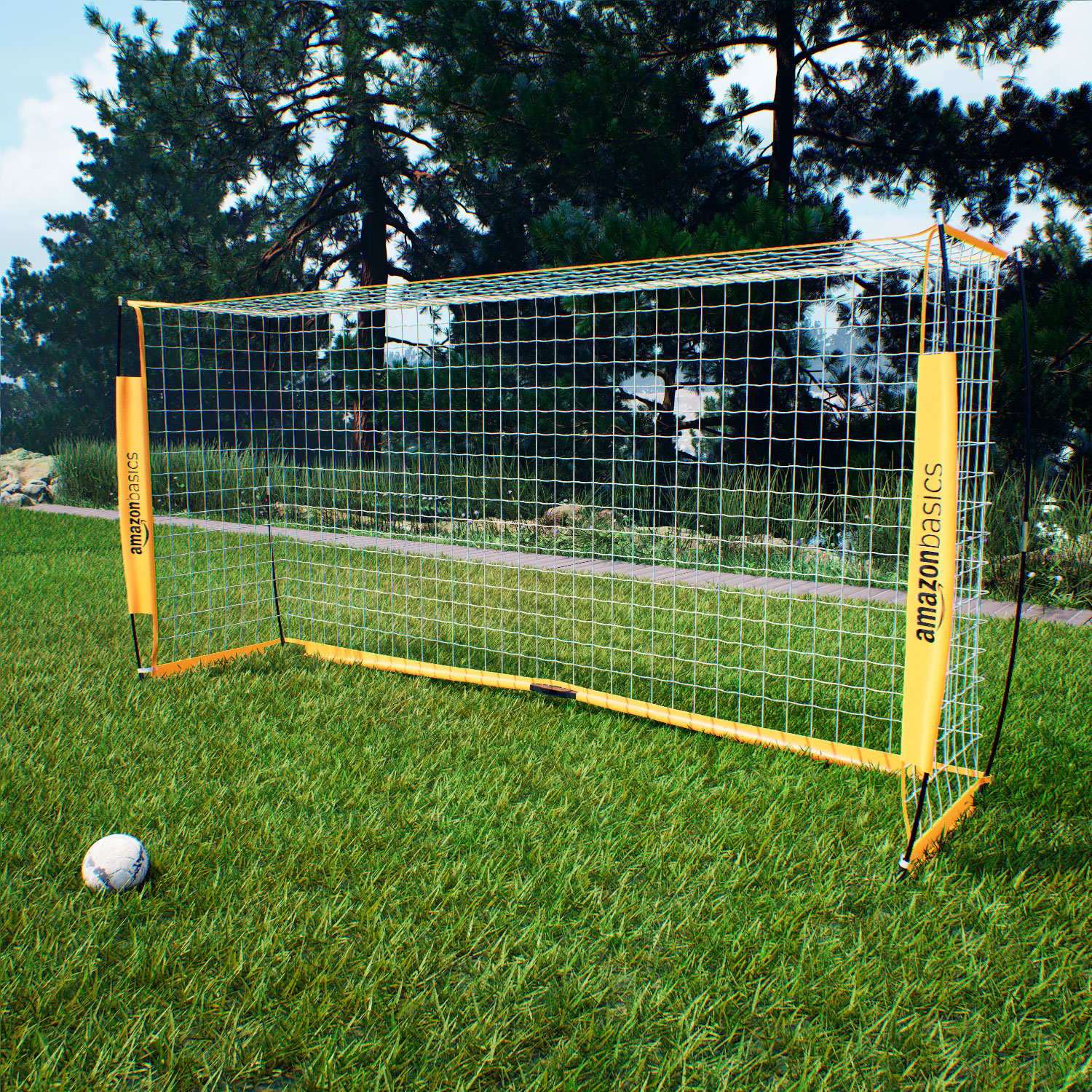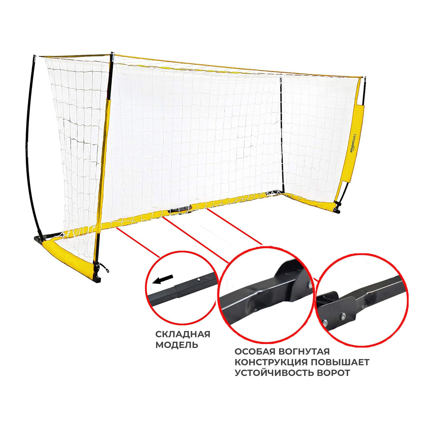 Яркие жёлтые футбольные ворота AmazonBasics L легко установить, они идеально подходят для тренировок на заднем дворе, командных занятий и соревнований на игровых полях. Эти ворота удобны для игроков любого возраста и уровня подготовки, позволяя наслаждаться тренировками и дружескими матчами. Особая вогнутая конструкция направляющих элементов повышает устойчивость ворот.