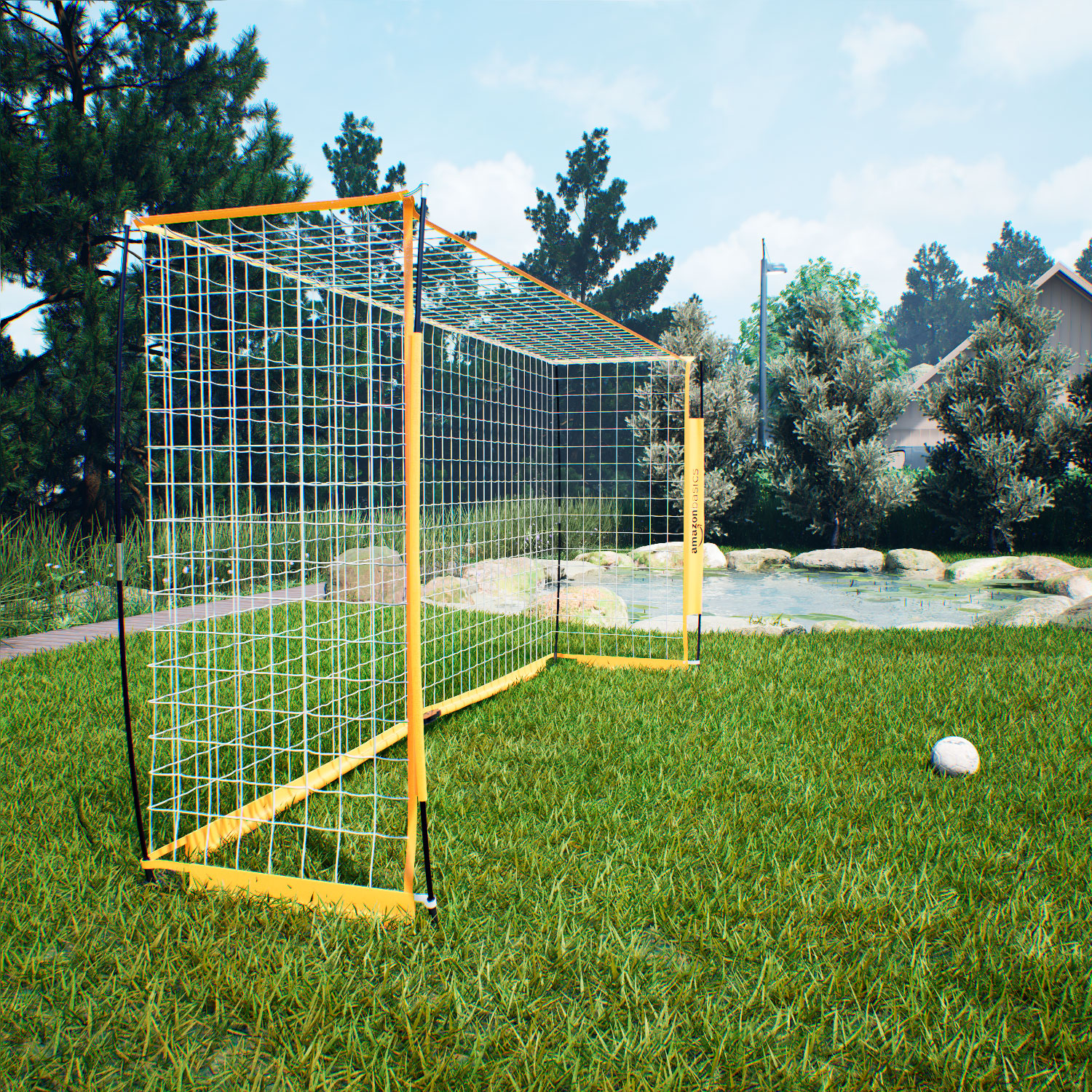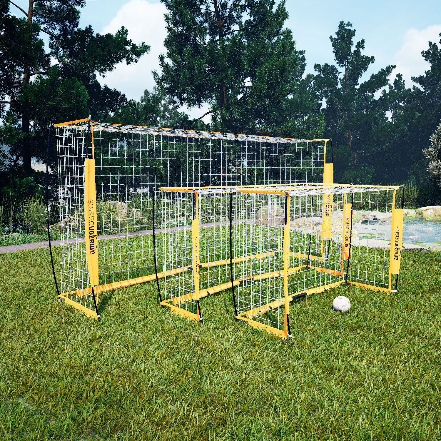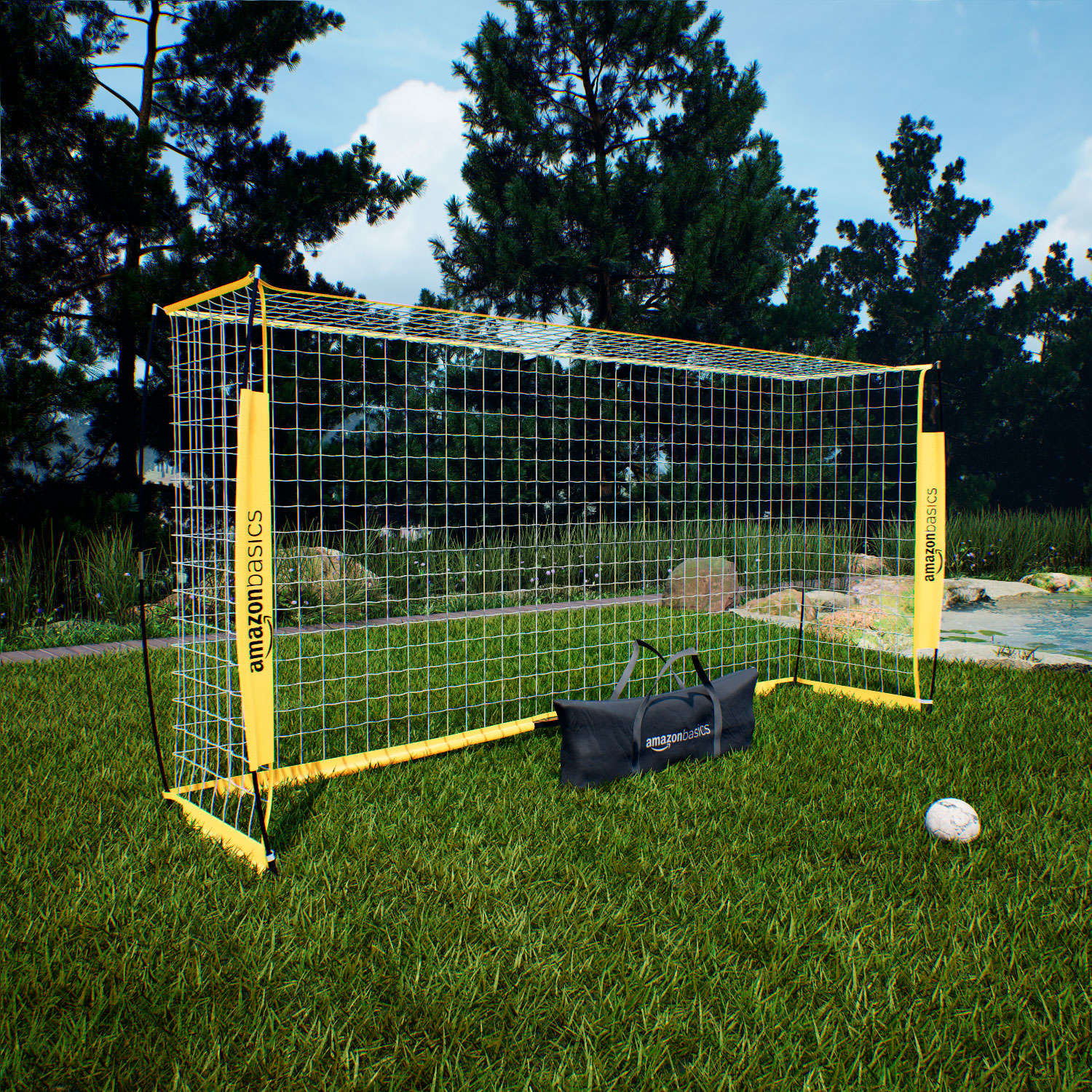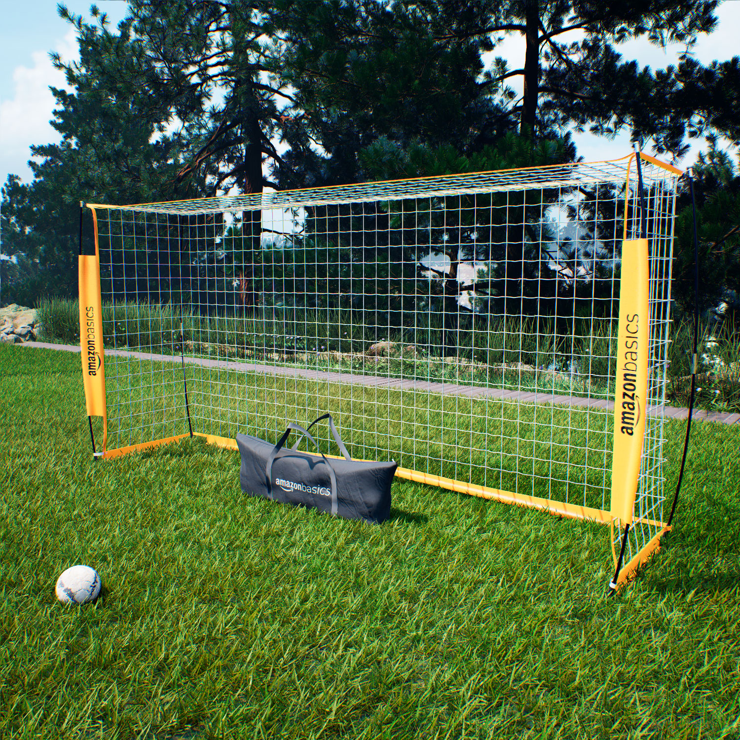 Яркие жёлтые футбольные ворота AmazonBasics L легко установить, они идеально подходят для тренировок на заднем дворе, командных занятий и соревнований на игровых полях. Эти ворота удобны для игроков любого возраста и уровня подготовки, позволяя наслаждаться тренировками и дружескими матчами. Особая вогнутая конструкция направляющих элементов повышает устойчивость ворот.