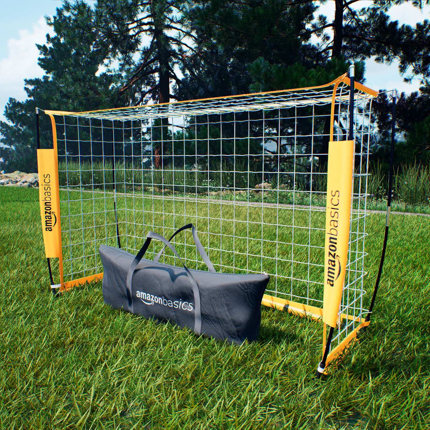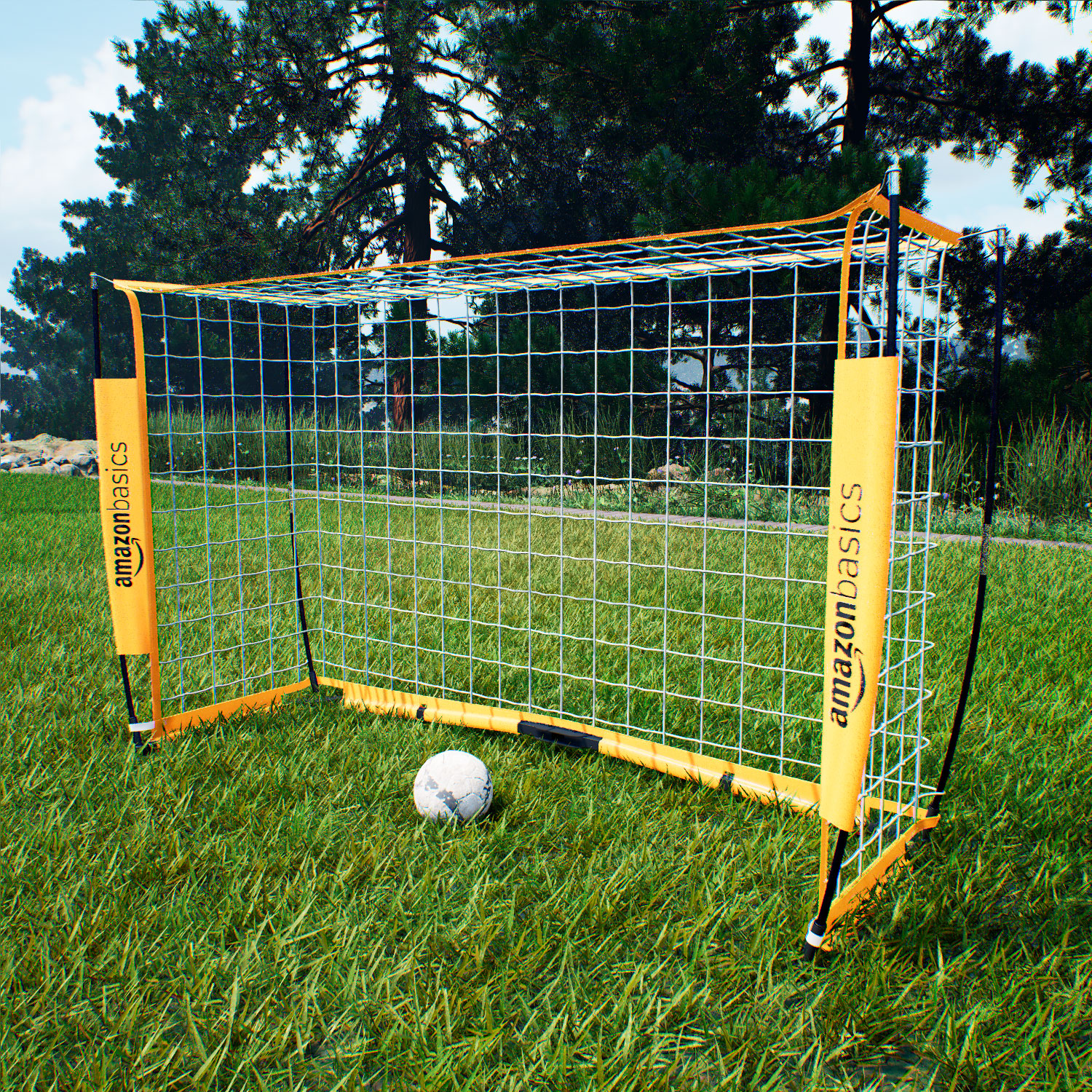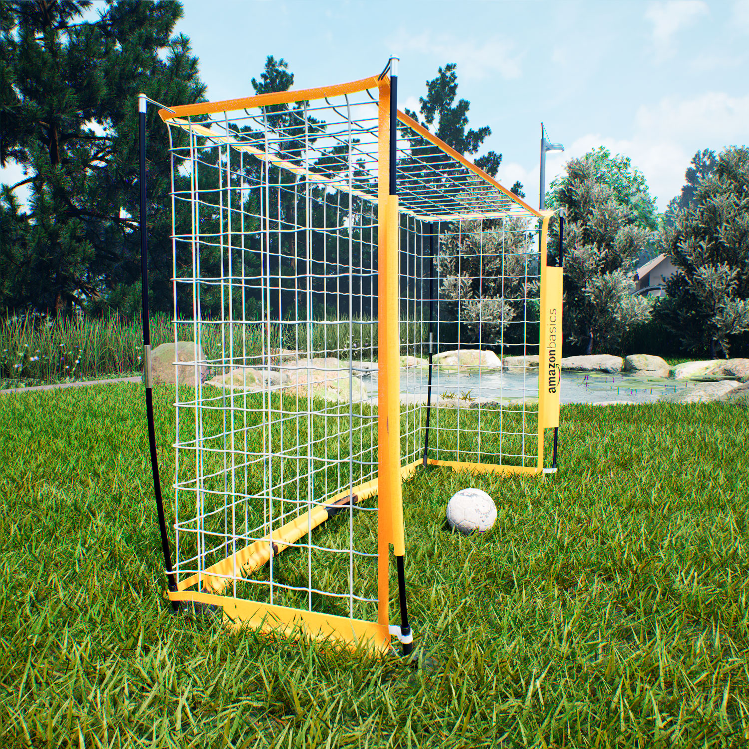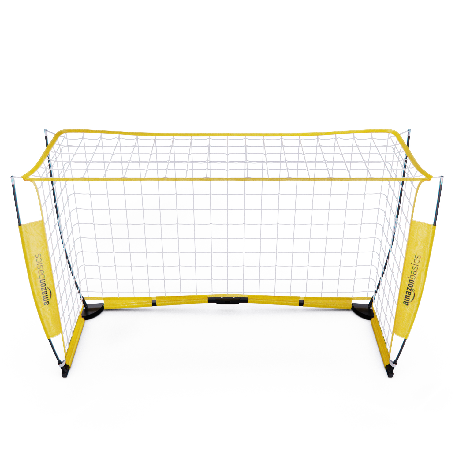 Яркие жёлтые футбольные ворота AmazonBasics S легко установить, они идеально подходят для тренировок на заднем дворе, командных занятий и соревнований на игровых полях. Эти ворота удобны для игроков любого возраста и уровня подготовки, позволяя наслаждаться тренировками и дружескими матчами. Особая вогнутая конструкция направляющих элементов повышает устойчивость ворот.