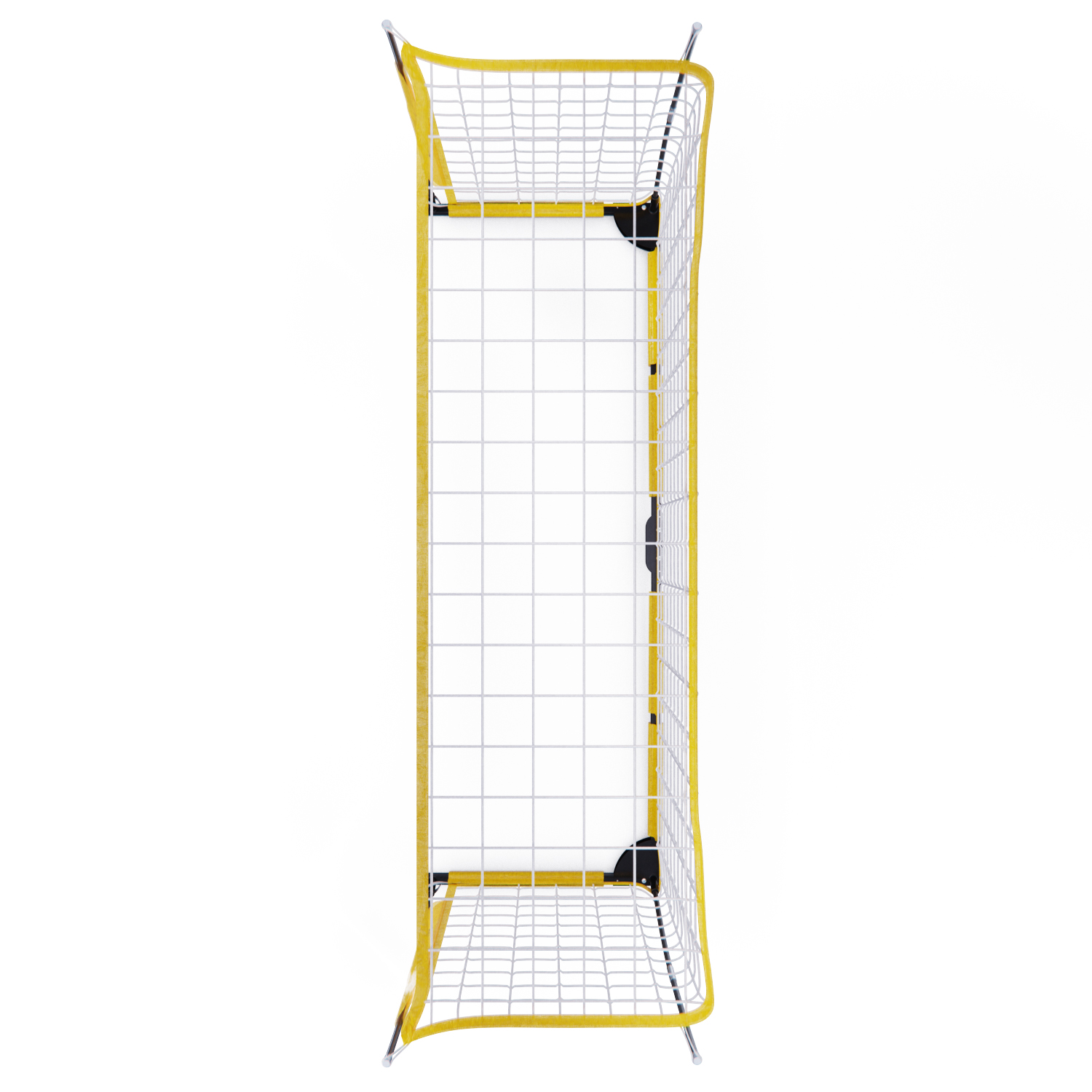 Прочная рама и сетка изготовлены из высококачественных материалов, таких как стекловолокно и сталь, обеспечивая надёжность и долговечность конструкции. Традиционная прямоугольная форма отверстий и гибкие стойки гарантируют стабильность и упругость ворот. Двухслойная сетка обладает высокой прочностью, выдерживая сильные удары.